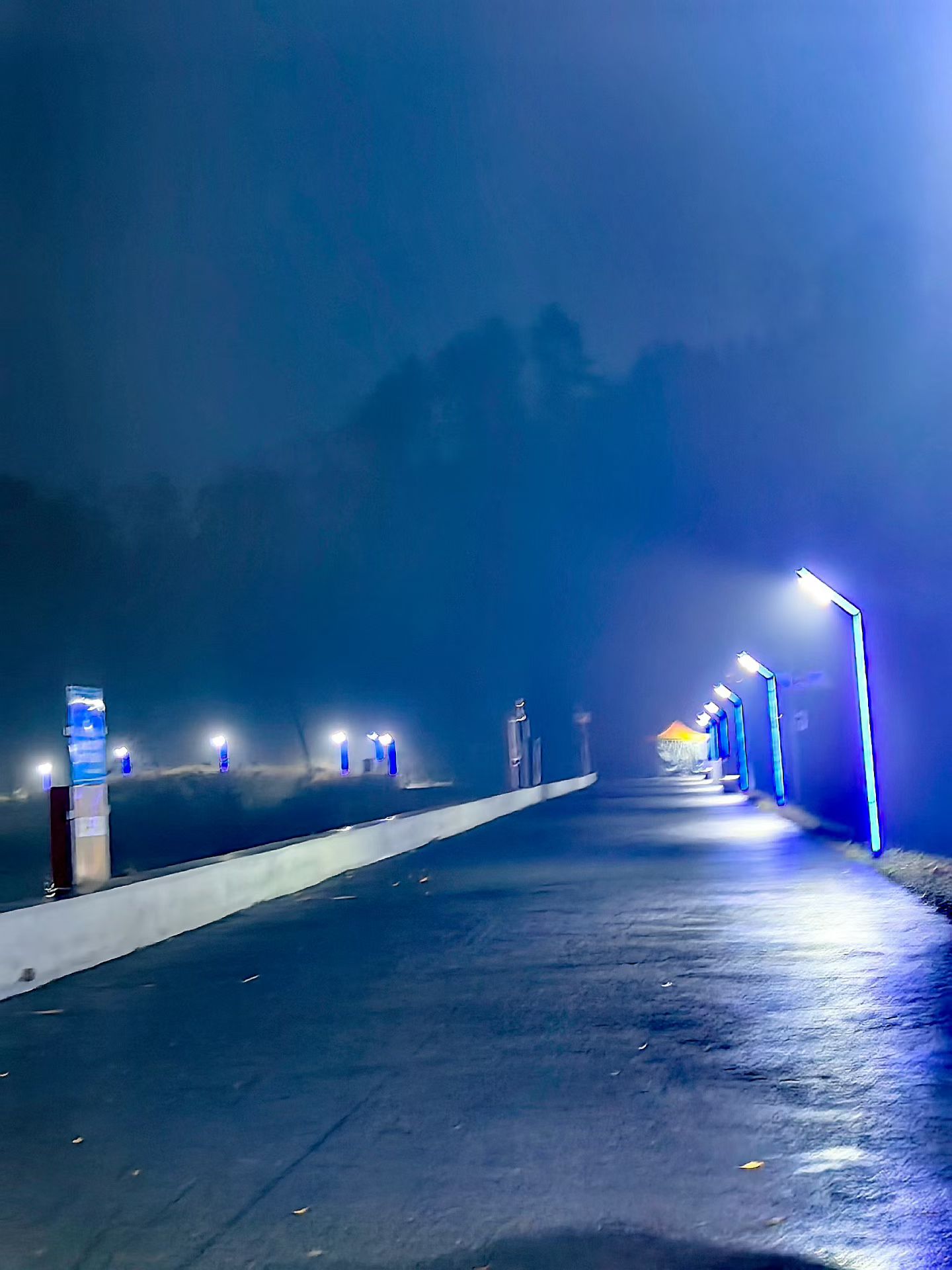 天未亮,雾未散,雨丝轻落,路灯照亮一段无人知晓的温柔。