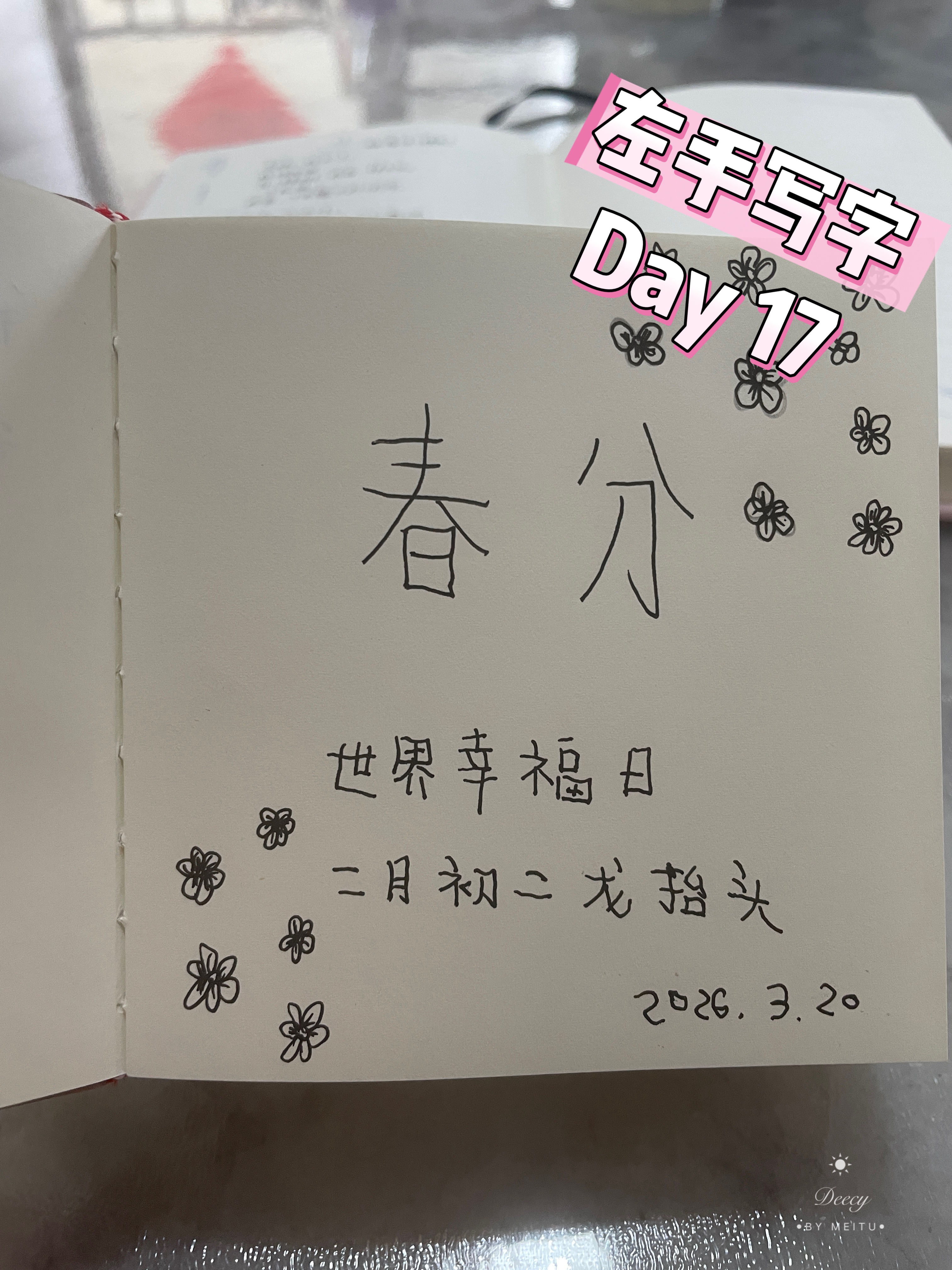 ✍️左手写字第17天,春分遇上龙抬头。