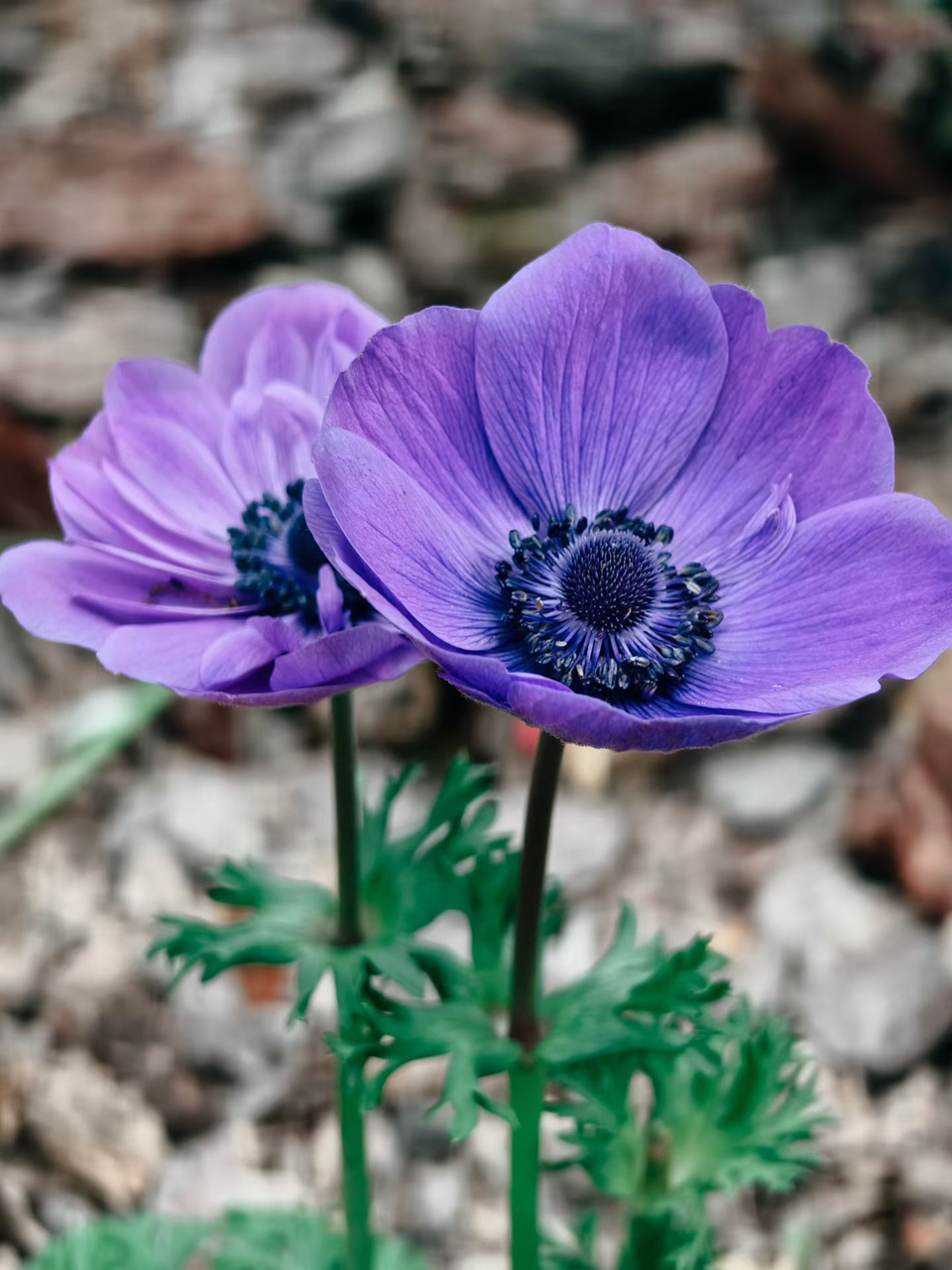 紫瓣叠叠,深蓝花蕊静绽;绿茎托起春之灵,在石径旁低语。