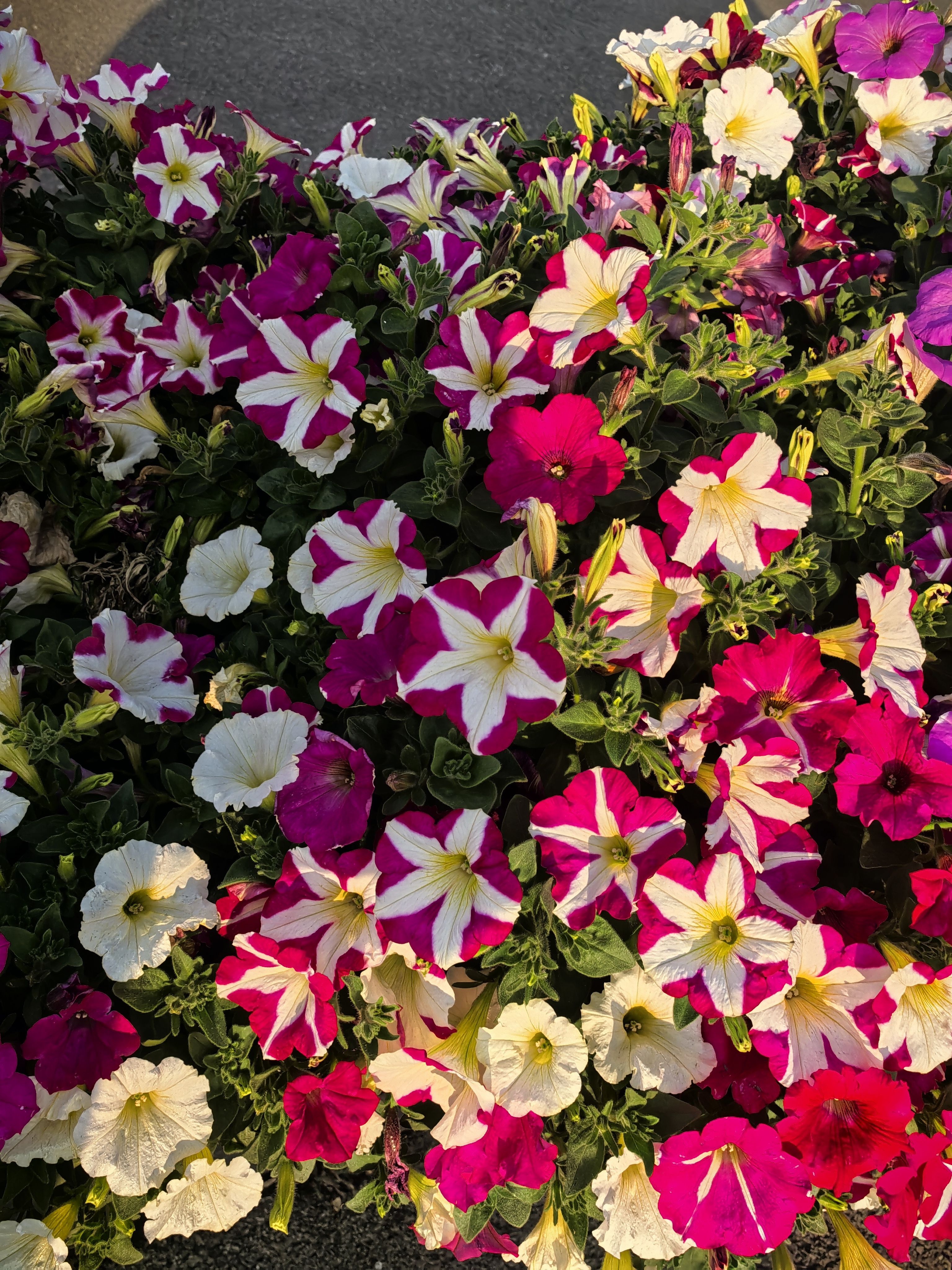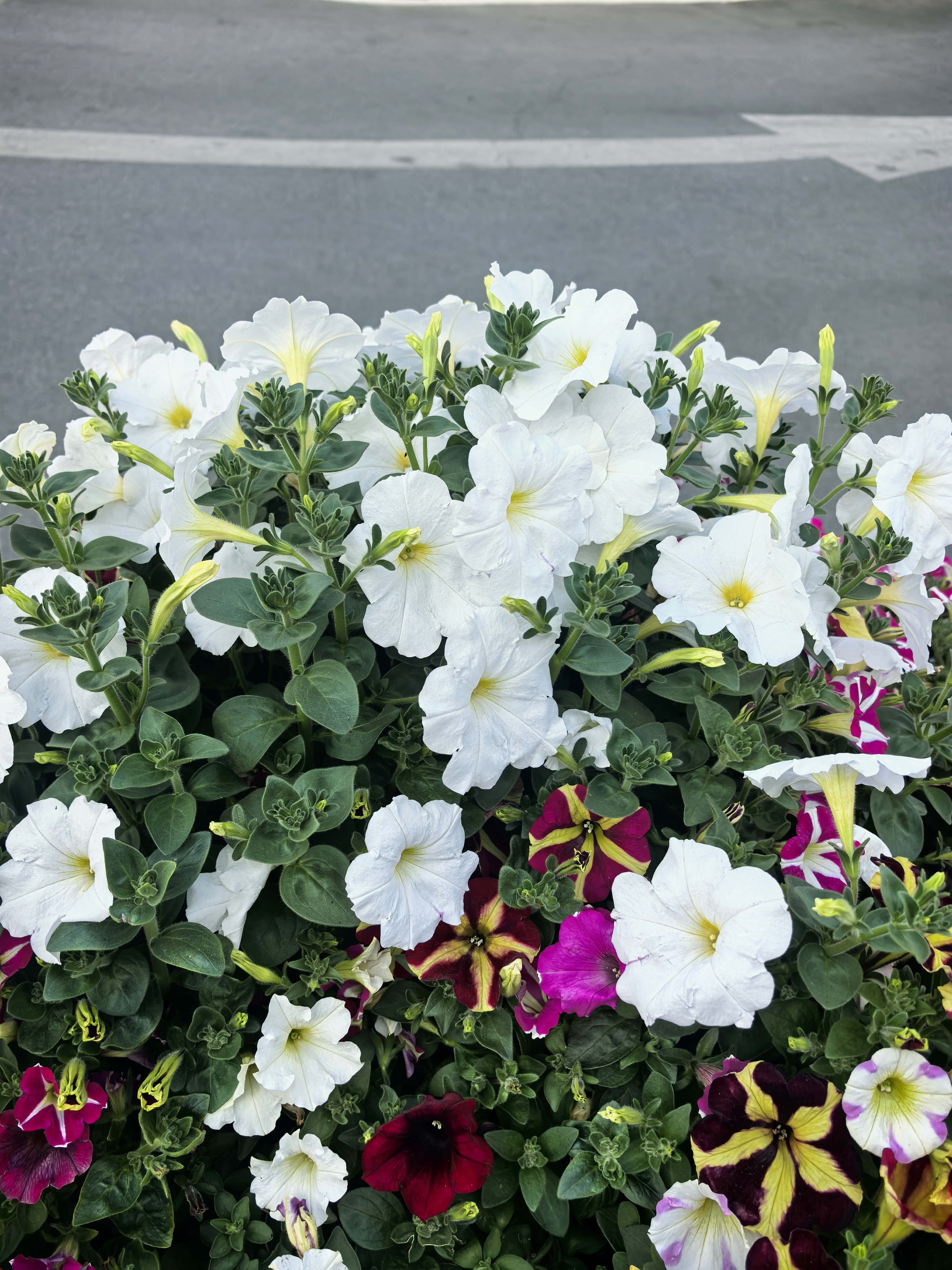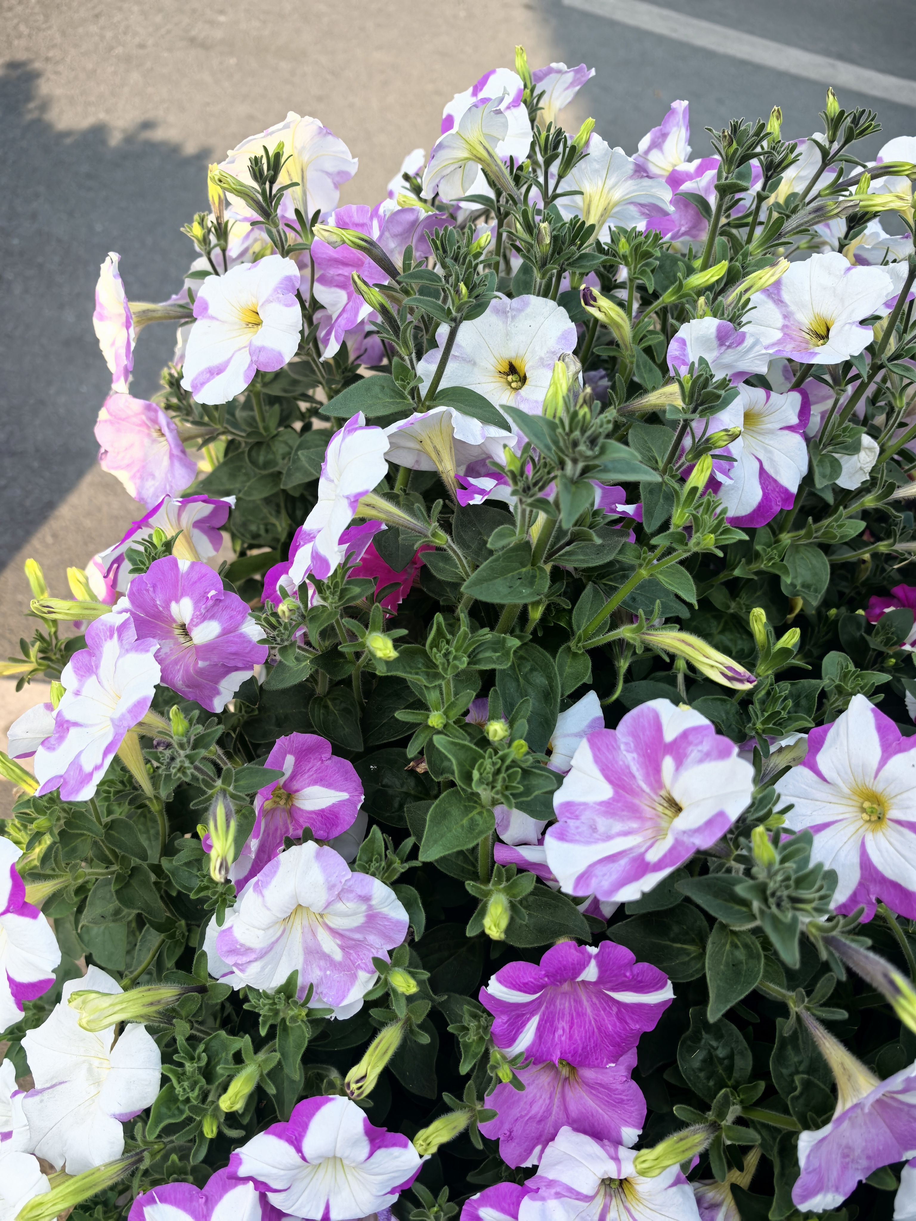 矮牵牛开成调色盘啦~紫粉白撞色花坛,随手一拍就是春日限定壁纸!