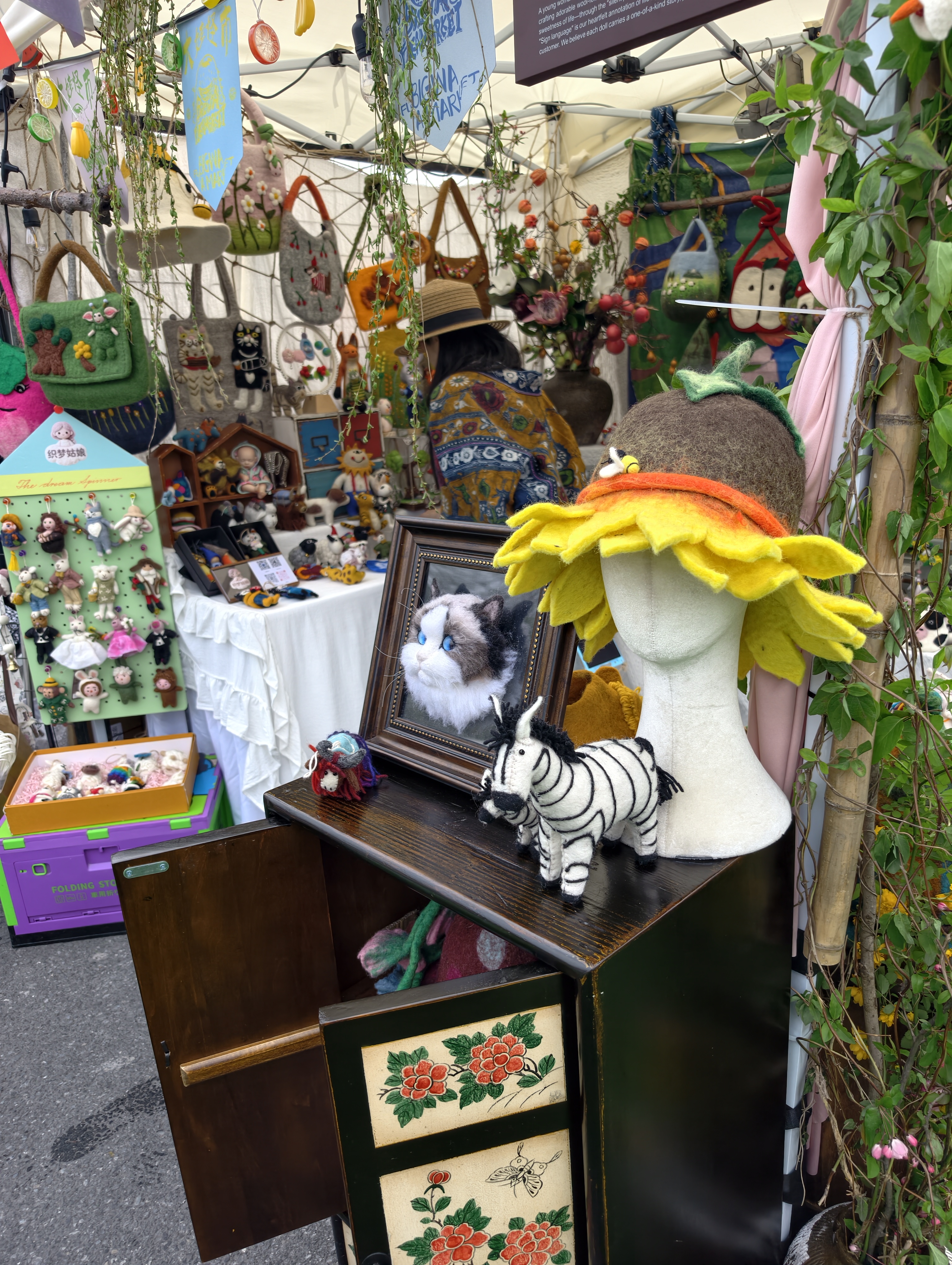 今天去了西溪印象城赶个“大娃怪市”集。没想到那么多人,队伍排得蜿蜒好几圈,用了近半个小时才验票入园。这票不便宜,网上的价格29.9一张呢。排队者大多年轻时尚,这集市能吸引这么多年轻人来,到底是有啥呢。果然新奇玩意不少。做工精美,有创意的工艺品尤其多,不仅有时尚的年轻人在摊前拍照,还吸引了不少国际友人呢。其实品类也蛮多的,有大胆创意的服装,还有标本,甚至旧图书。是个有趣的二手闲置市场吧。虽然我啥也没买,这样的闲逛也挺有趣的。感谢潮新闻的门票。
