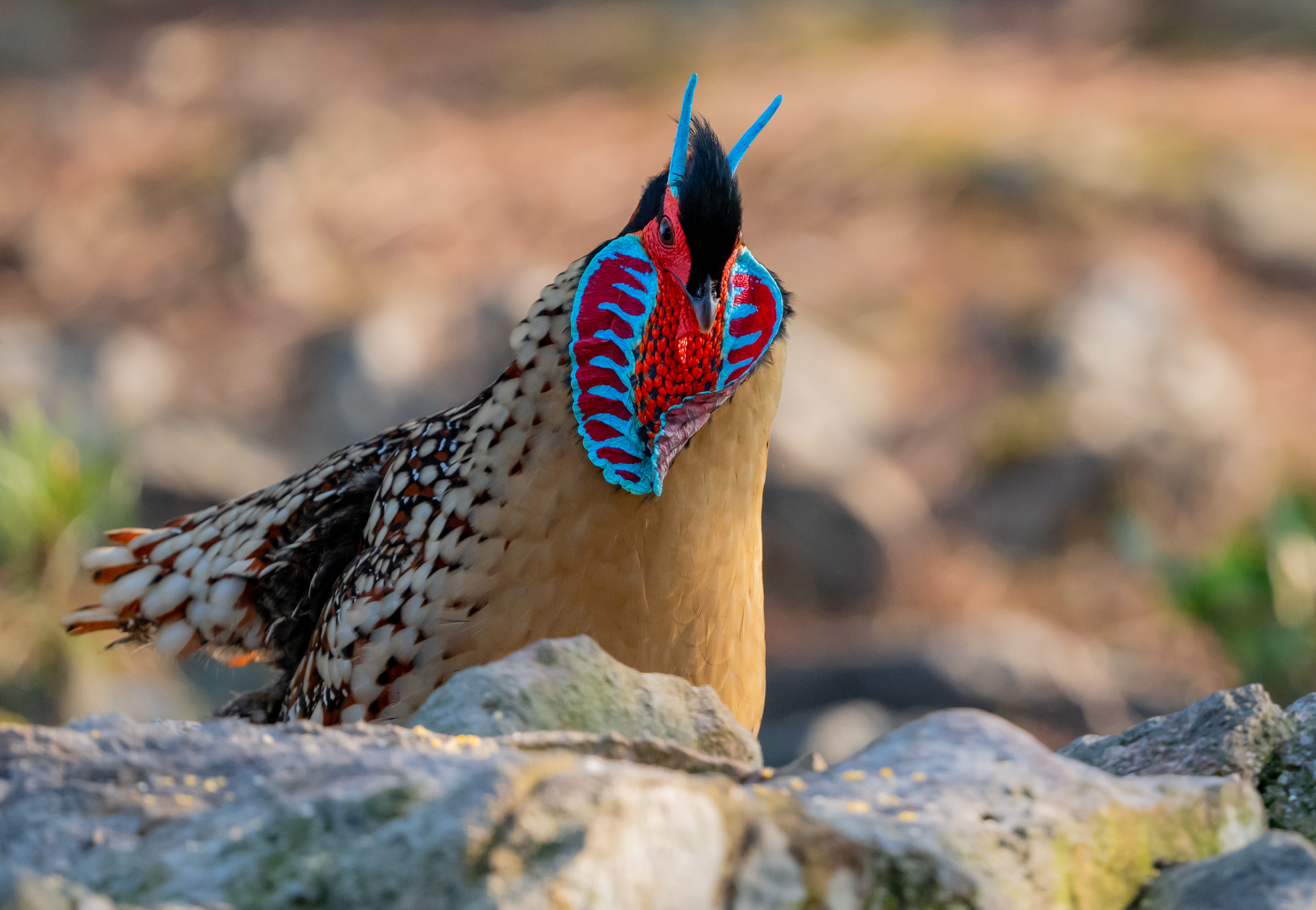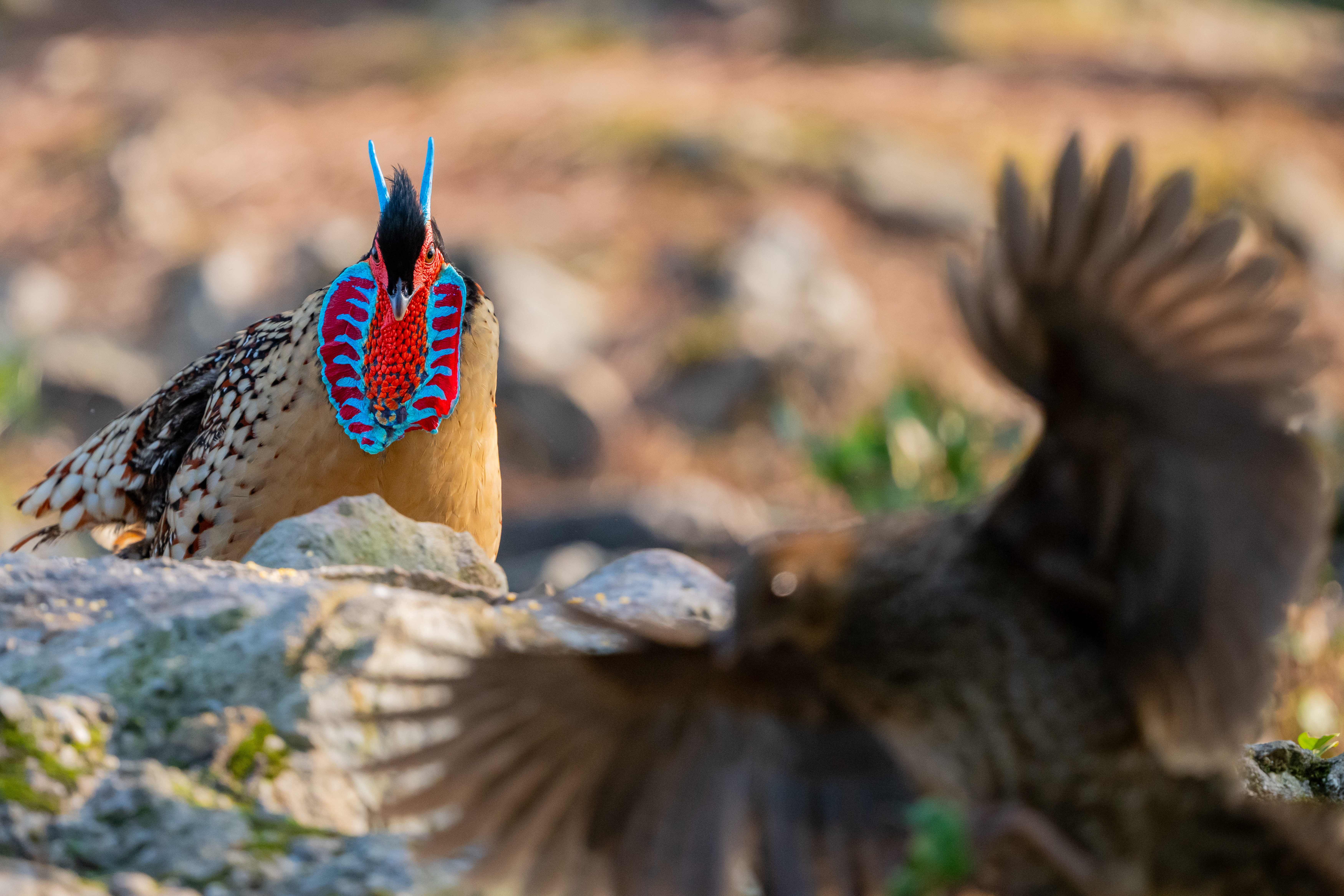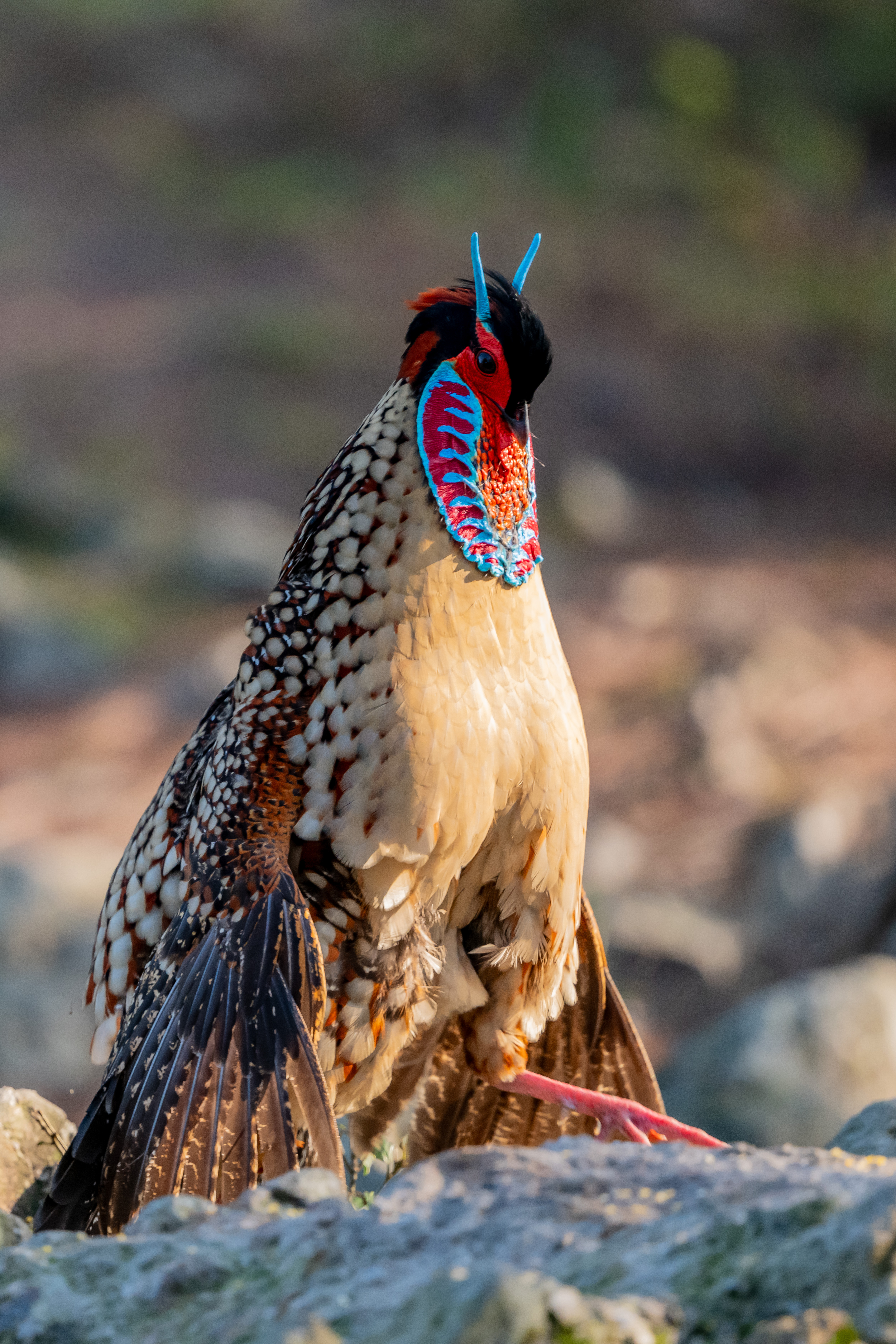春季黄腹角雉发情就会吊带像脸谱。