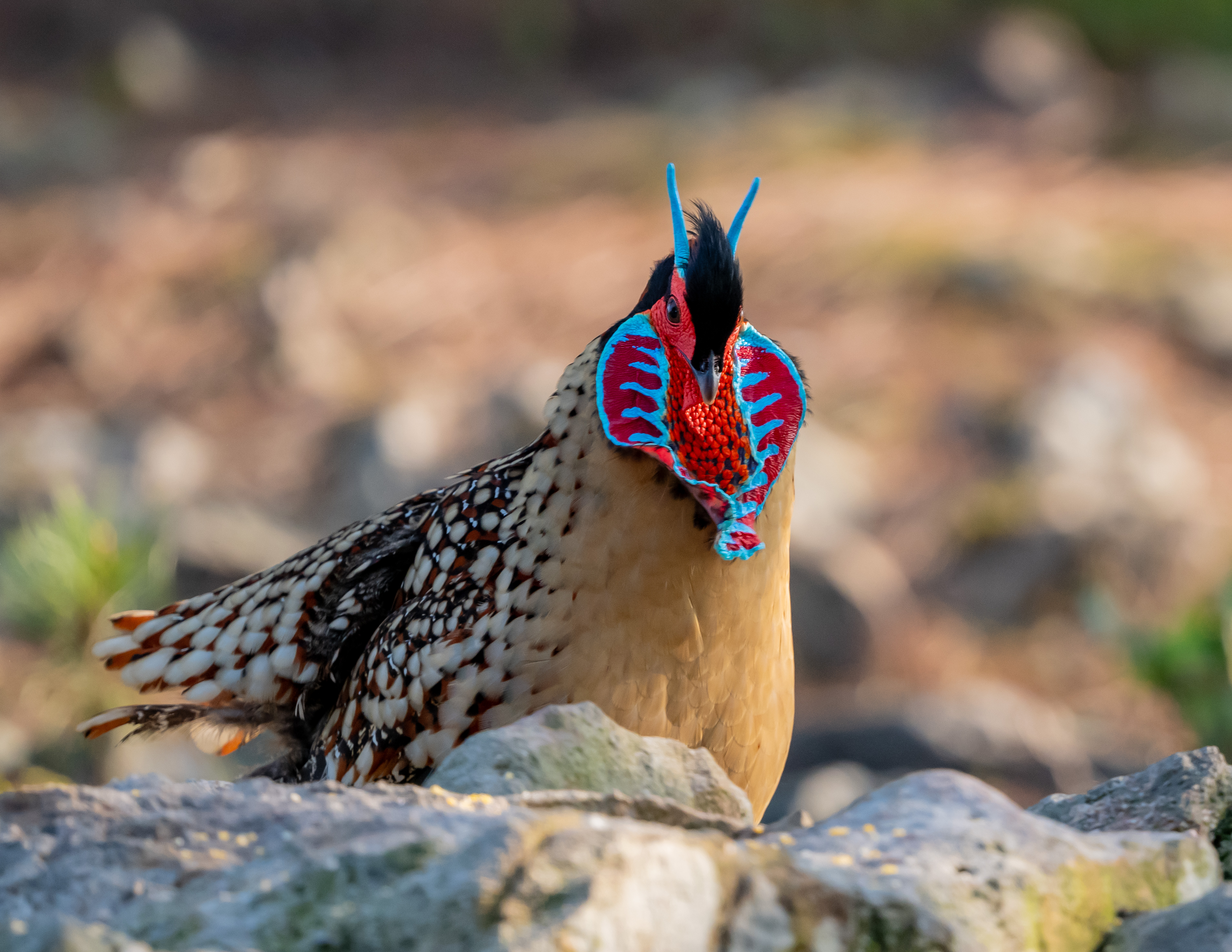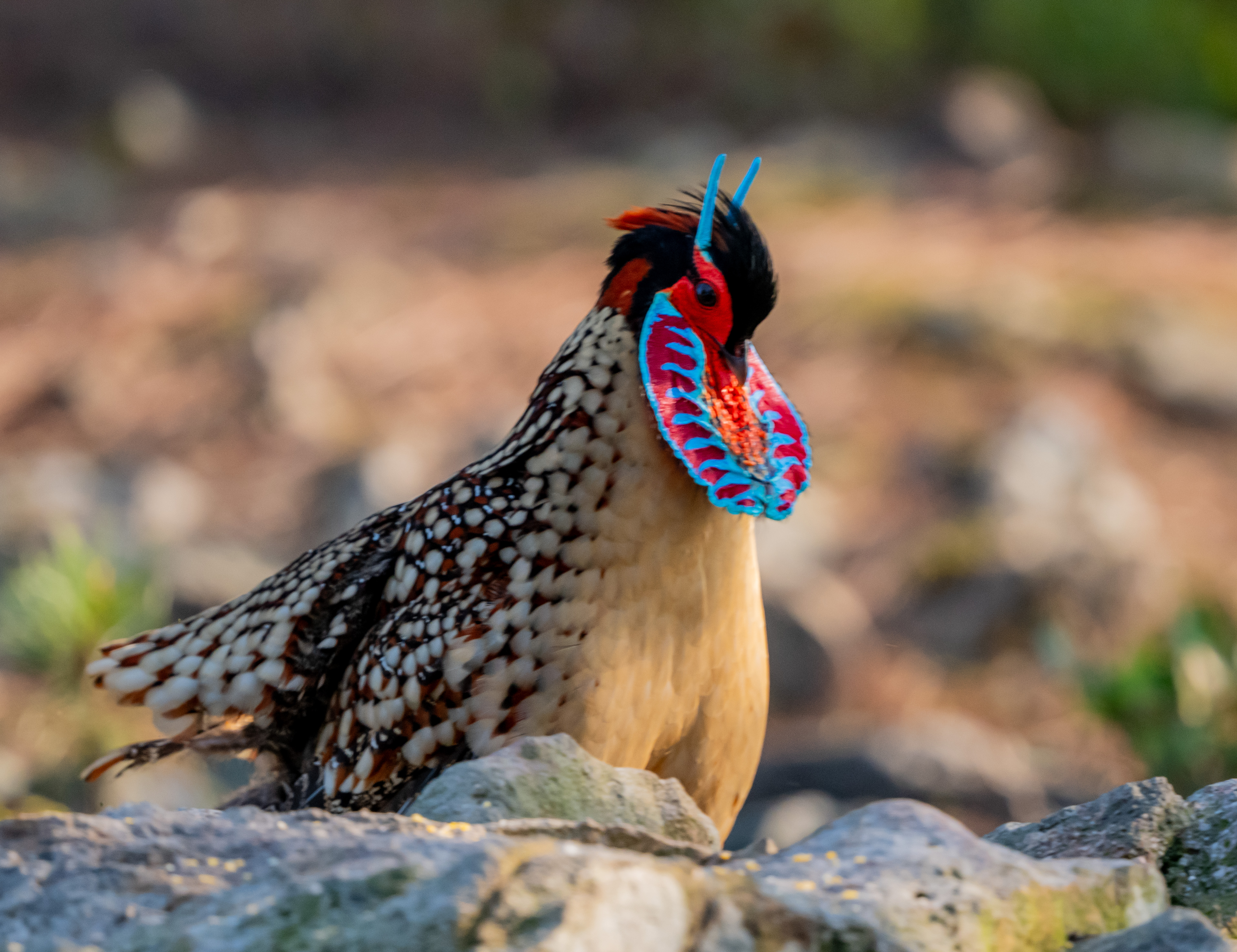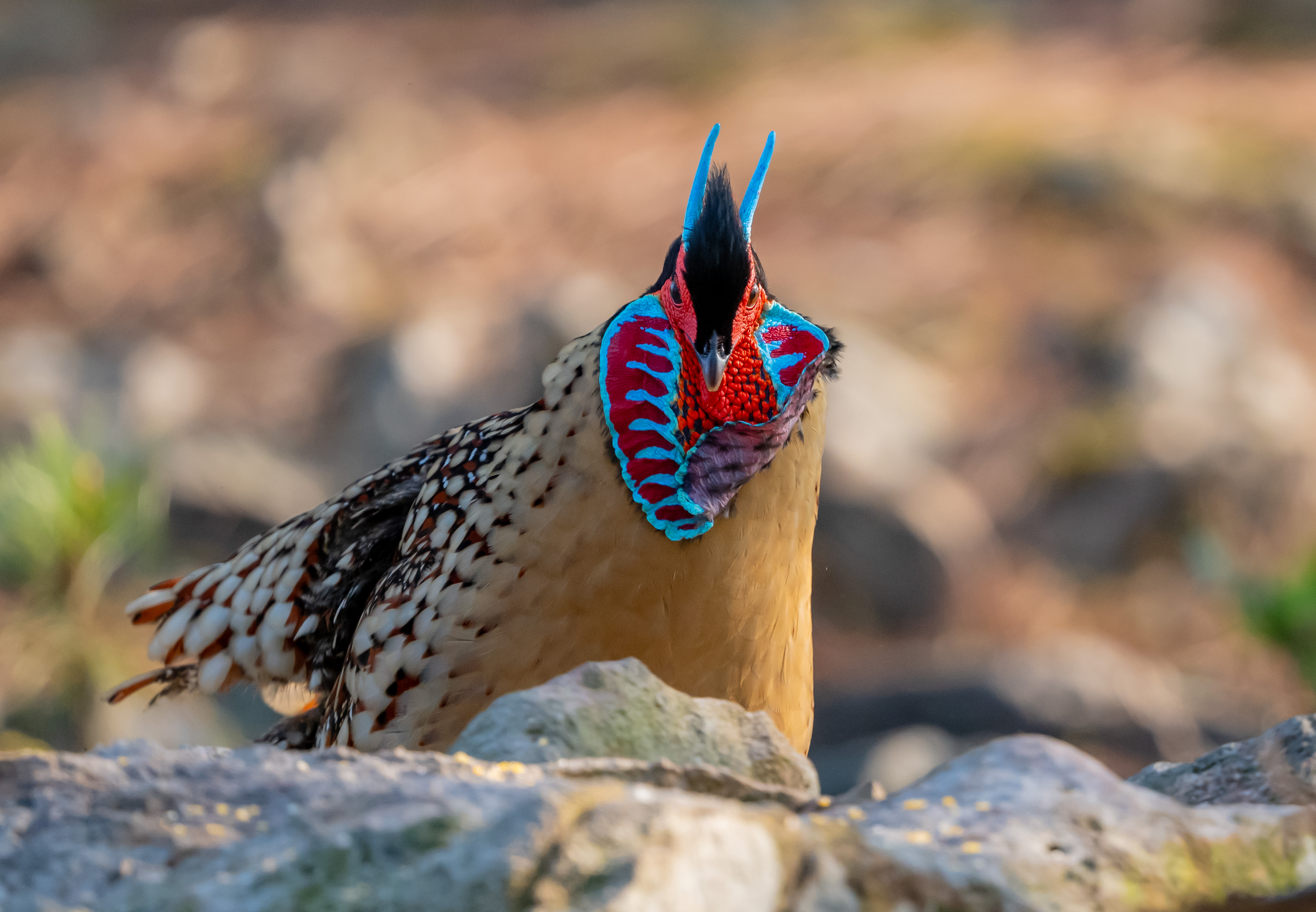 春季黄腹角雉发情就会吊带像脸谱。