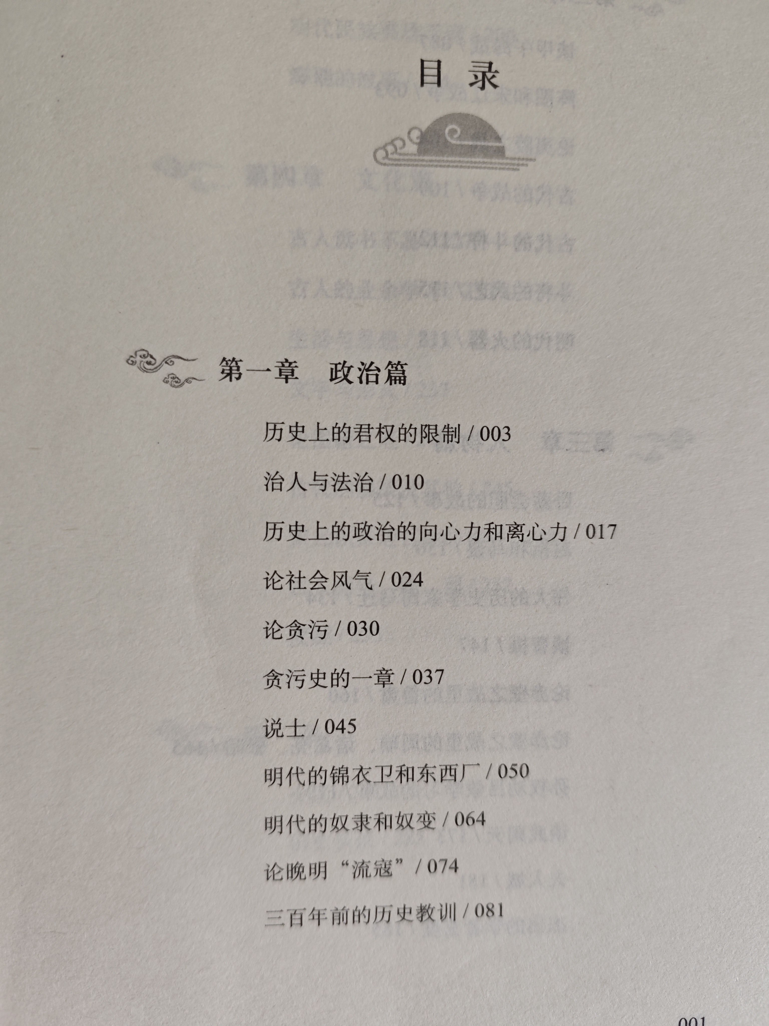 今日读吴晗先生的《历史的镜子》--三百年前,从当局到人民,从将军到文士,都只顾自己的享受、儿女的幸福,看不见国家民族的前途。个人的腐化,社会的腐化。宣告了那个时代的毁灭。