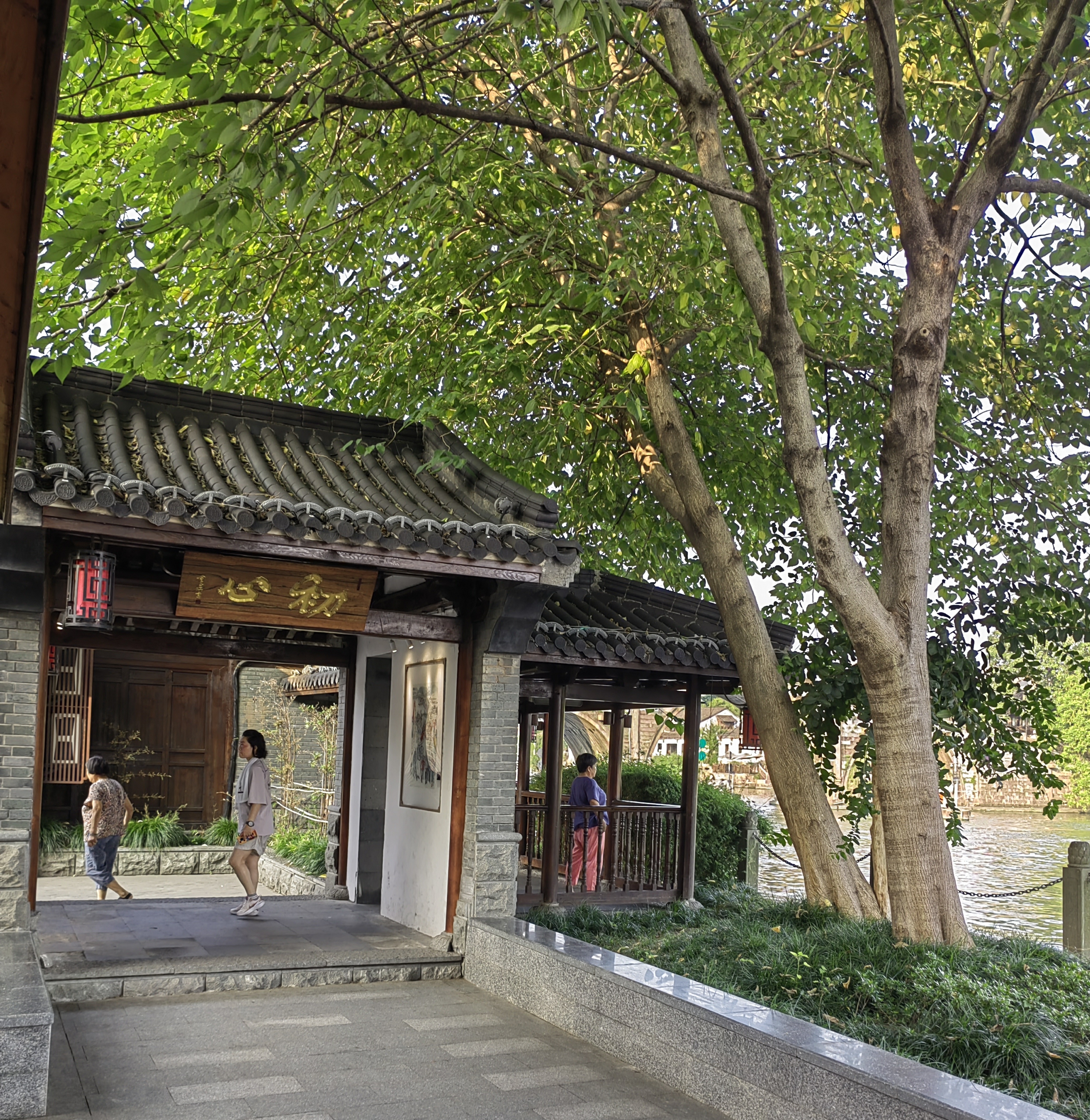 青瓦木门石墙边,绿树水廊灯笼悬~初心亭里偷得半日闲,快门一按全是江南味儿!