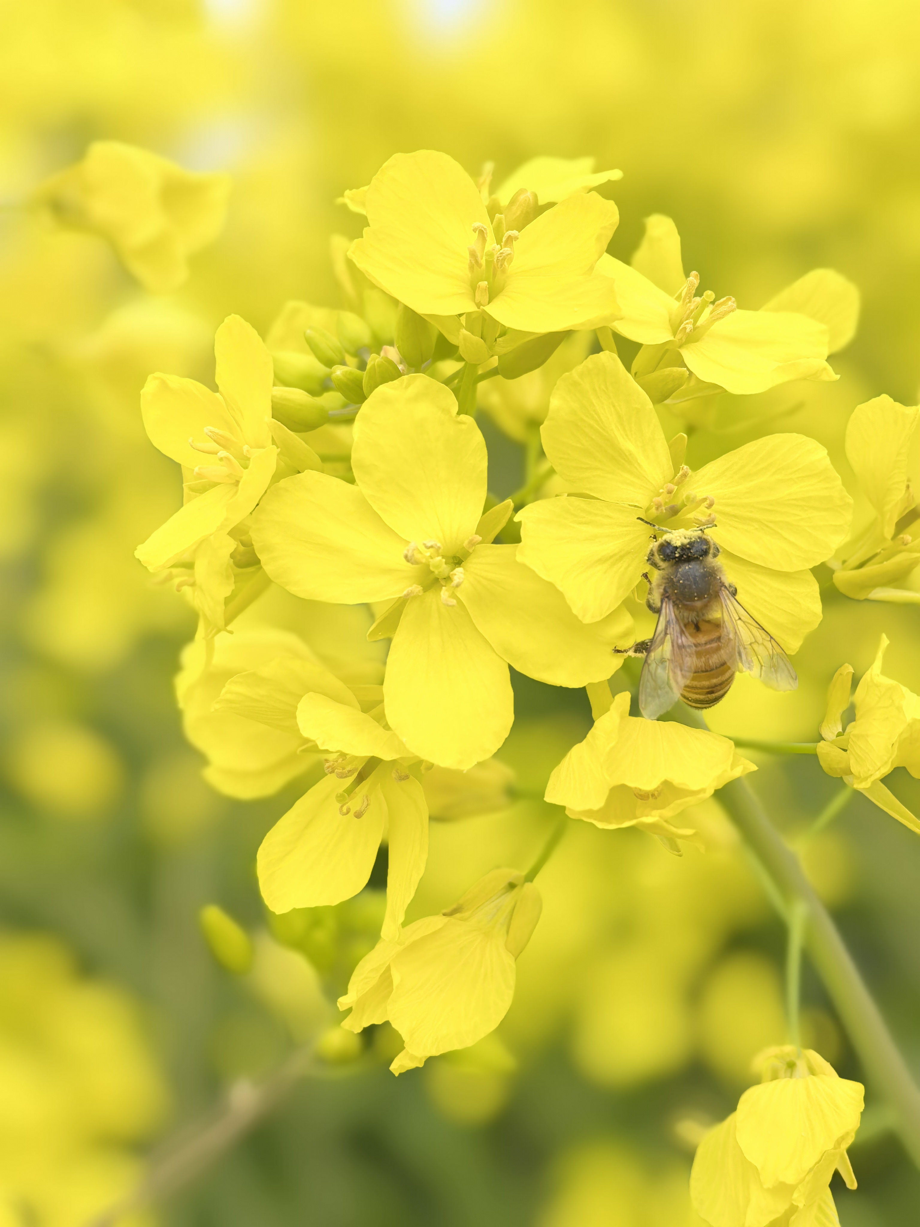 春日田野,油菜花黄,蜜蜂忙授粉,咔嚓一拍,全是生机!