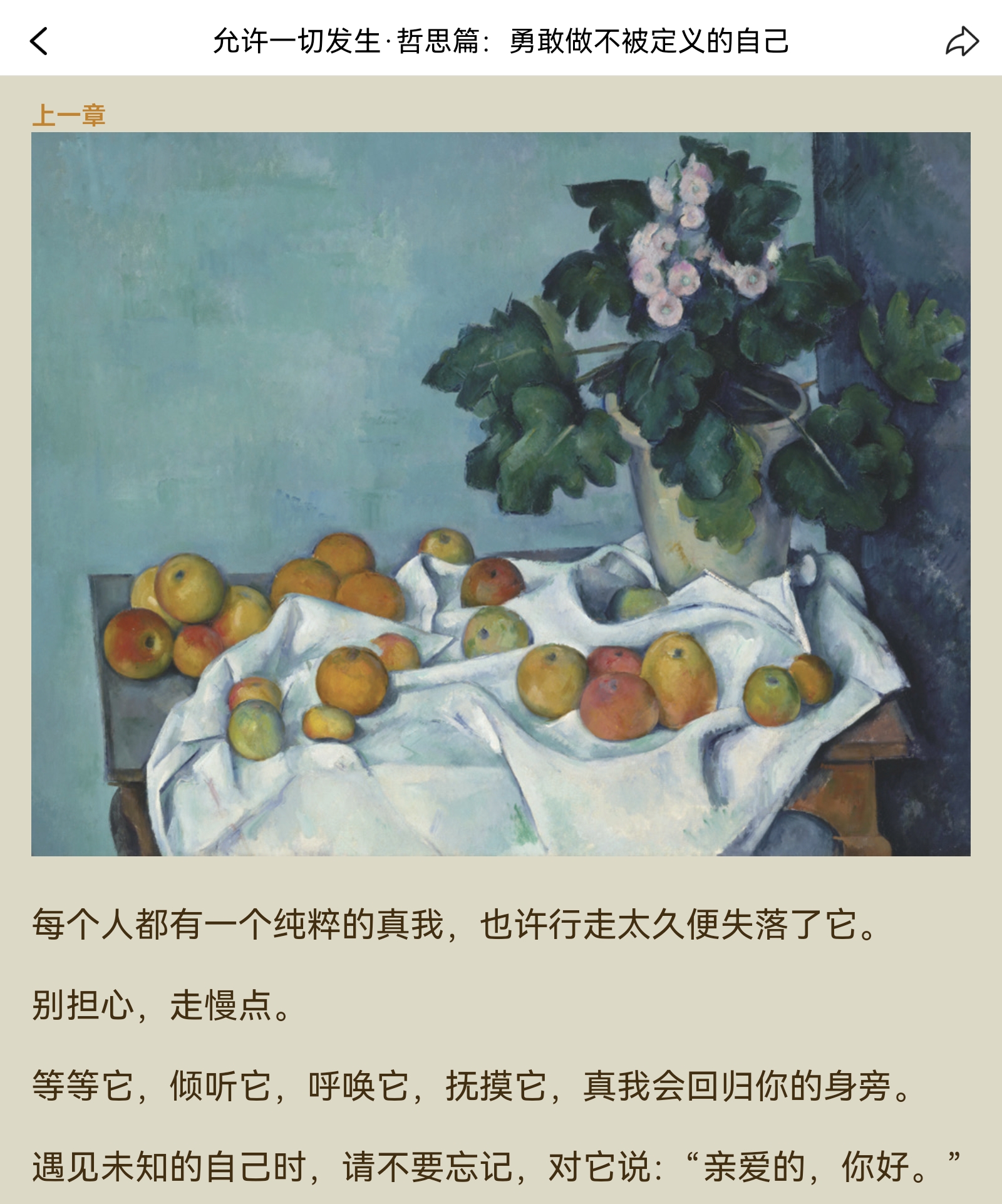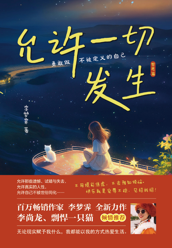 《允许一切发生》是一本充满着生活哲思的散文集,作者用细腻而有温度的文字,真诚地与我们分享了她从懵懂女孩,成为成熟女性的过程。有多元而精彩的世界,有在思辨中收获的成长,也有曾经的执念与后来的放下,有迷茫,也有方向,有幻灭,更有希望。书里的每个故事都是一把钥匙,让你看到自己的影子并打开心结,学会在好的、坏的体验中丰盈自己,敢于不被世俗同化、保有独立的思考力。认真地对待自己的精神世界,方能为生命创造更多积极的意义。 ✰允许一切发生,这正是人生的妙处所在,相信时间缓缓,自会给我们最好的答案。 不用提前焦虑,不去预知烦恼,快乐就是宠辱不惊,见招拆招。 ✰接纳,是生活的智慧,也是一种可以习得的能力。 ✰每个人都有一个纯粹的真我,也许行走太久便失落了它。别担心,走慢点。 等等它,倾听它,呼唤它,抚摸它,真我会回归你的身旁。遇见未知的自己时,请不要忘记,对它说:"亲爱的,你好。" ✰身体是一重门,跟你的身体对话,才能实现与真我的联结;情绪是一重门,臣服于自己的心情,认同、接纳,然后释放;思想是一重门,唯有定静与检视,可以让我们望见真我的微光;最后一重门是身份认同。
