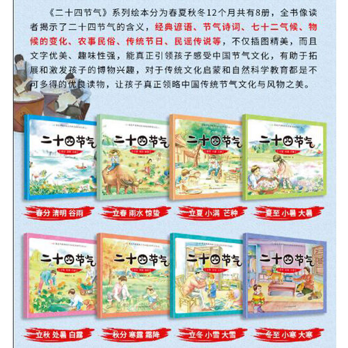 《写给儿童的二十四节气》是潮新闻第十四期阅读活动可免费兑换的书籍之一,其是由智慧轩文化编著、黑龙江美术出版社出版的一套少儿科普读物。结合已知信息,下面我想从内容结构、优点特色、不足之处三个方面为大家详细介绍和评价这套书。 1. 基本信息与结构 这套书为全8册的平装绘本,24开本(19×21cm),由黑龙江美术出版社于2018年出版。整套定价120元,在电商平台的折扣价通常较为亲民。 其结构非常清晰规整:将一年四季的24个节气,按照季节组合,每册包含3个节气(如《立春 雨水 惊蛰》、《夏至 小暑 大暑》等),每个节气独立成章节。 2. 内容与特色 这套书旨在通过“知识+美学”的方式,为孩子搭建起认识自然的桥梁。 · 系统的知识框架:书中为每个节气设置了固定版块,包括节气由来、天文气候、动物植物、七十二候、农事活动、民俗节日、相关故事传说以及古诗谚语等。这种结构不仅能让孩子了解“什么时候有什么”,还能解释“为什么会有”以及“古人做什么”。 · 侧重南北对比:书中专门提及了南北方的气候差异和不同的生长方式,这对于理解中国的地域辽阔和物候多样性很有帮助。 · 互动的阅读体验:除了知识讲解,书中在每册结尾处往往设有小游戏或动手环节,结合节气特征增加了阅读的趣味性。 · 浓郁的传统美学:全书采用大幅彩绘插画,风格古朴淡雅,试图在视觉上还原中国传统的田园意境,配合朗朗上口的谚语和古诗,具有一定的美育价值。 3. 客观评价 优点与亮点 · 系统性强,覆盖面广:作为启蒙读物,它像一本“节气小百科”,能让孩子建立起对二十四节气完整的认知框架。 · 性价比高:相较于单本精装的绘本,这套书在活动时价格比较亲民,适合作为家庭入门级藏书。 · 适读年龄宽泛:文字通俗易懂且有注音,图片色彩鲜艳,3-12岁的儿童均可通过亲子共读或自主阅读来学习。 需要注意的方面 · 内容深度有限:有读者反馈,每册书仅23页,分摊到每个节气仅约7-8页,导致知识点虽全但深度不足,更像是“纲目式”的罗列。 · 装帧相对简约:部分读者认为书本较薄,属于平价普及型读物,而非收藏级别的精装书,在纸张质感上可能没有溢价过高的绘本那么厚重。 4. 总结 《写给儿童的二十四节气》是一套合格的入门级“节气科普书”。 如果你的目的是让孩子对二十四节气有一个系统、全面且清晰的基础认知,了解每个节气对应的农事、民俗和自然现象,这套书以其实惠的价格和规整的结构,是很好的选择。 不过,如果你更追求文学意境、故事性的趣味或者极致的画面美感,可能需要考虑其他侧重于某一方面(如节气故事、节气诗词或更细腻的手绘)的同类读物。