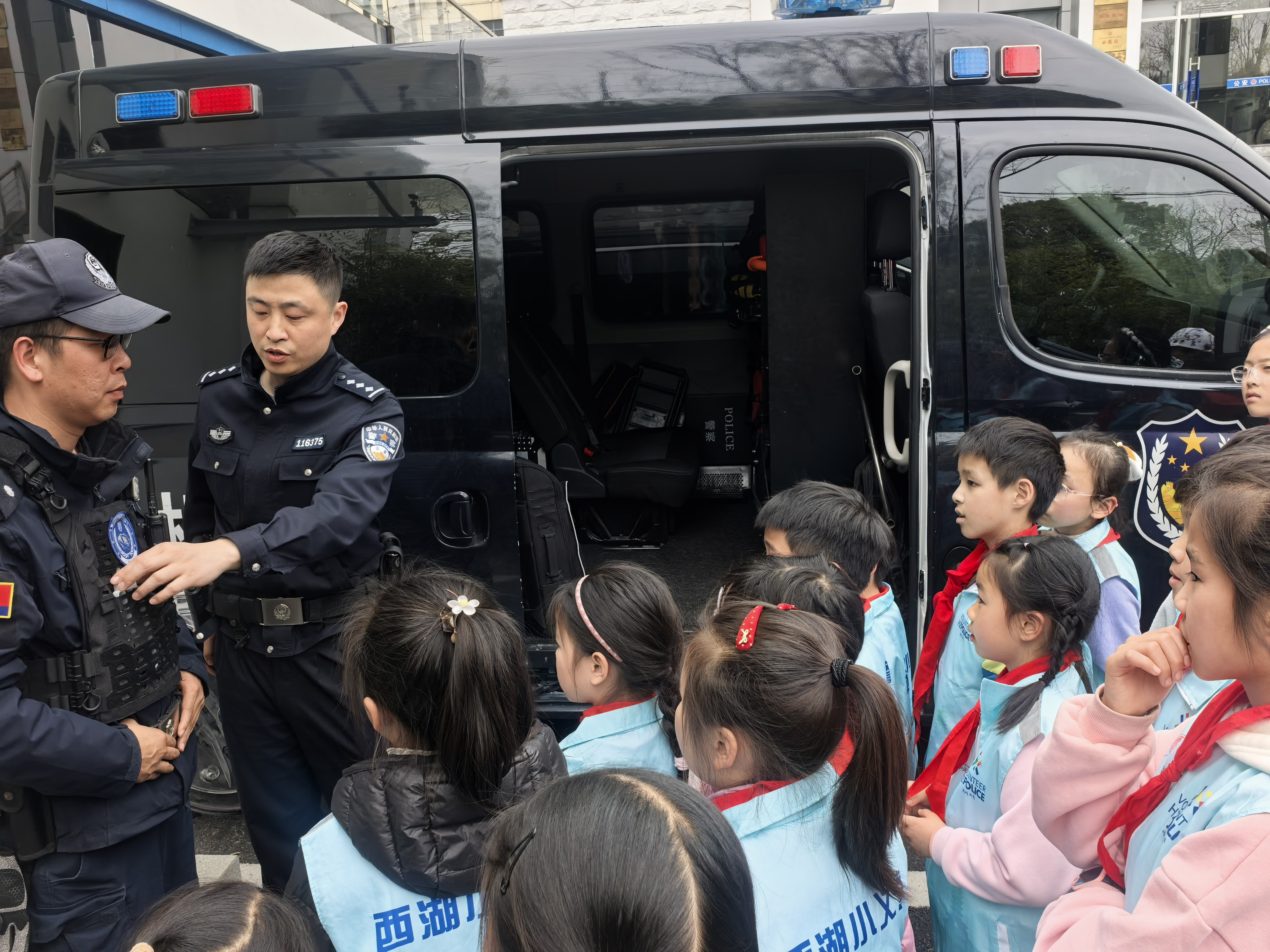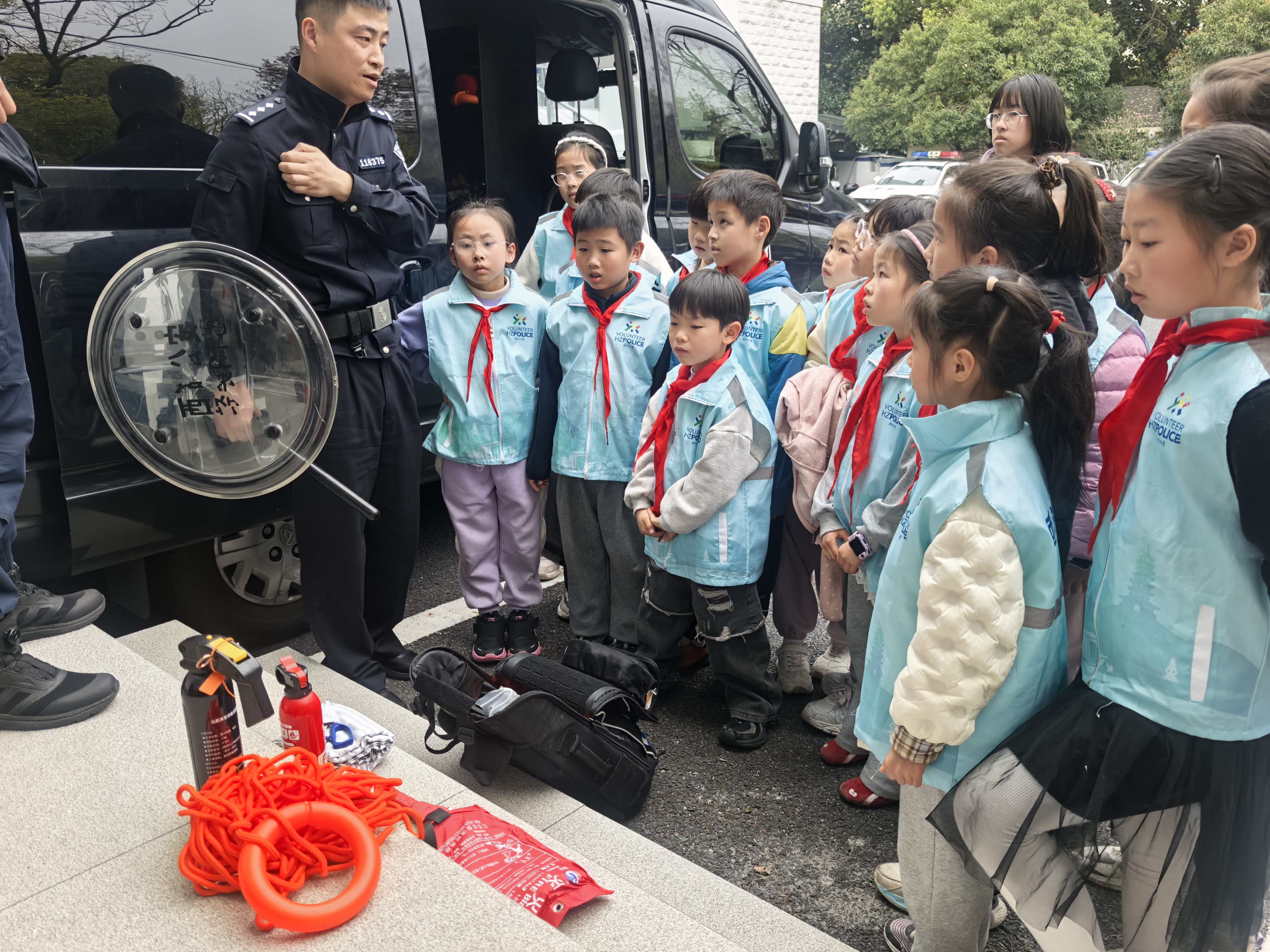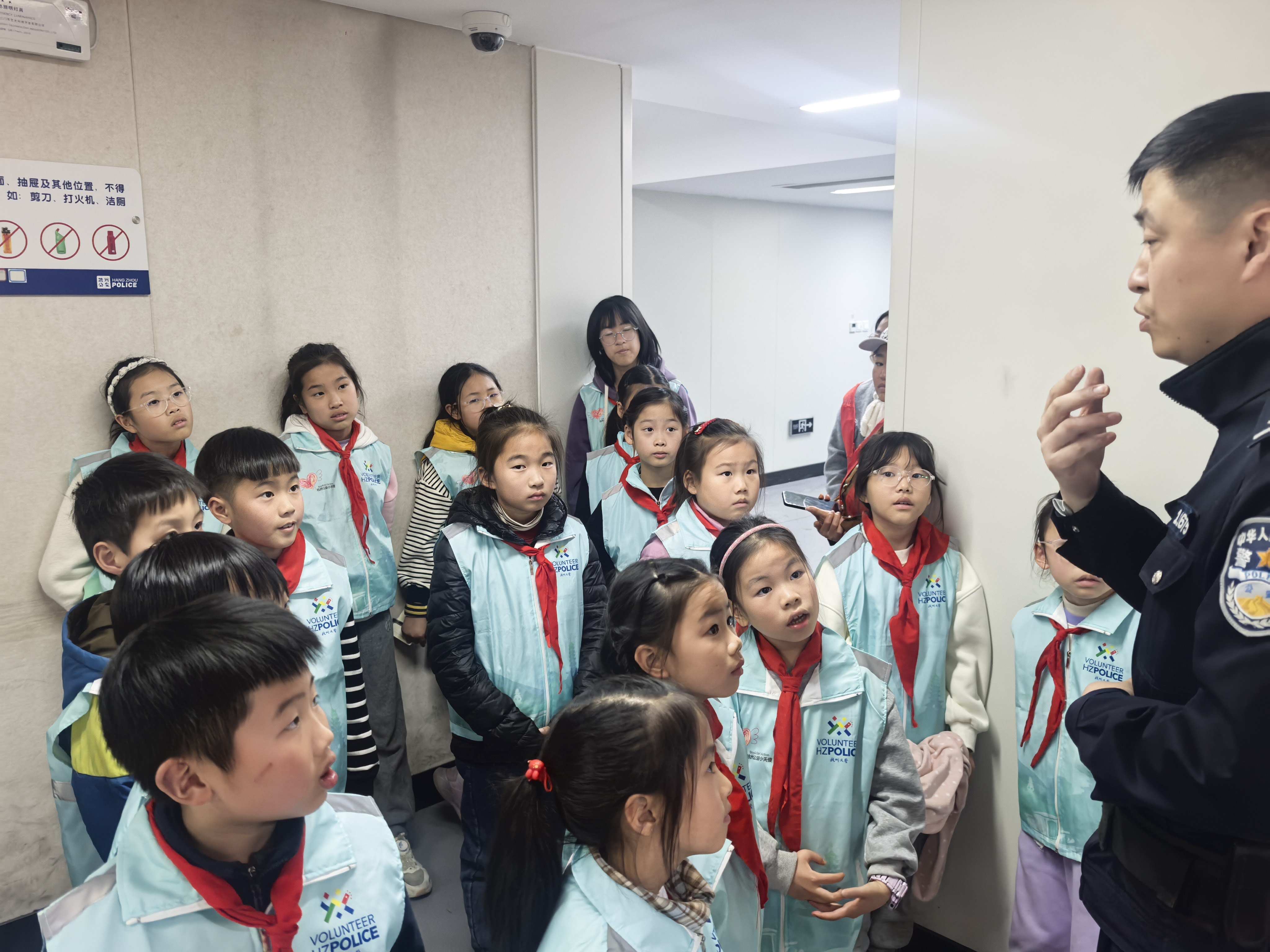 今天,我做为杭州公益小天使,参加了“反诈有召,警童并行:守护平安杭城”公益活动,这是我第一次走进派出所,我受益颇丰。 民警叔叔带我们认识了许多警用装备,还给我们详细讲解了每一件警用装备的用途。在接警大厅,了解到群众报警后警情的规范处理流程;在综合指挥室,通过“天眼”监控系统实时观察辖区动态,感受到科技强警带来的高效与精准政府;在办案区,目睹了讯问室、信息采集室等场所及专用设备,认识到执法过程的严谨与规范。以前在电视机上看到扣押坏人的手铐,我今天还亲手触摸到了。我的内心充满了震撼与敬畏。 这次体验让我真切感受到人民警察的责任与担当,也让我懂得要敬畏法律,从小做知法、懂法、守法的好少年。