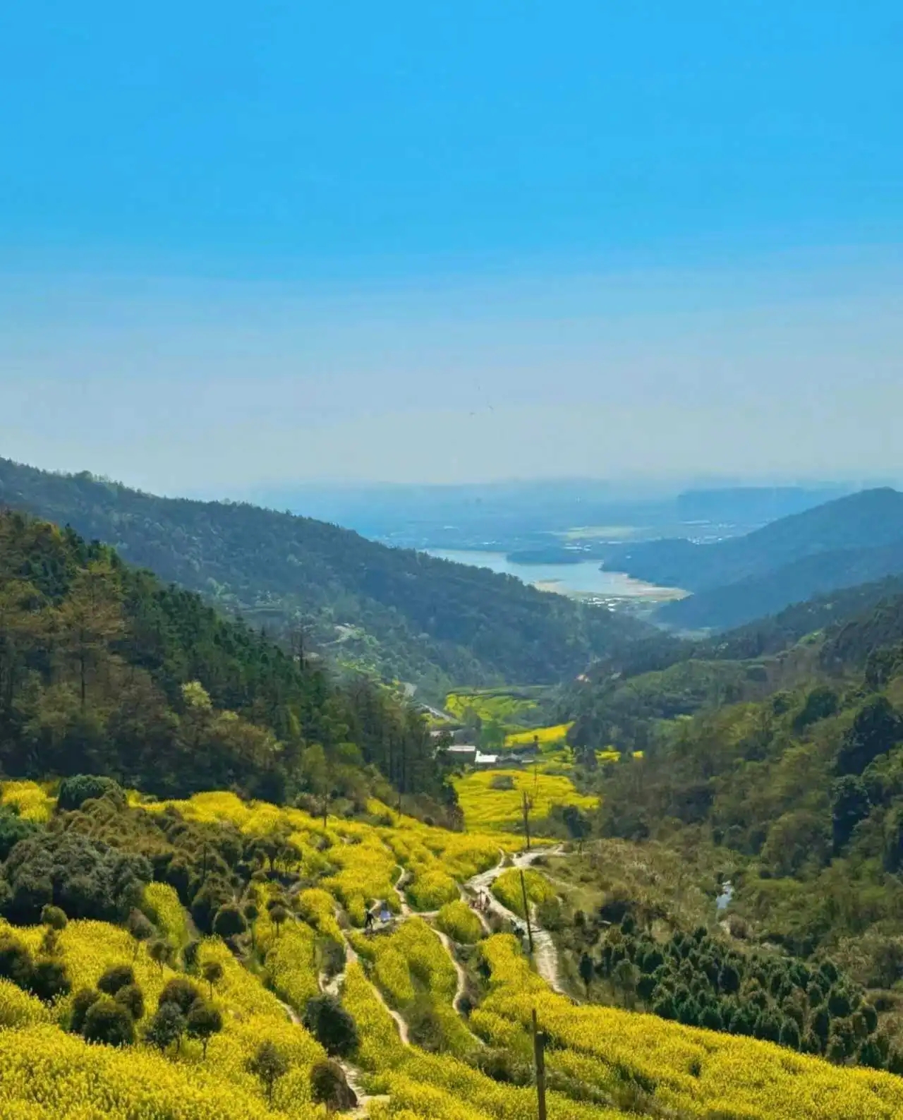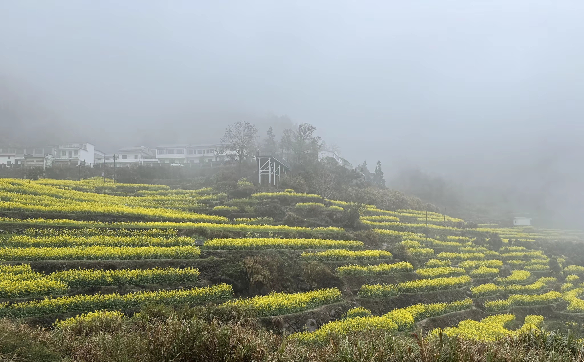 春风漫过梅岭的山坳,牛岭的油菜花便醒了。 一层层梯田顺着山势铺展,从谷底一直漫到云边,像被阳光揉碎的金箔,又像大地摊开的绒毯。青灰的石墙、黛色的瓦屋,错落在花海之间,偶尔有山风卷着花香掠过,把漫山的金黄吹得泛起涟漪。 晴日里,天是透亮的蓝,花是耀眼的黄,远处的赣江像一条银带,把山与城轻轻系在一起;雾天时,云絮漫过田埂,花海便浸在水墨里,朦胧得像一幅未干的画,连呼吸都带着湿润的甜香。 沿着古商道拾级而上,脚下的麻石路被岁月磨得发亮,两旁的油菜花没过脚踝,蜂蝶在花穗间忙碌,把春日的细碎声响藏进每一缕风里。这里没有拥挤的人潮,只有山的呼吸、花的低语,和时光慢慢流淌的声音。