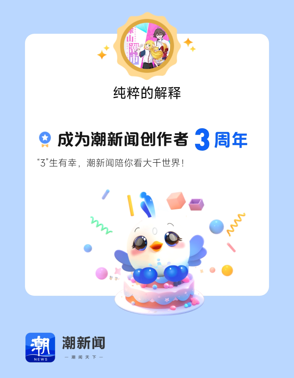 今天是我加入潮新闻创作者大家庭3周年的日子,快来我的主页看看这一年的创作成绩单吧!