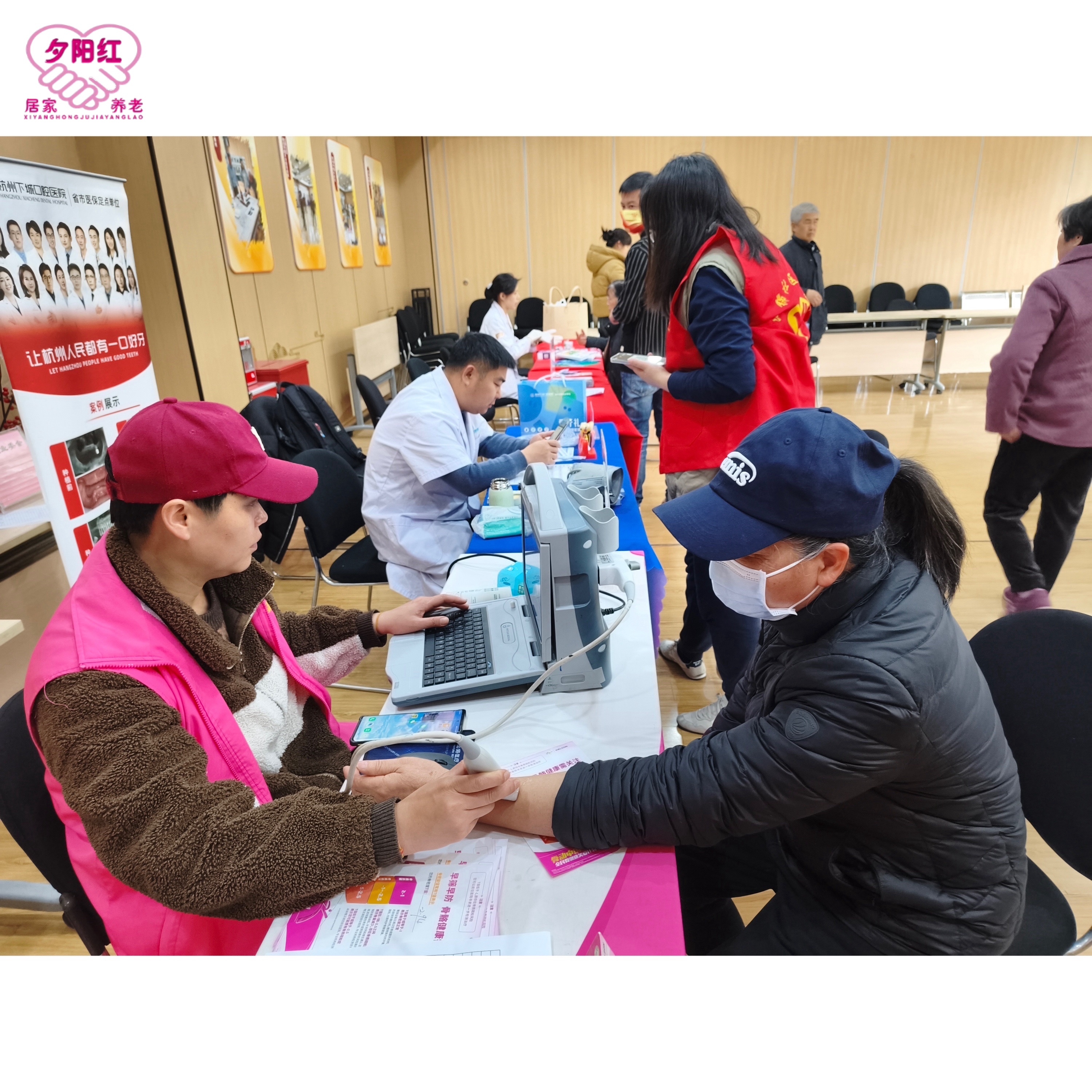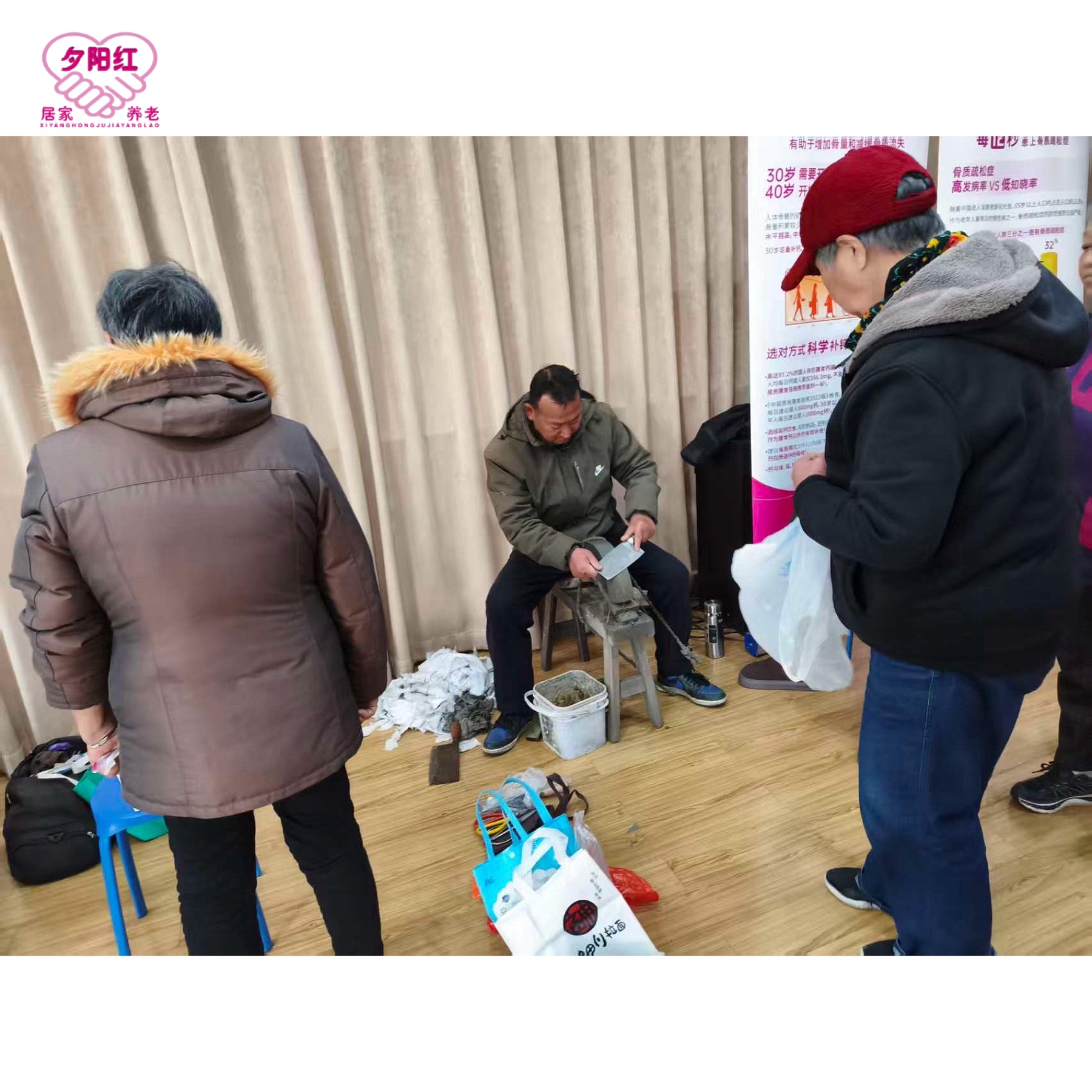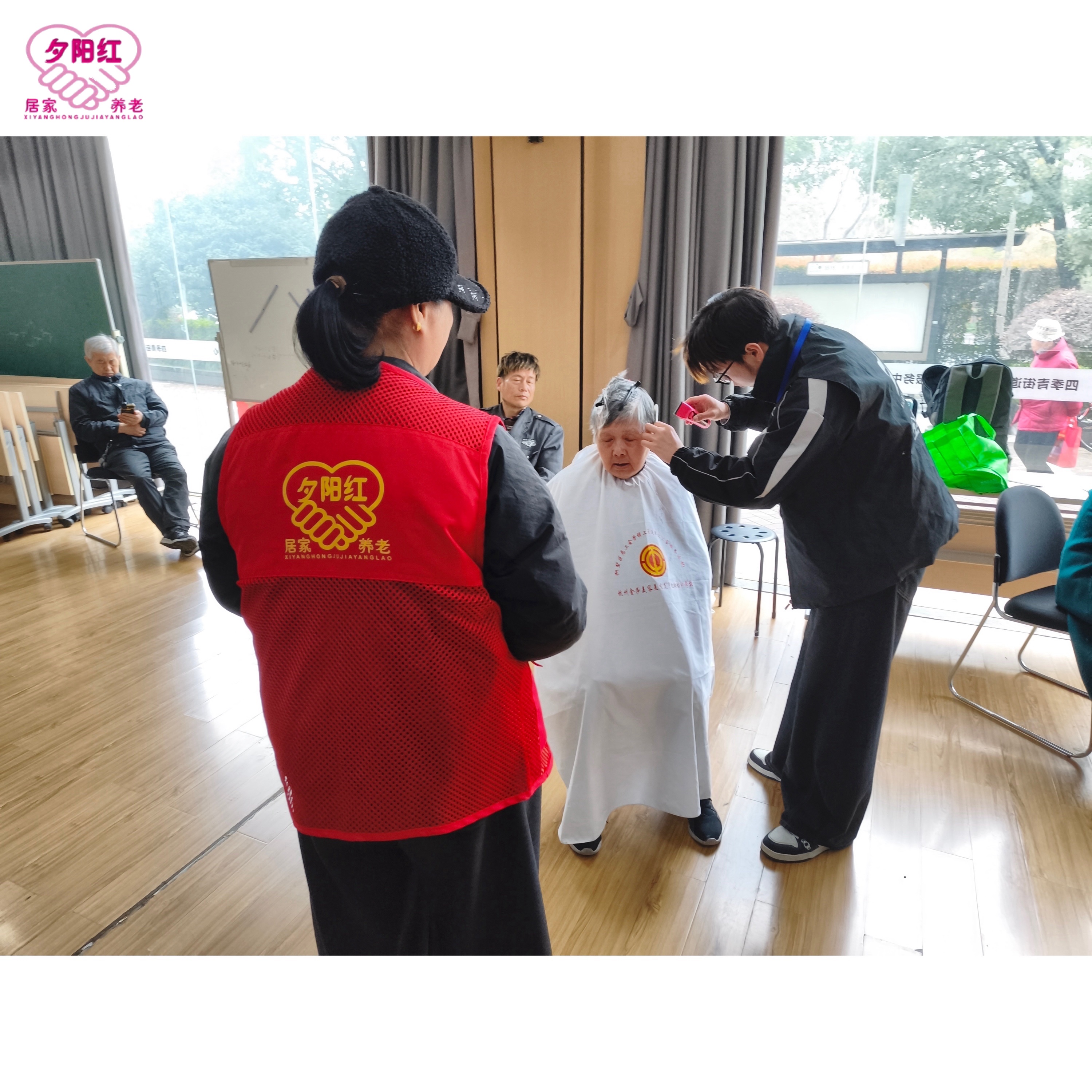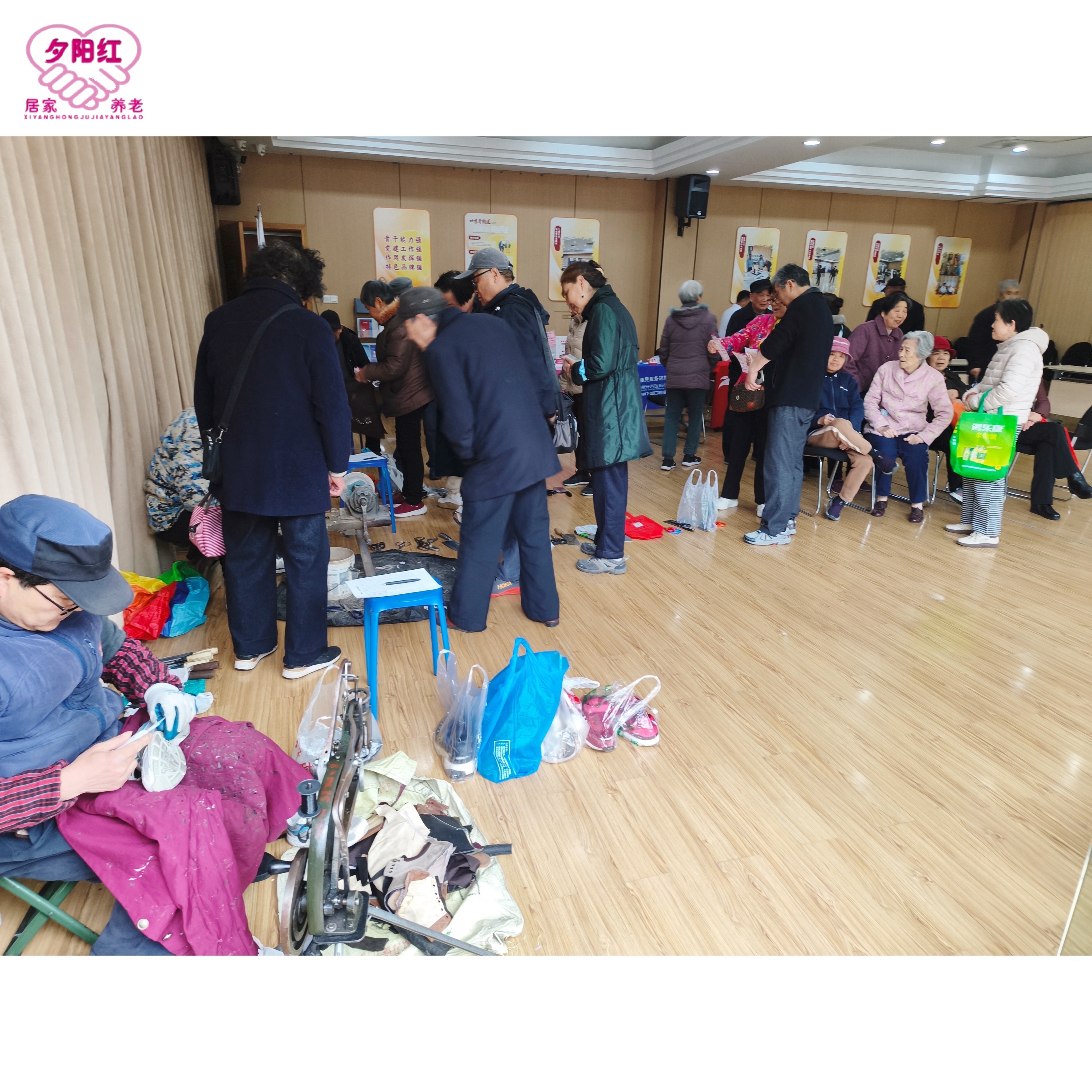 ❤️室外下着雨🌧️便民服务改至室内开展~夕阳红联合爱心商家走进江锦社区,将便民服务搬进温暖的活动室,让居民们在雨天也能享受到贴心照料。志愿者们耐心细致,理发师为长者梳理清爽发型,志愿者认真解答口腔健康疑问,骨密度检测为健康保驾护航,修伞、磨刀师傅更是手脚麻利,解决了大家生活里的小难题。雨水挡不住温情,服务暖到心坎里。这场“雨中便民宴”,用实实在在的行动,让社区邻里感受到了满满的关怀与烟火气~