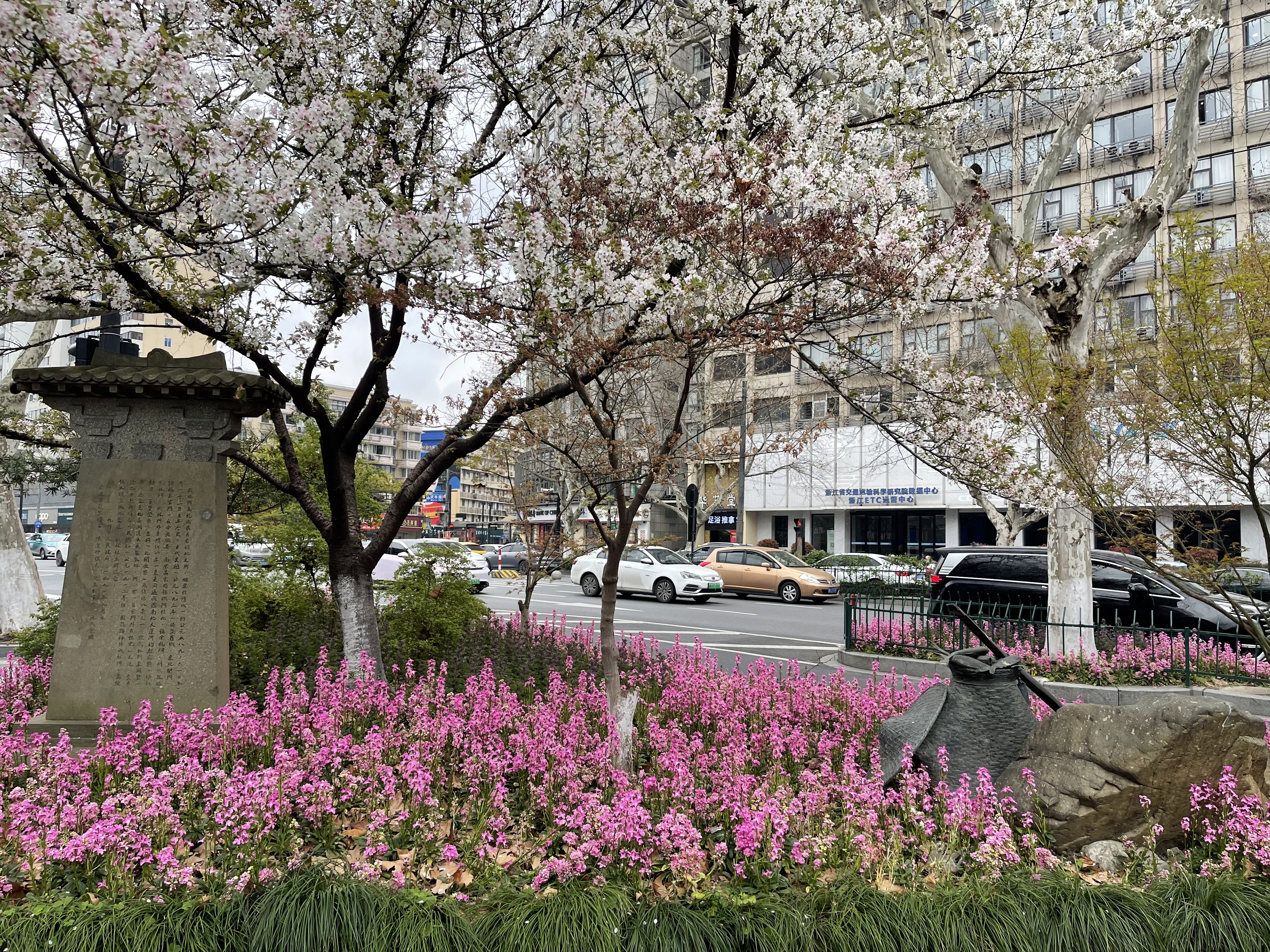 走在杭州街头一股春天的气息扑面而来,春季美丽的花卉也引得路人驻足拍照。