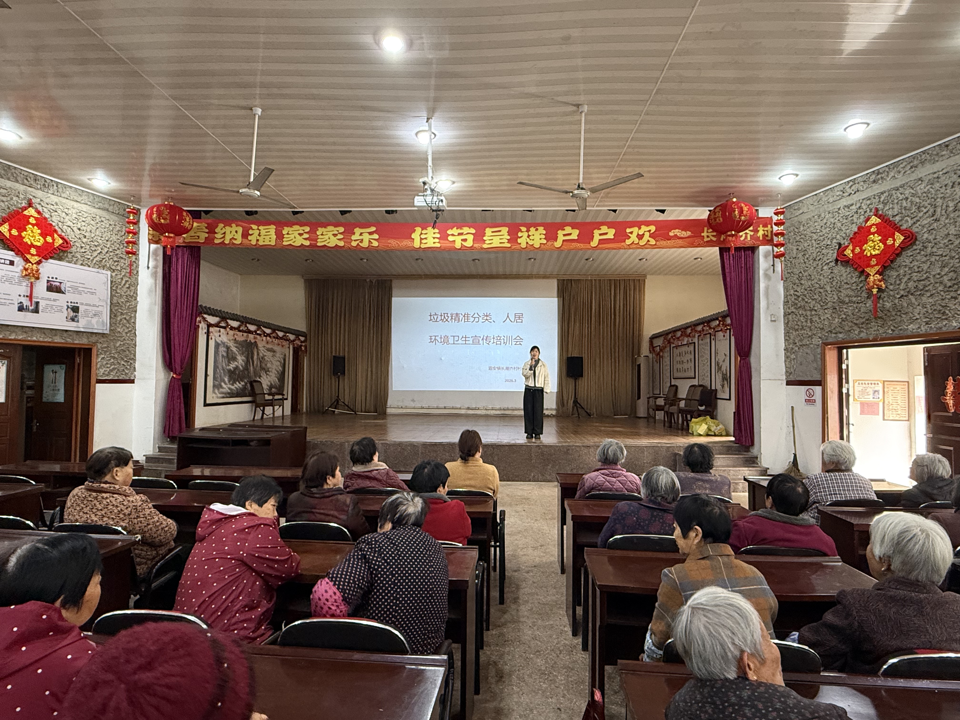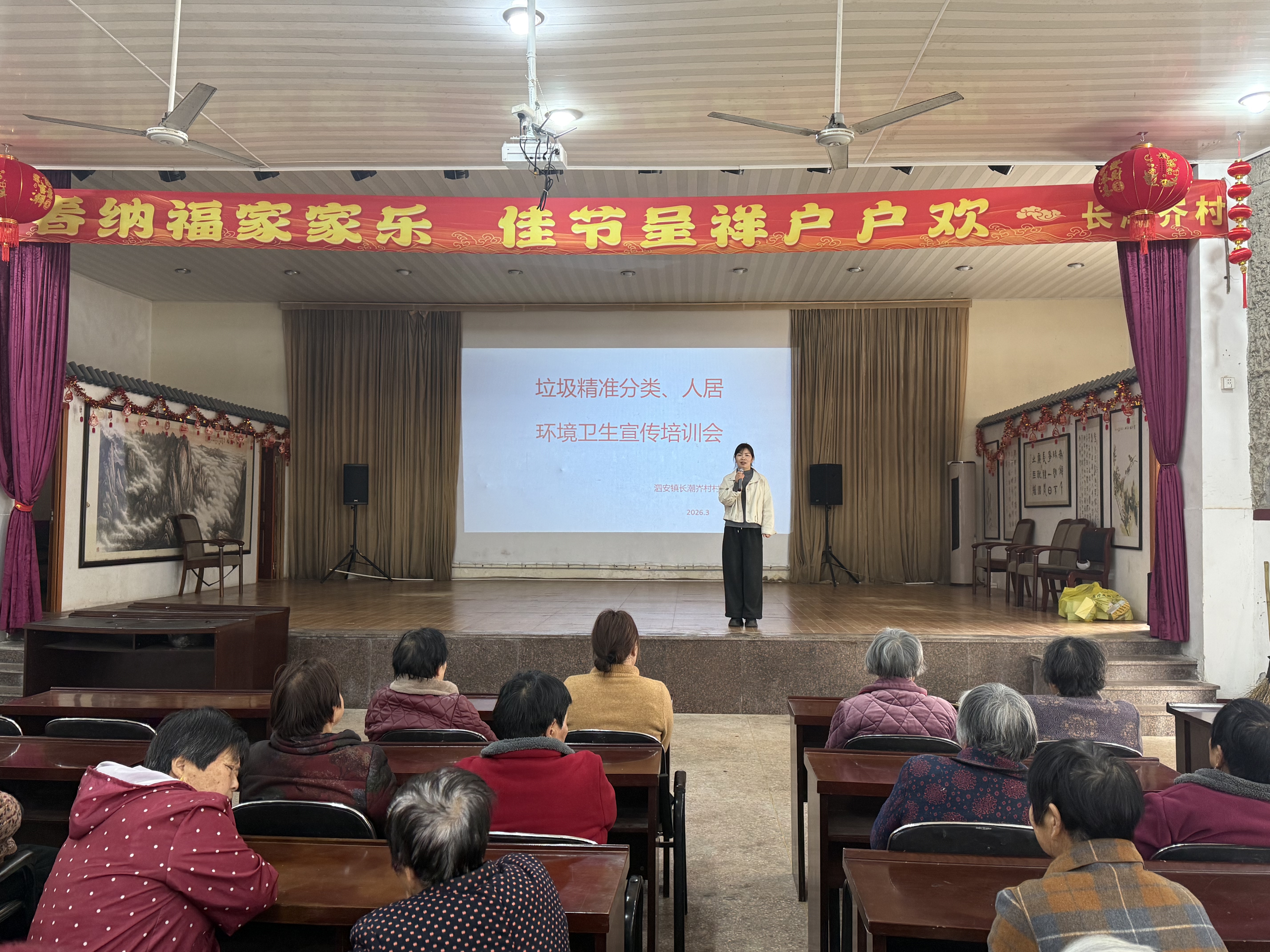 长潮岕村开展垃圾分类、人居环境卫生知识培训会 今天下午泗安镇长潮岕村妇联主席在文化礼堂内举办垃圾分类与人居环境整治知识讲座,内容涵盖垃圾四分类识别、投放规范及农村环境整治要点,通过案例解析与互动问答,提升村民实操能力。活动旨在深化绿色发展理念,推动村容村貌常态化管理,共建生态宜居的美丽乡村。