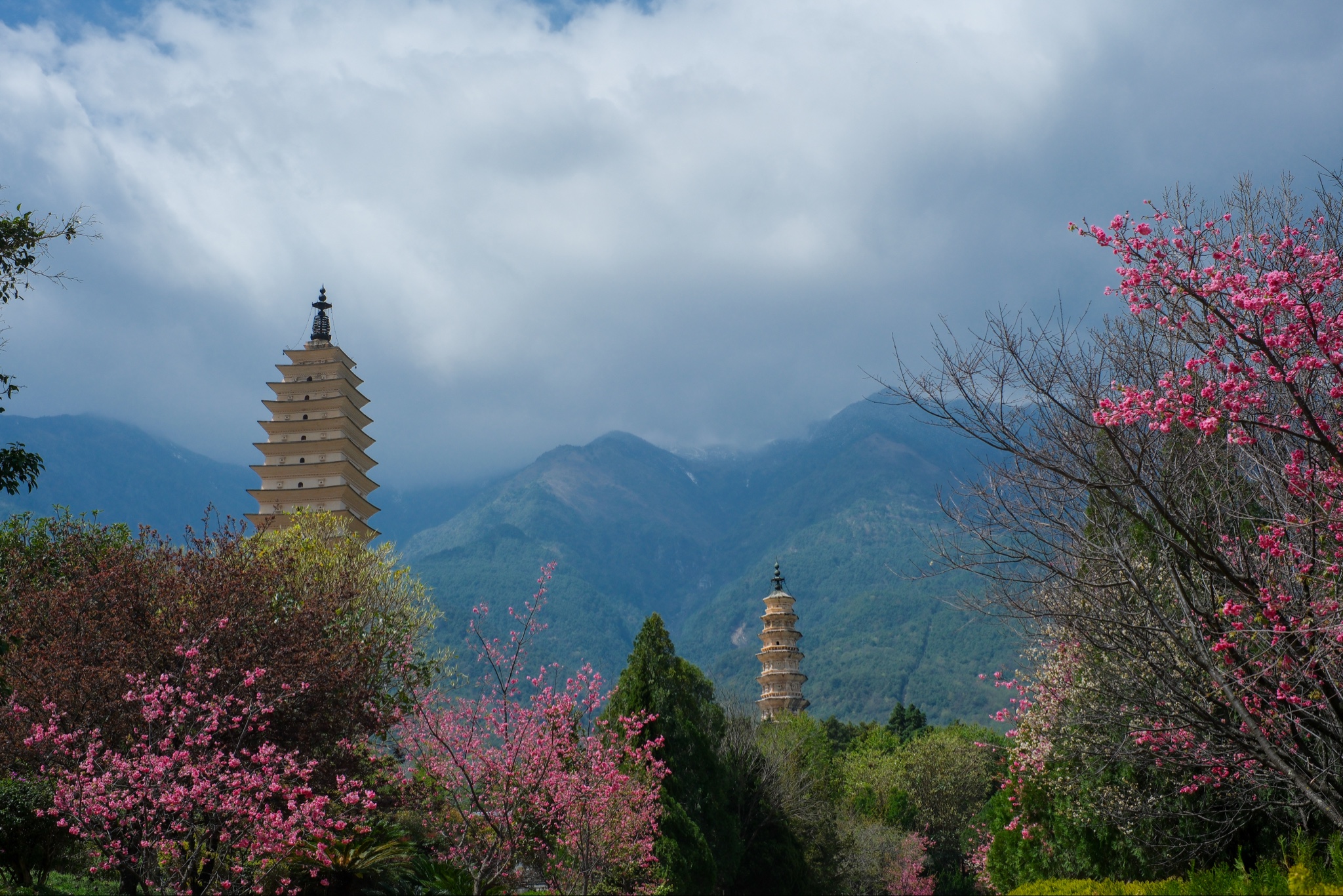 春日大理,樱花纷飞下,三塔倒影洱海间,苍山为幕,古城作衬,随手一拍就是明信片~