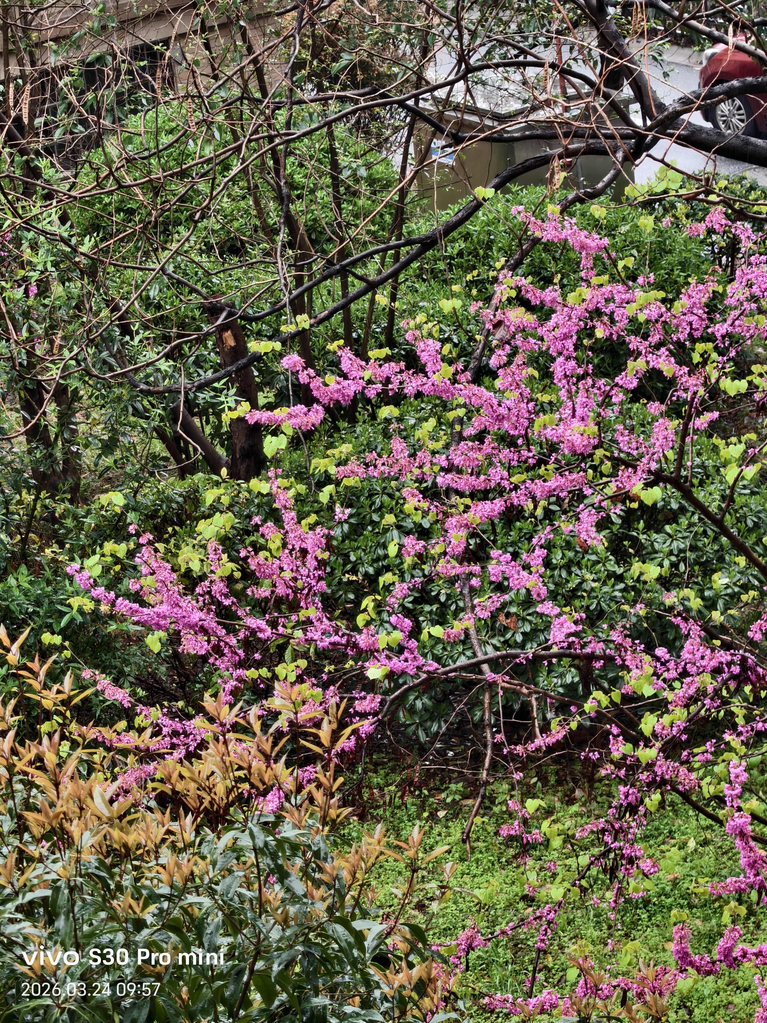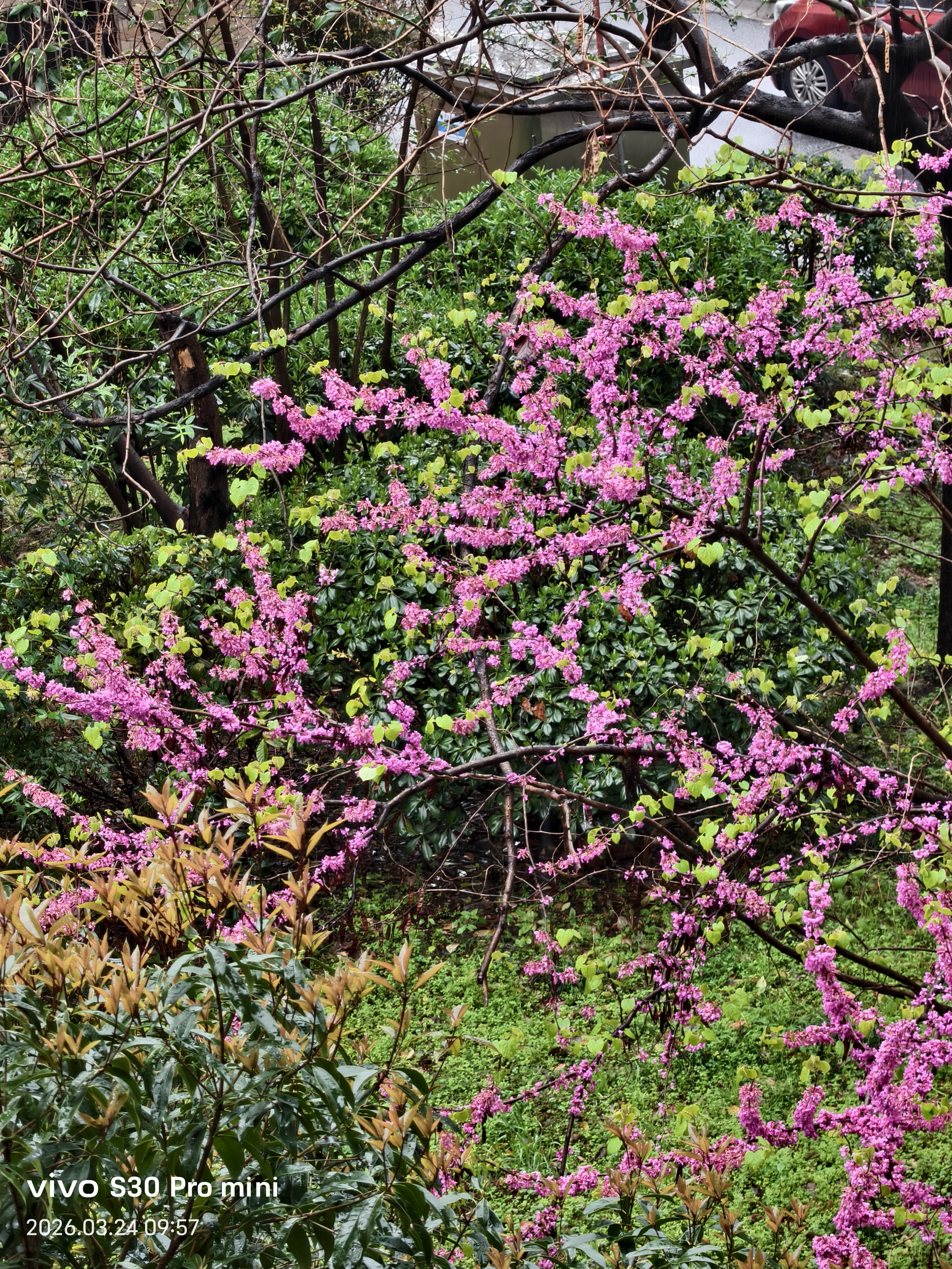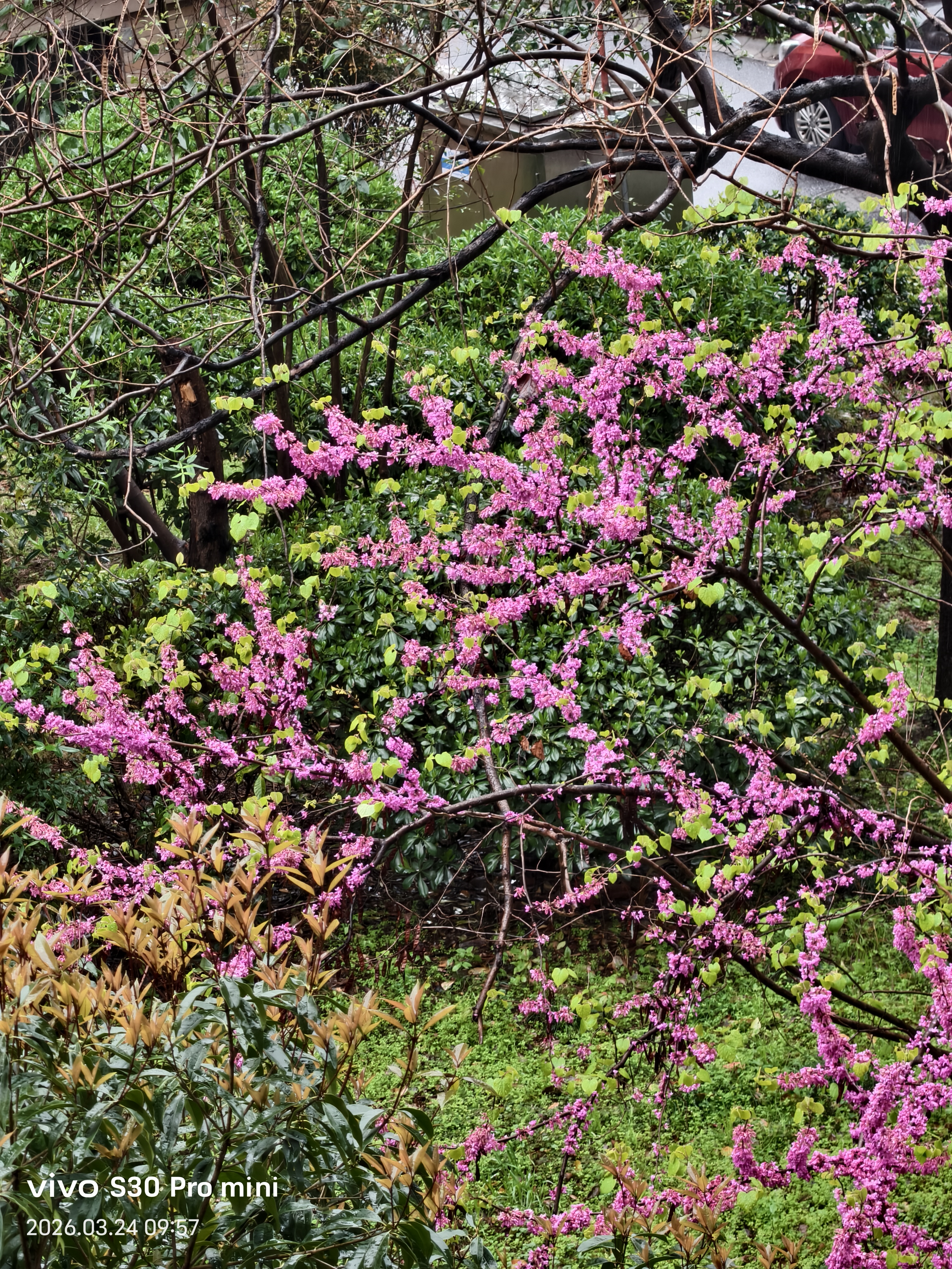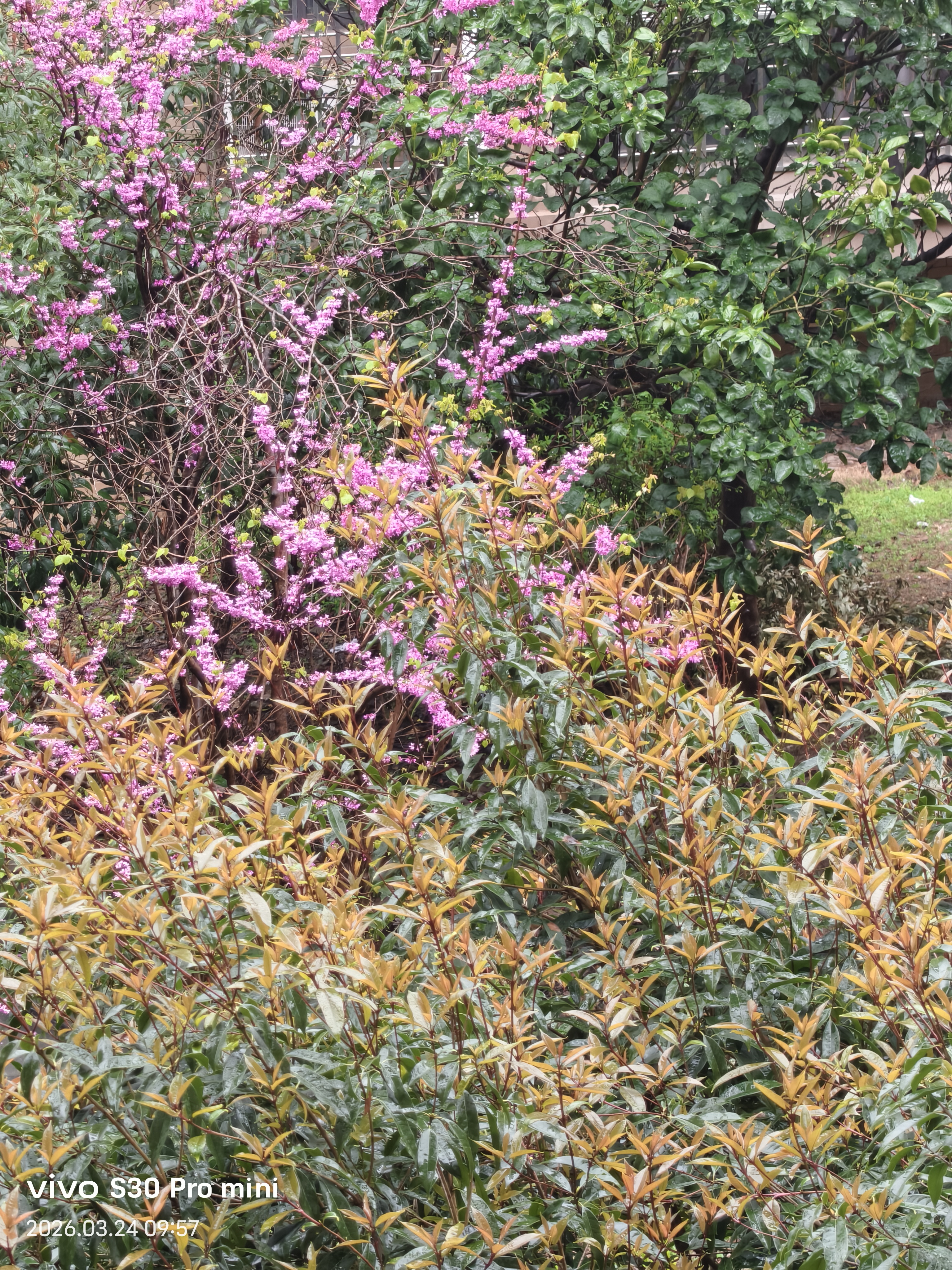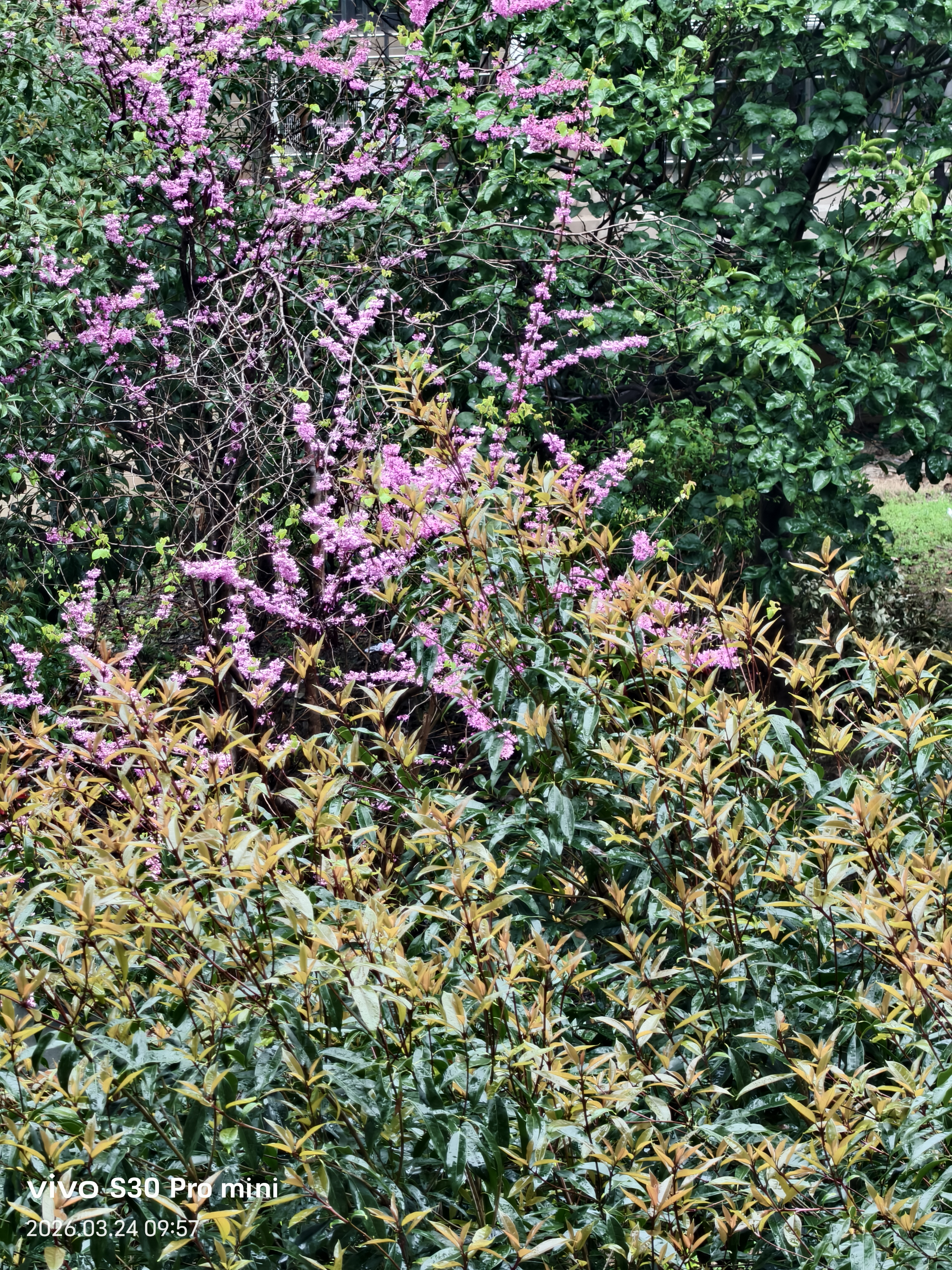 亭台楼阁烟雨中, 小桥流水花多娇! 神州大地春日到, 昂首挺胸华夏人!