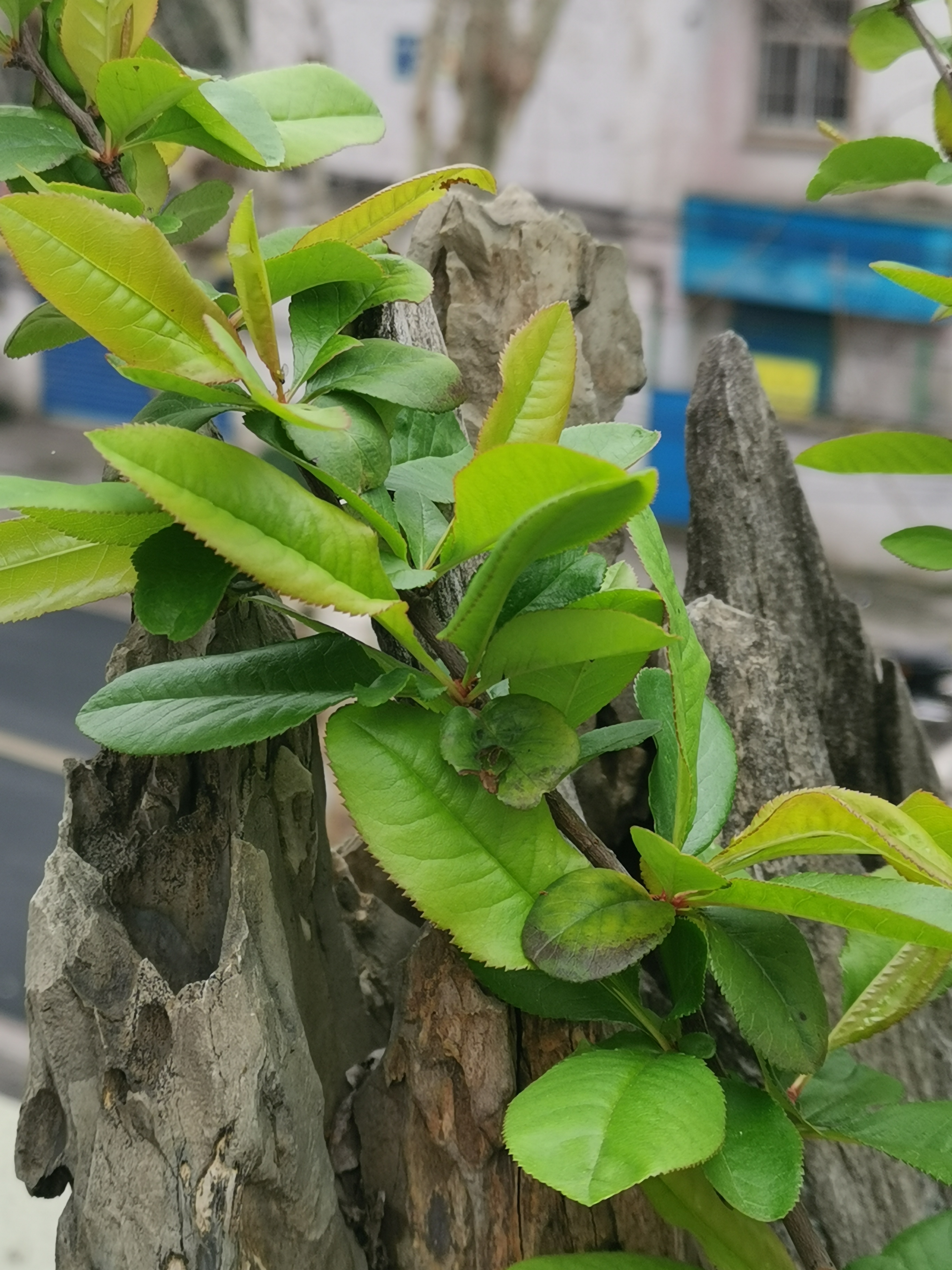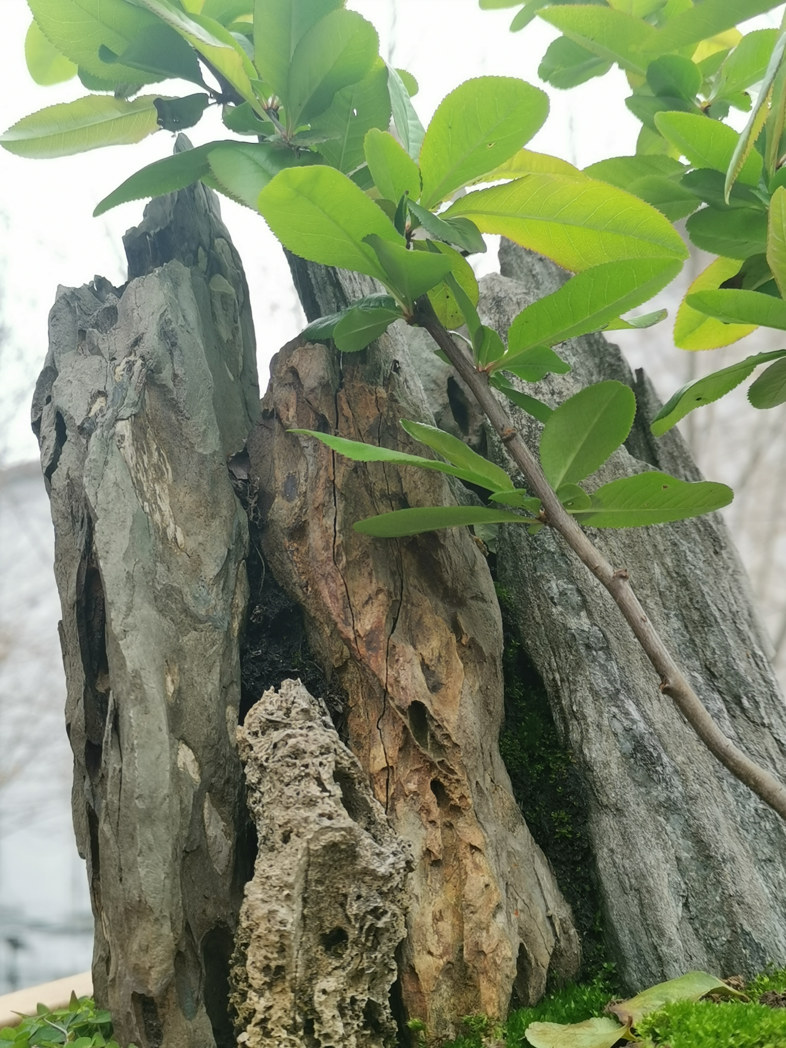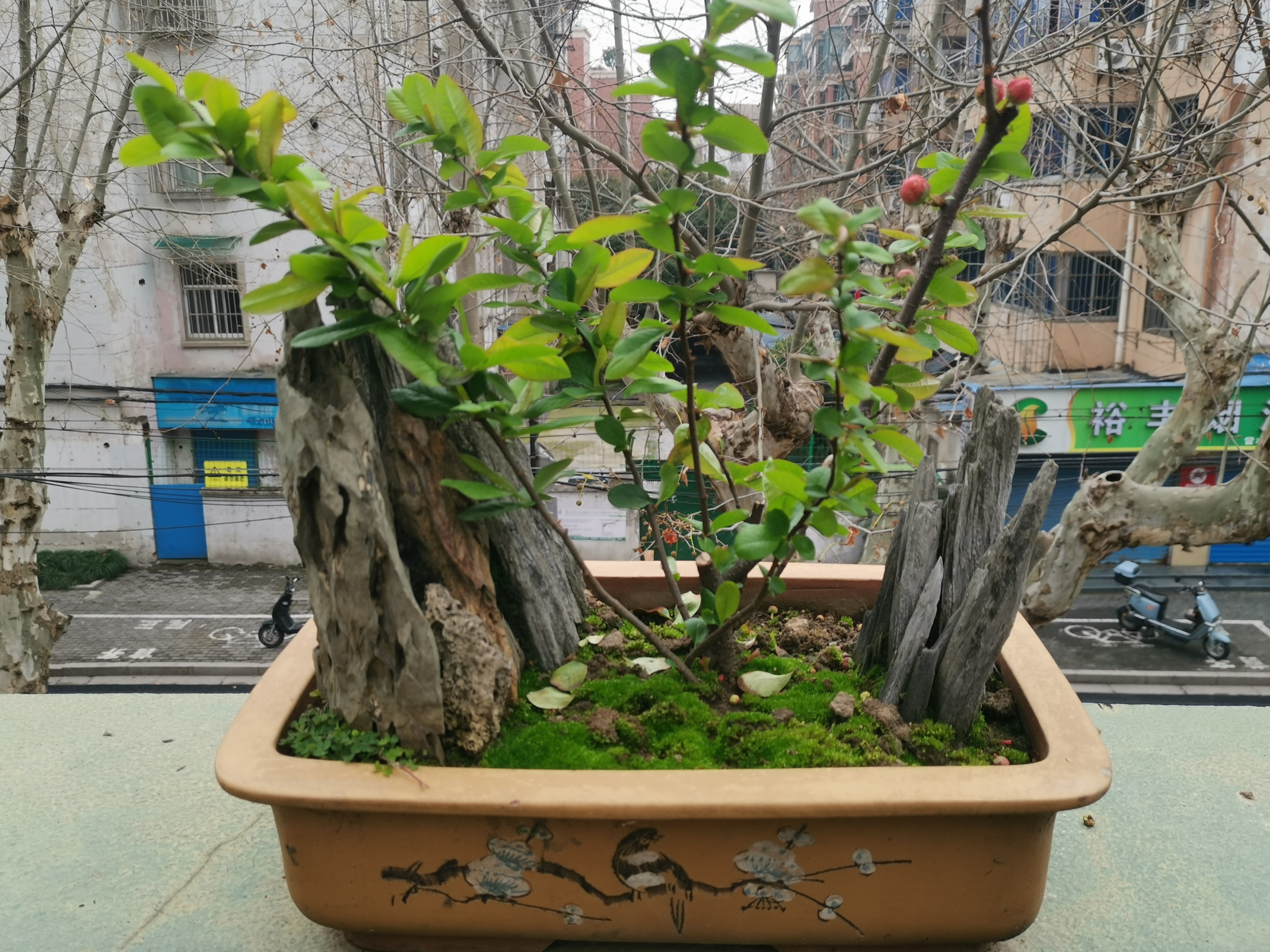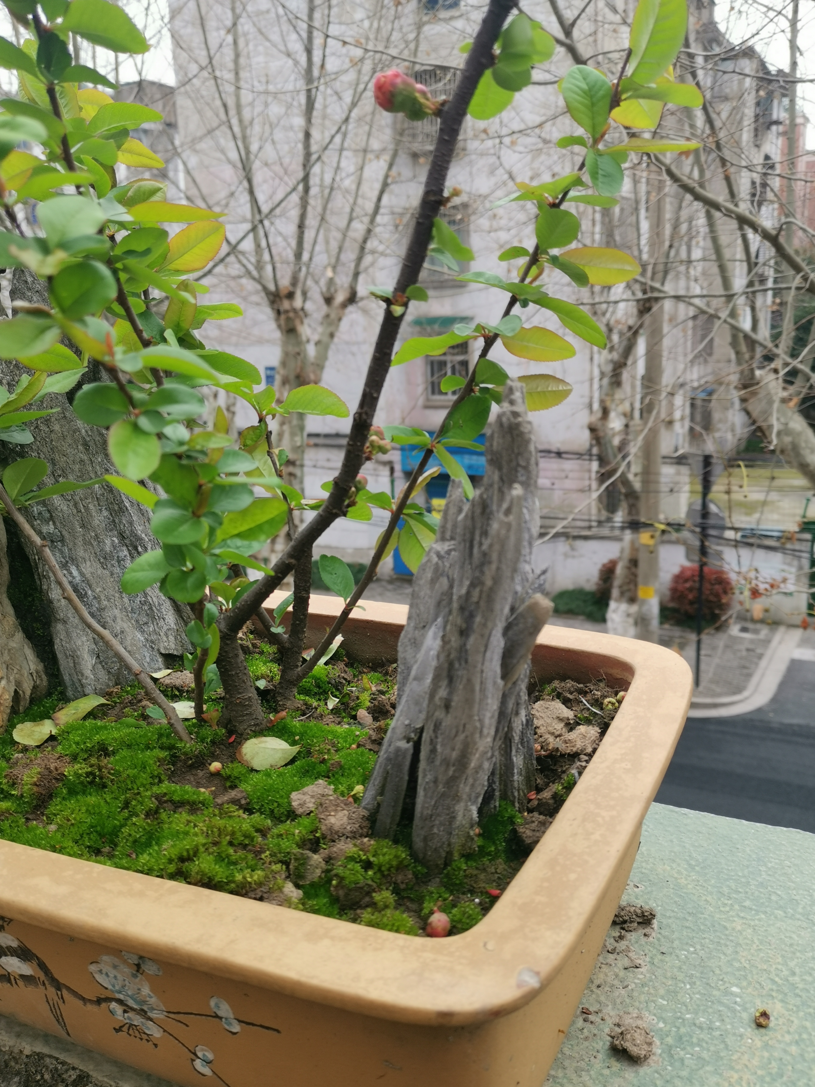 🇨🇳小盆景里的春天,假山石、贴梗海棠完美结合,美不胜收!