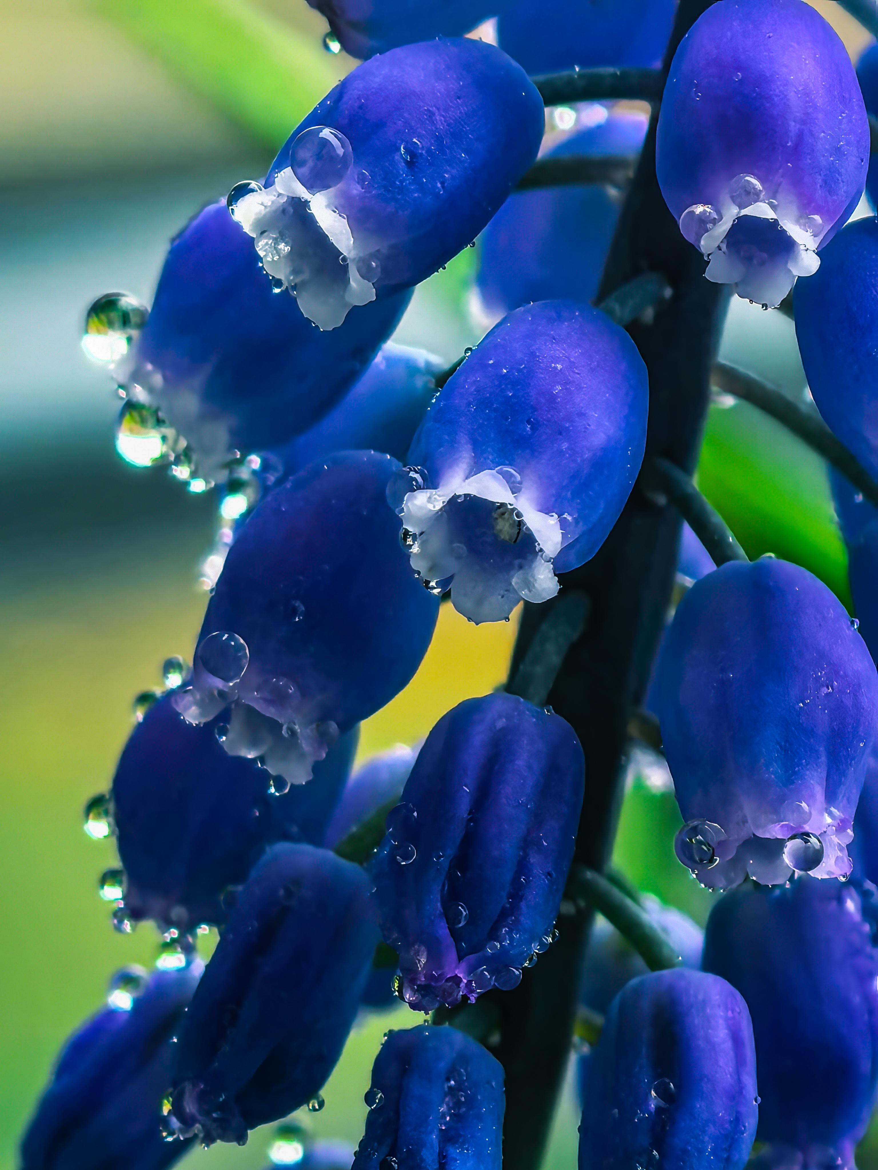 雨后蓝铃花上露珠晶莹,紫瓣微垂,水滴欲坠,春日的清新扑面而来~