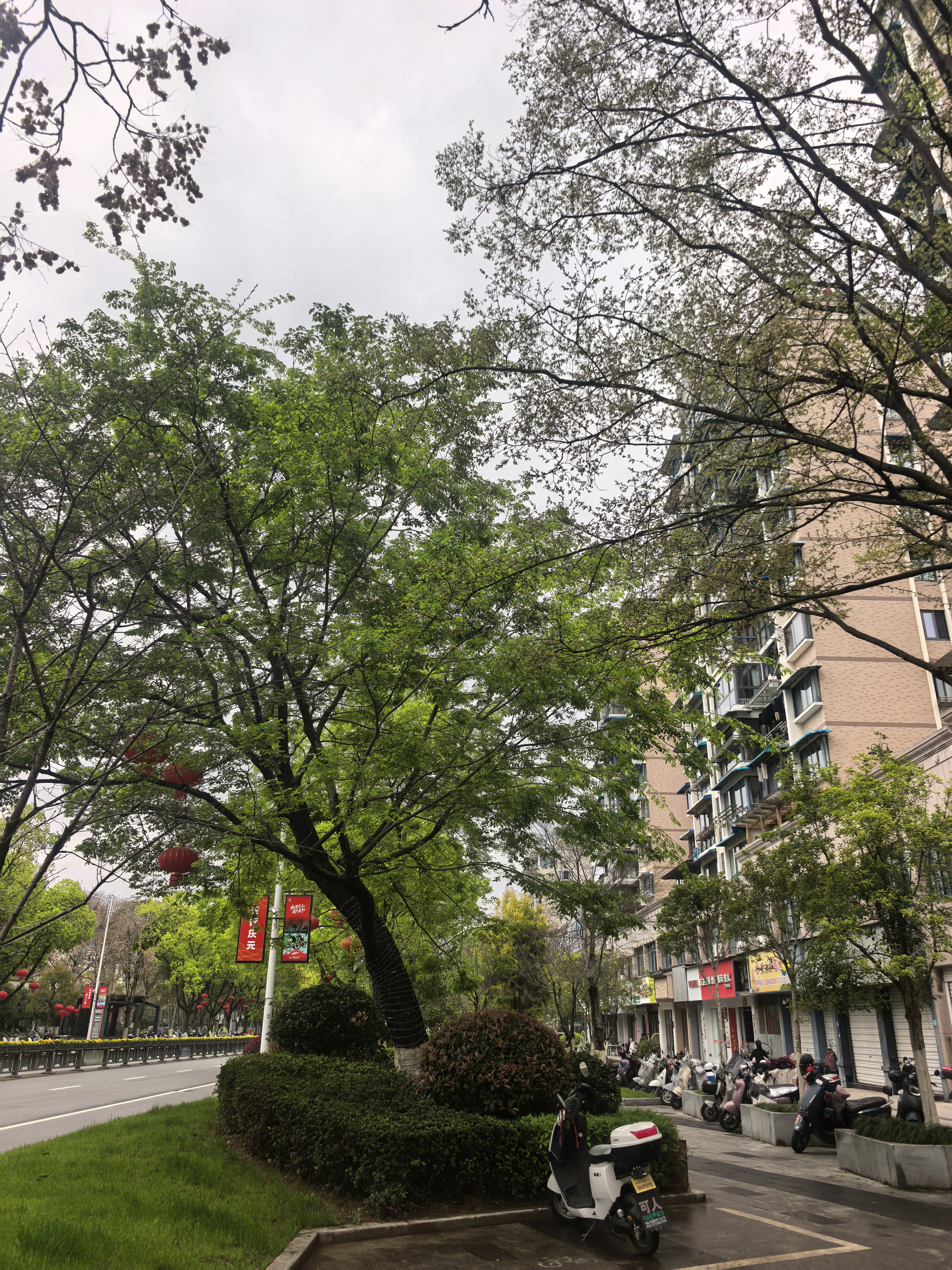 阴天也藏不住春意!红灯笼挂得喜气洋洋,绿植掩映下的电动车静静伫立。烟火与绿意并存,这日常的小确幸,最能抚平人心🍃