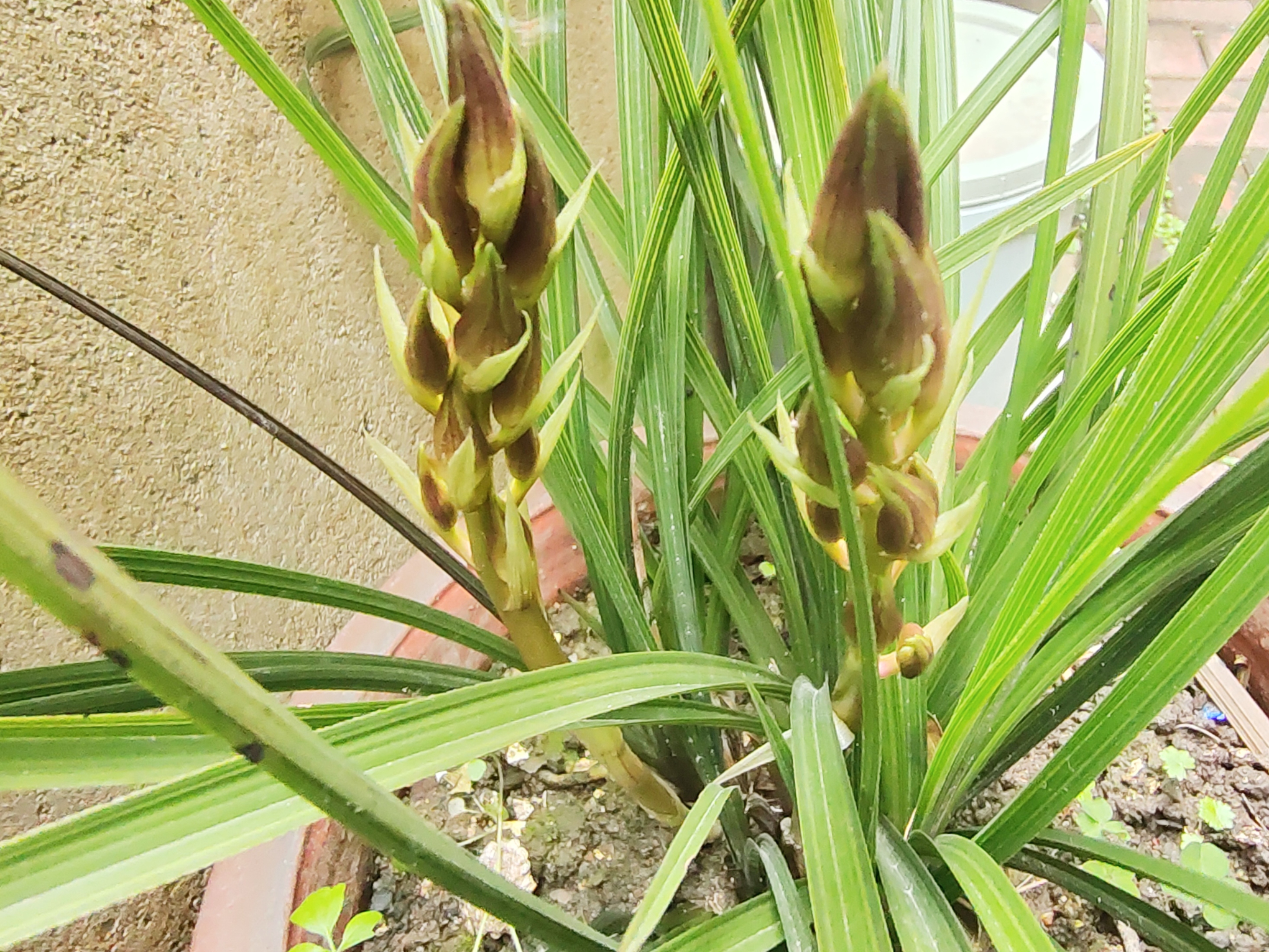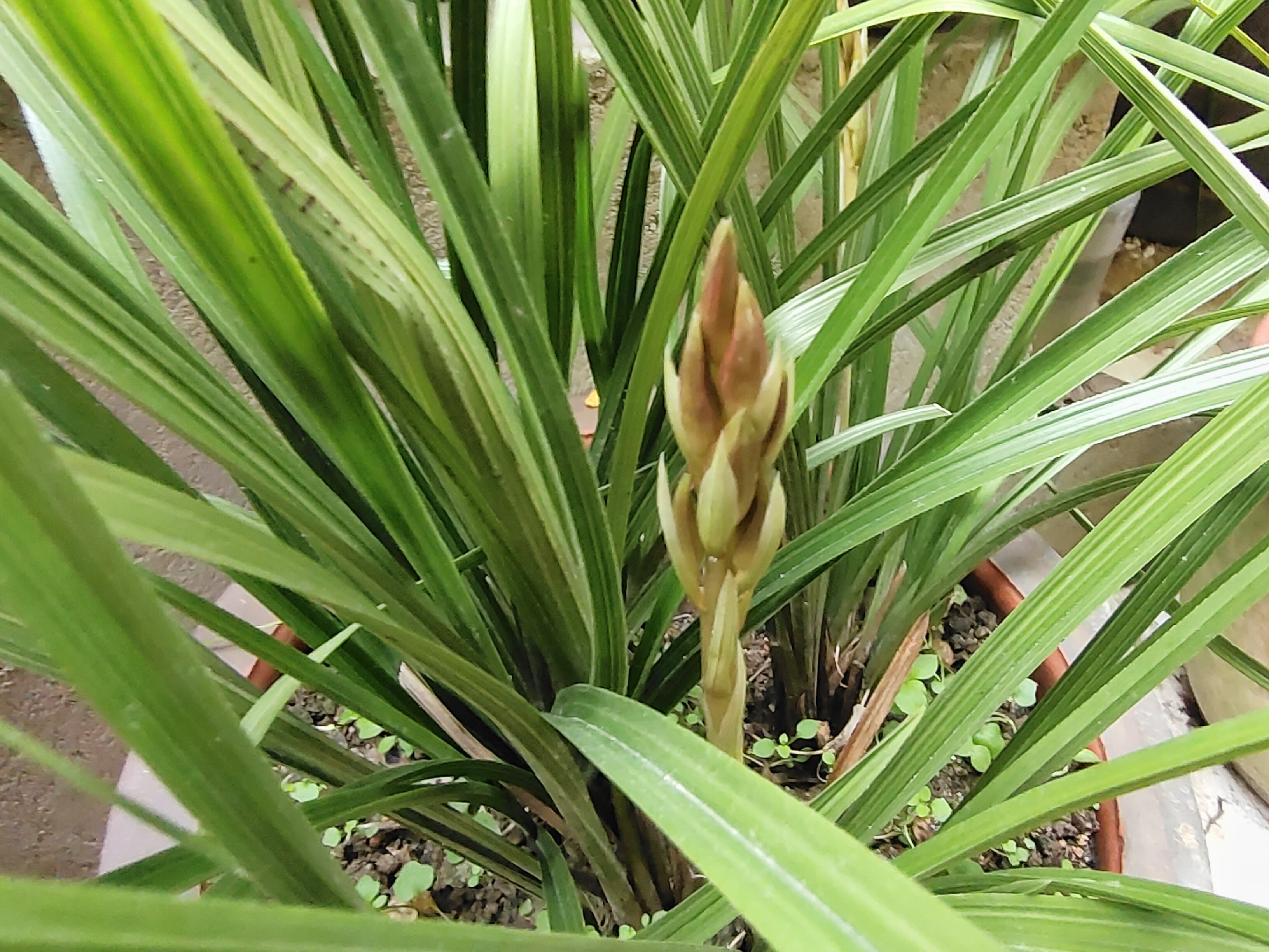 阳台小角落,兰花悄悄冒苞~绿叶衬着棕苞,随手一拍都是自然系大片!