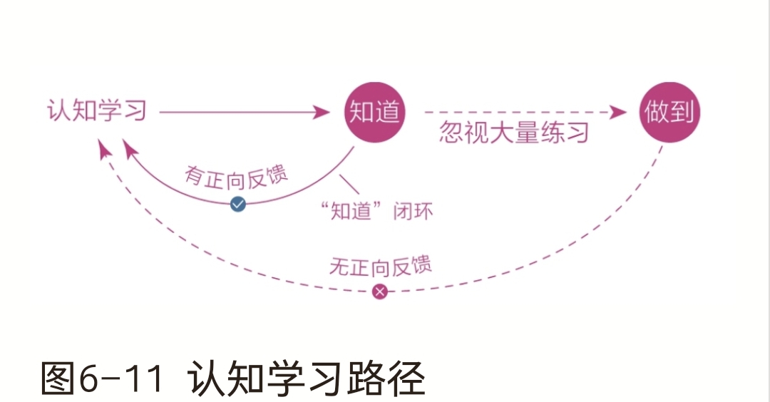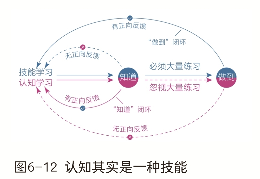 在技能学习的路径中,仅仅“知道”是无法形成反馈闭环的,只有经过大量的练习,让大脑相关的神经元形成强关联,反馈闭环才能经由“做到”这个节点得以形成。 如果你现在就是一个“知而不行”的人,千万不要自责,因为“避难趋易”是人类的天性,这种选择取向深深地刻在了我们的基因里,所以凡是能简单得到的,人就不会选难的;有短的反馈回路,人自然不会选择长的——这就是大脑做选择时的默认逻辑。在缺少觉知的情况下,我们很难察觉这一点。 从现在开始,把认知当成技能,知道或想通一个道理时,不要高兴得太早,想想后面还要做大量的练习,这样就不浮躁了。