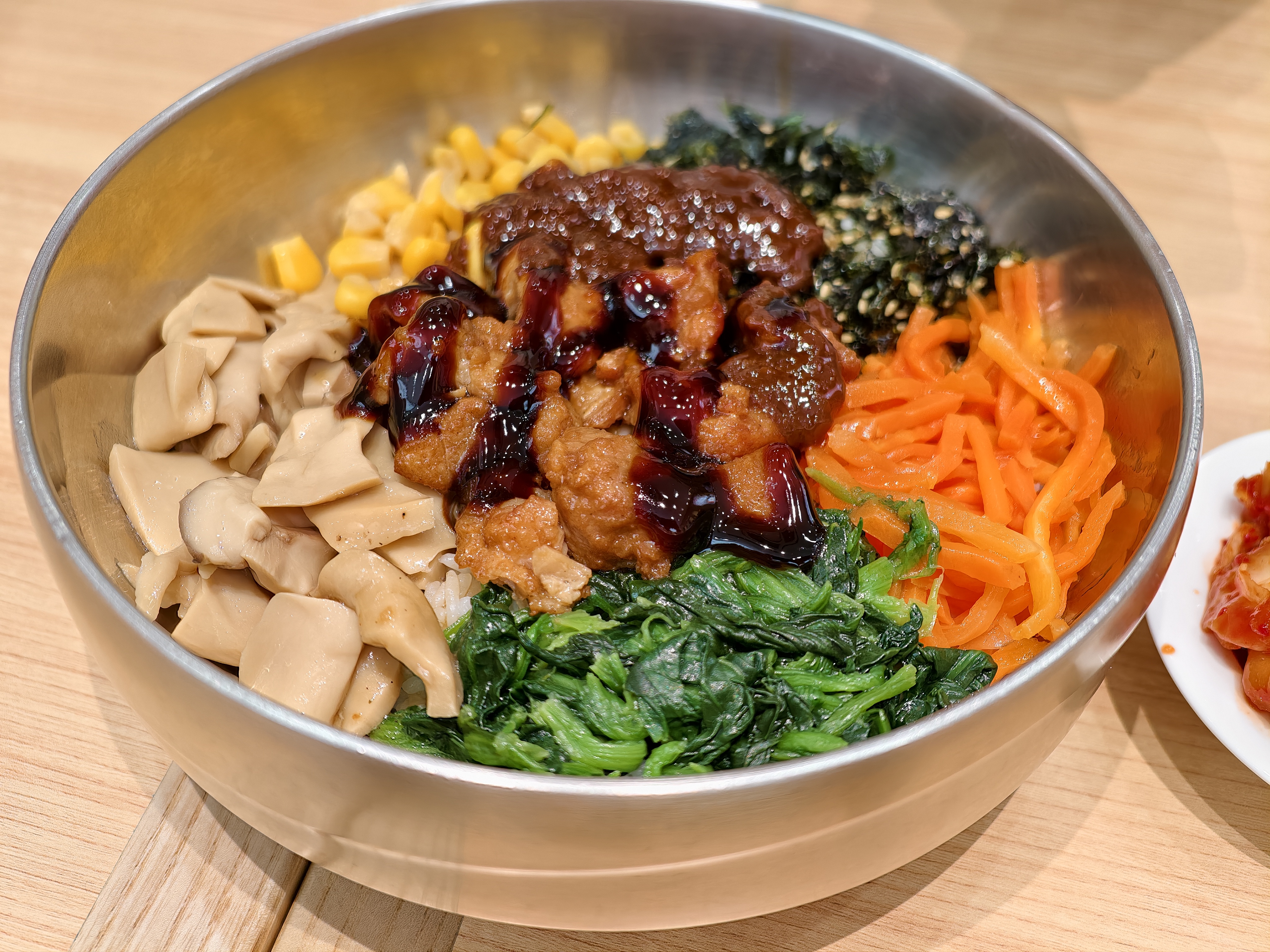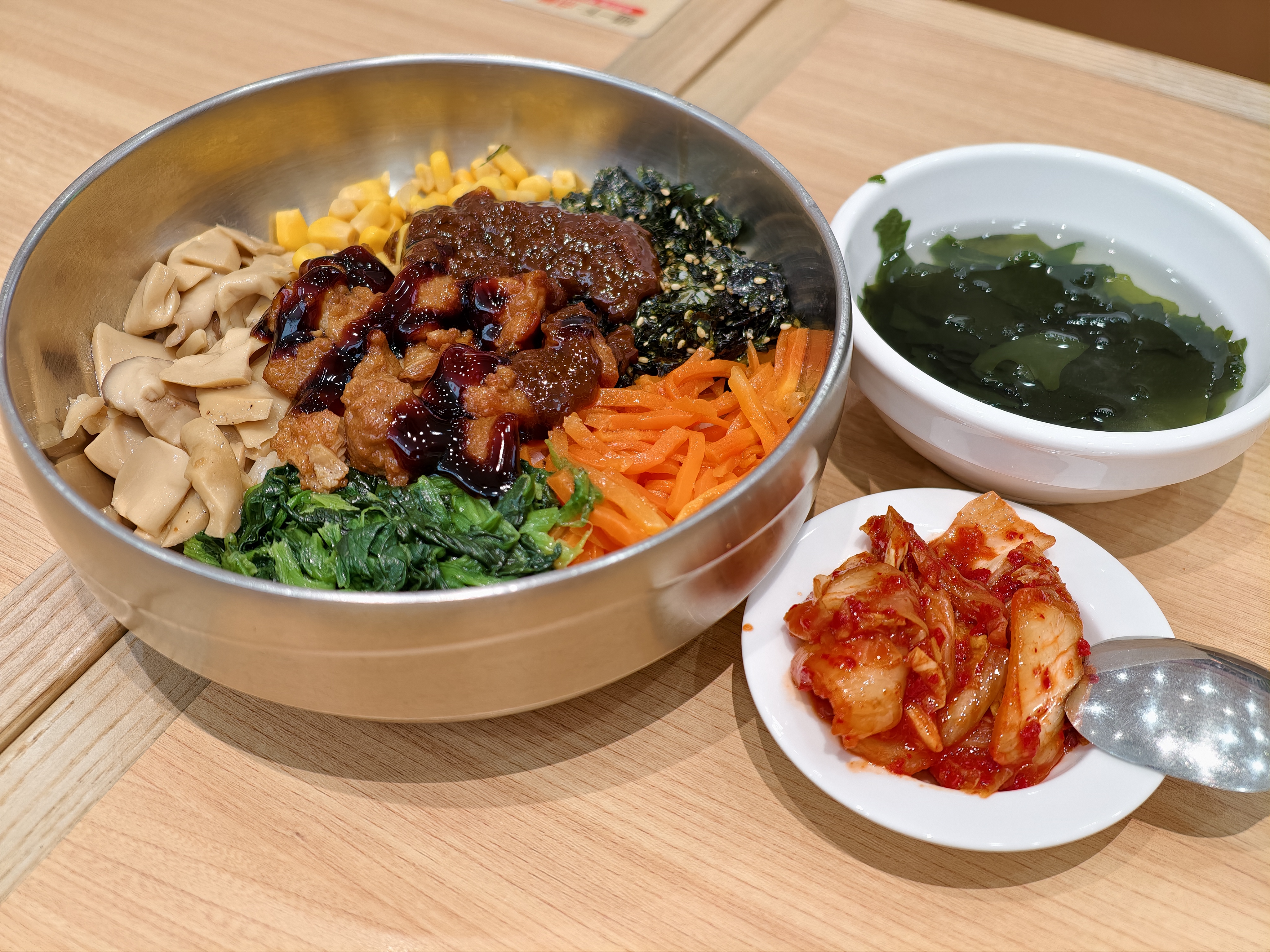 好看、好吃不贵的石锅饭,泡菜与海带汤是免费的。