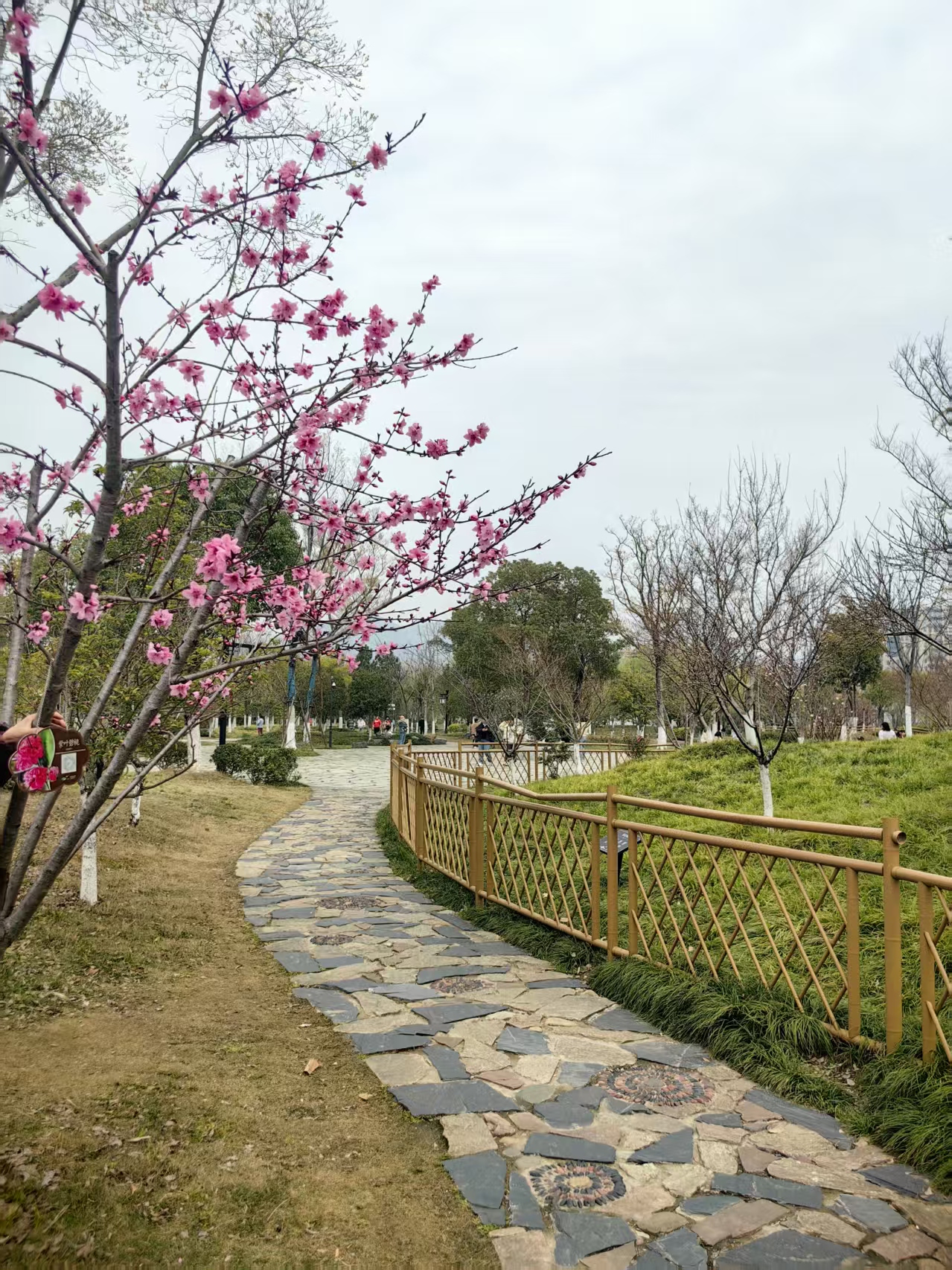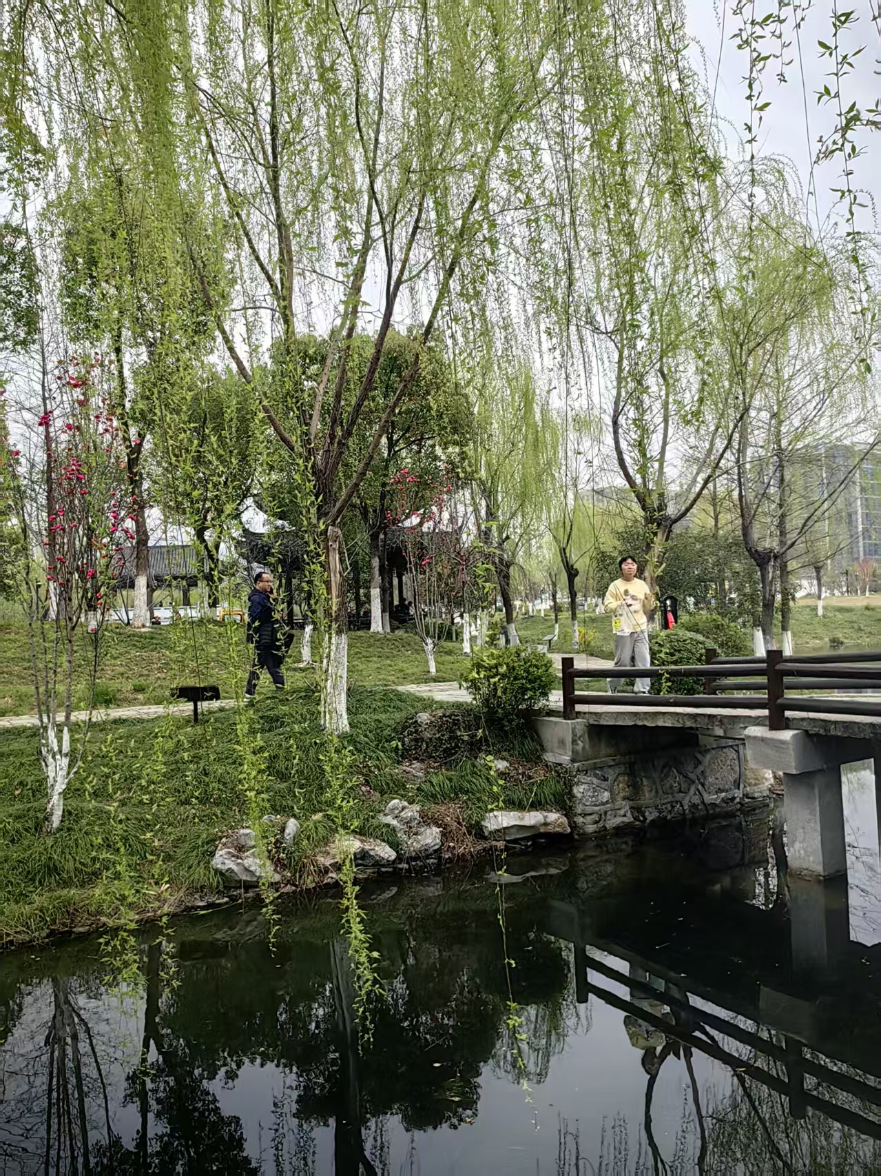 青玉案·丙午酣春过桃花湖得句 行来陌上寻芳意,柳堤外、莺声脆。一缕轻云浮碧水,棹横青岸,风扶罗袂,人在春烟里。 了然浑忘尘间事,折朵桃花压霜髻。蓦地回眸香满履,芙瑶筵宴,白鲦知味,争不琉璃醉。