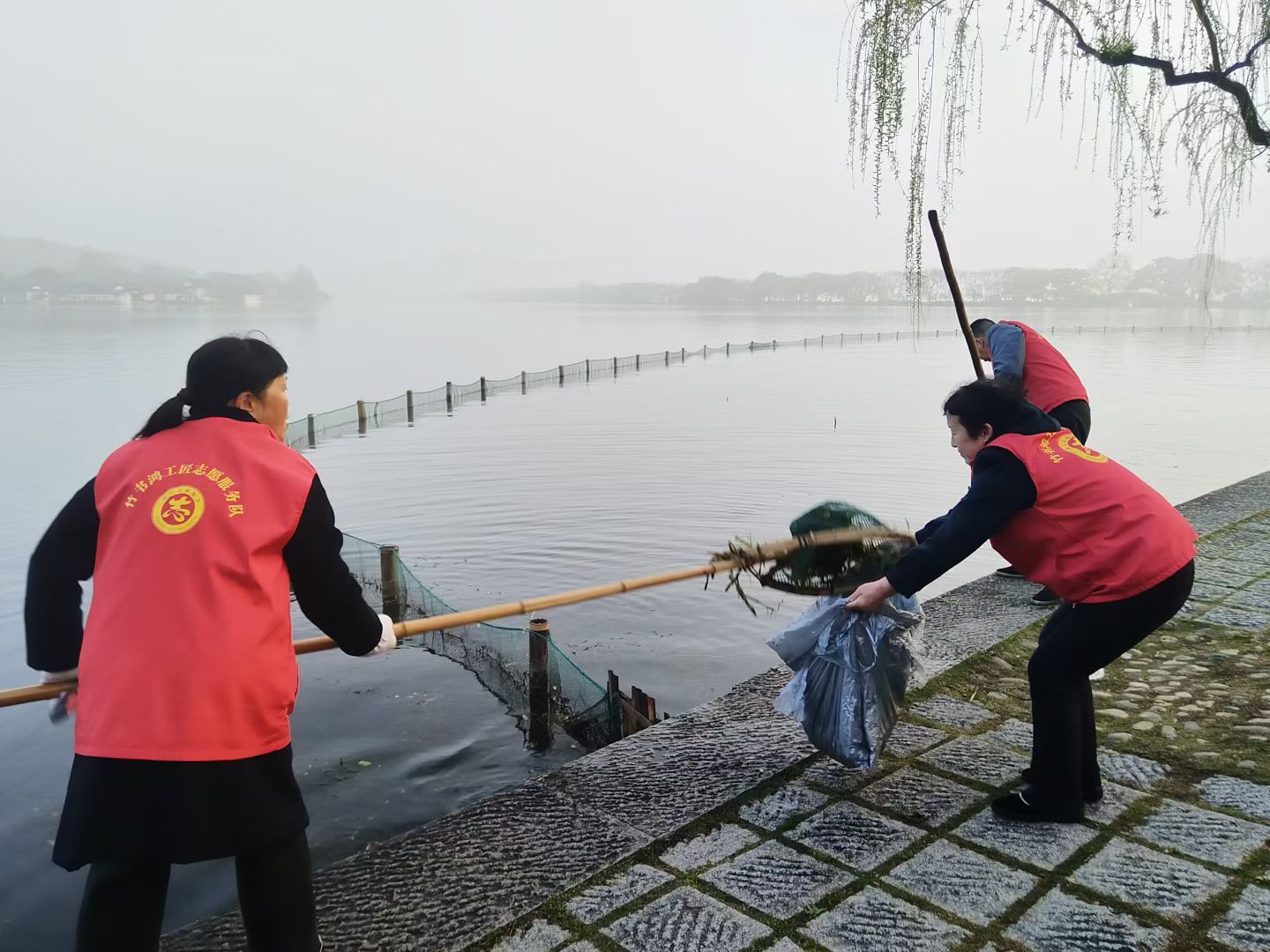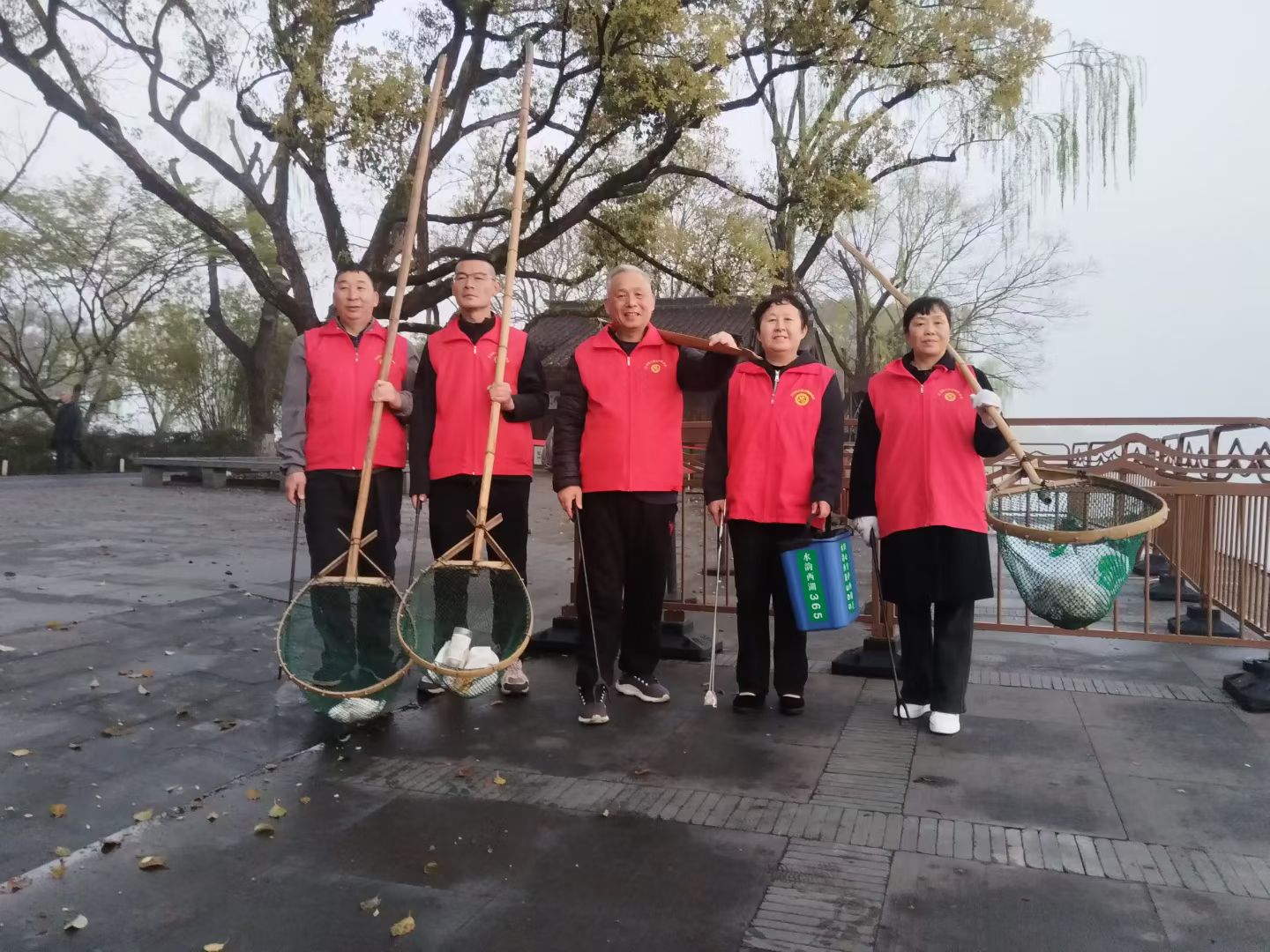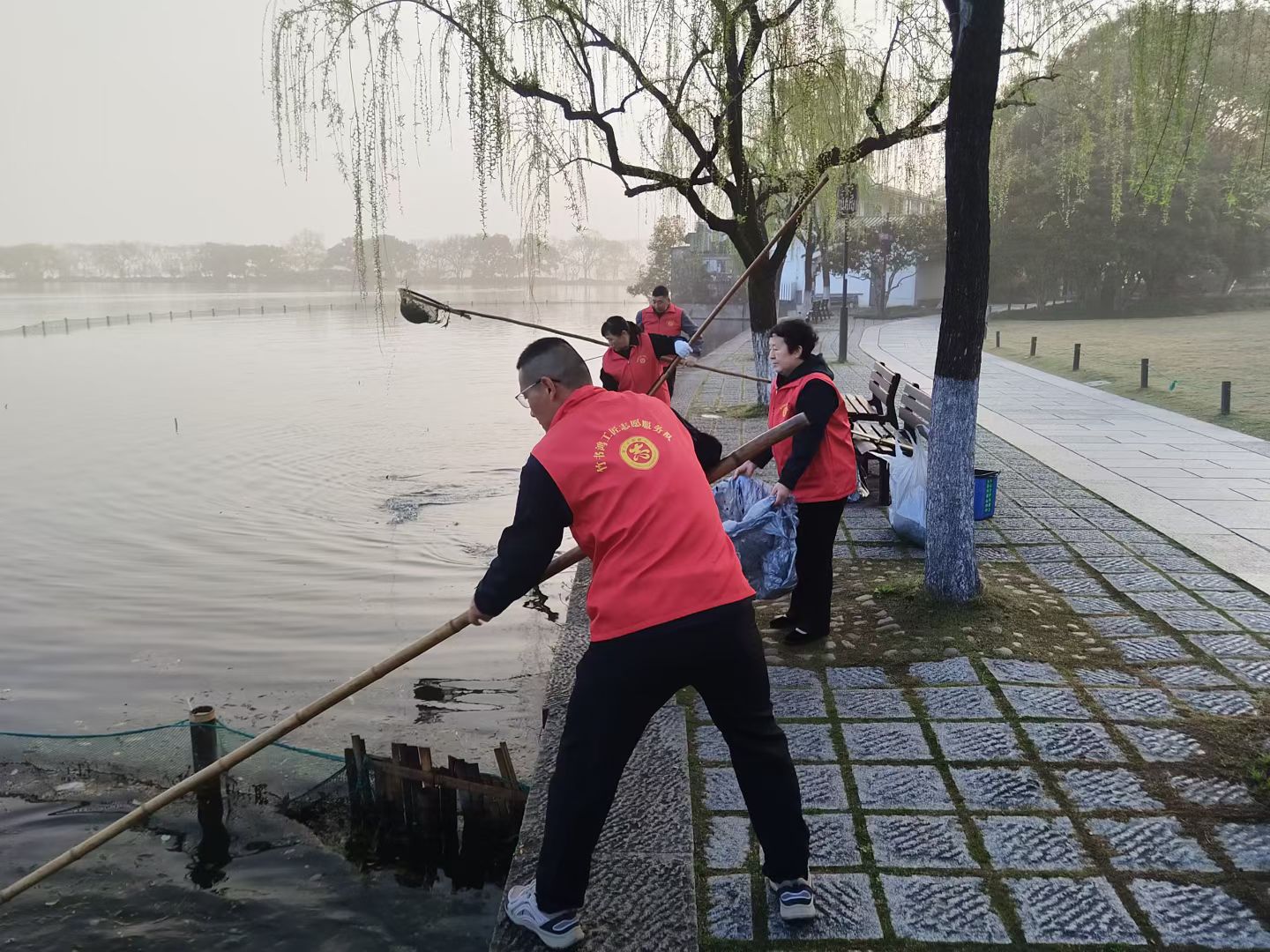 365日守杭城明珠,“水韵西湖365”第2103天,杭州惠州两湖联动第990天,每天清晨,竹书鸿工匠志愿服务队在西湖等你来做志愿