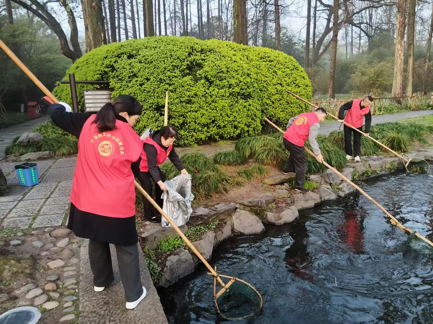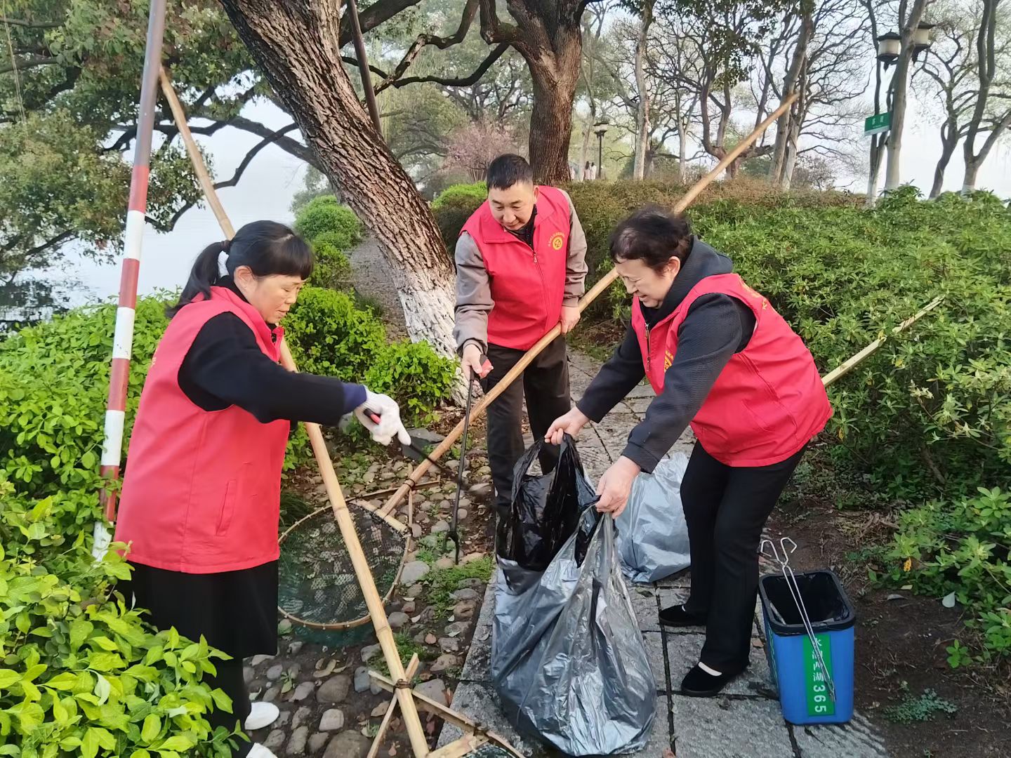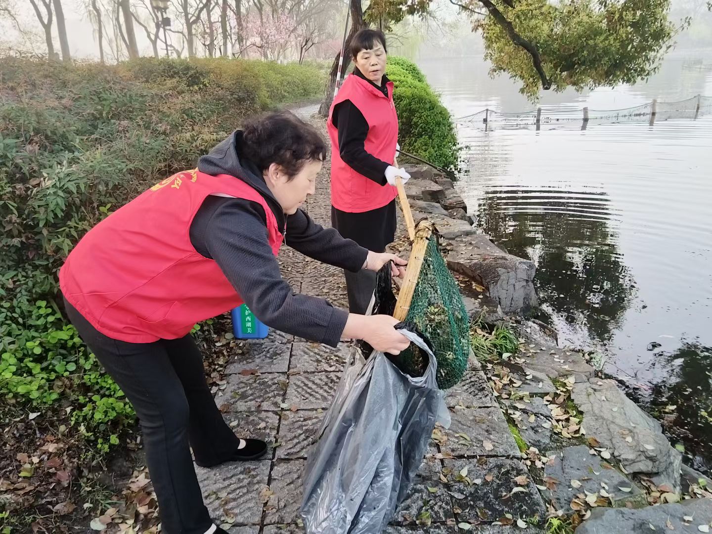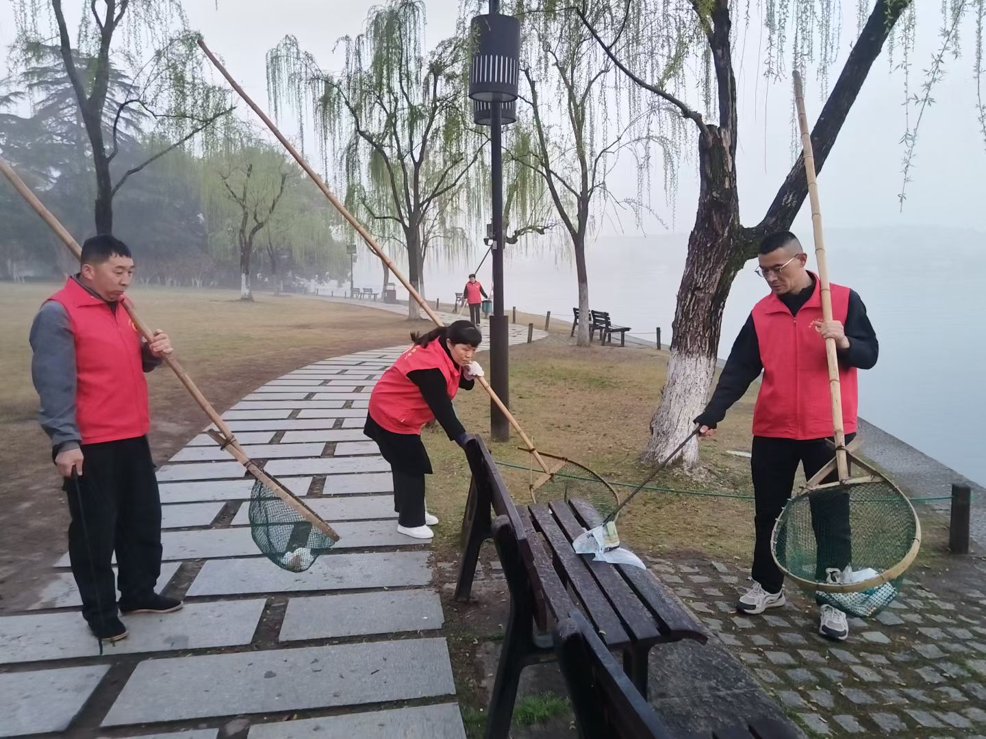 365日守杭城明珠,“水韵西湖365”第2103天,杭州惠州两湖联动第990天,每天清晨,竹书鸿工匠志愿服务队在西湖等你来做志愿