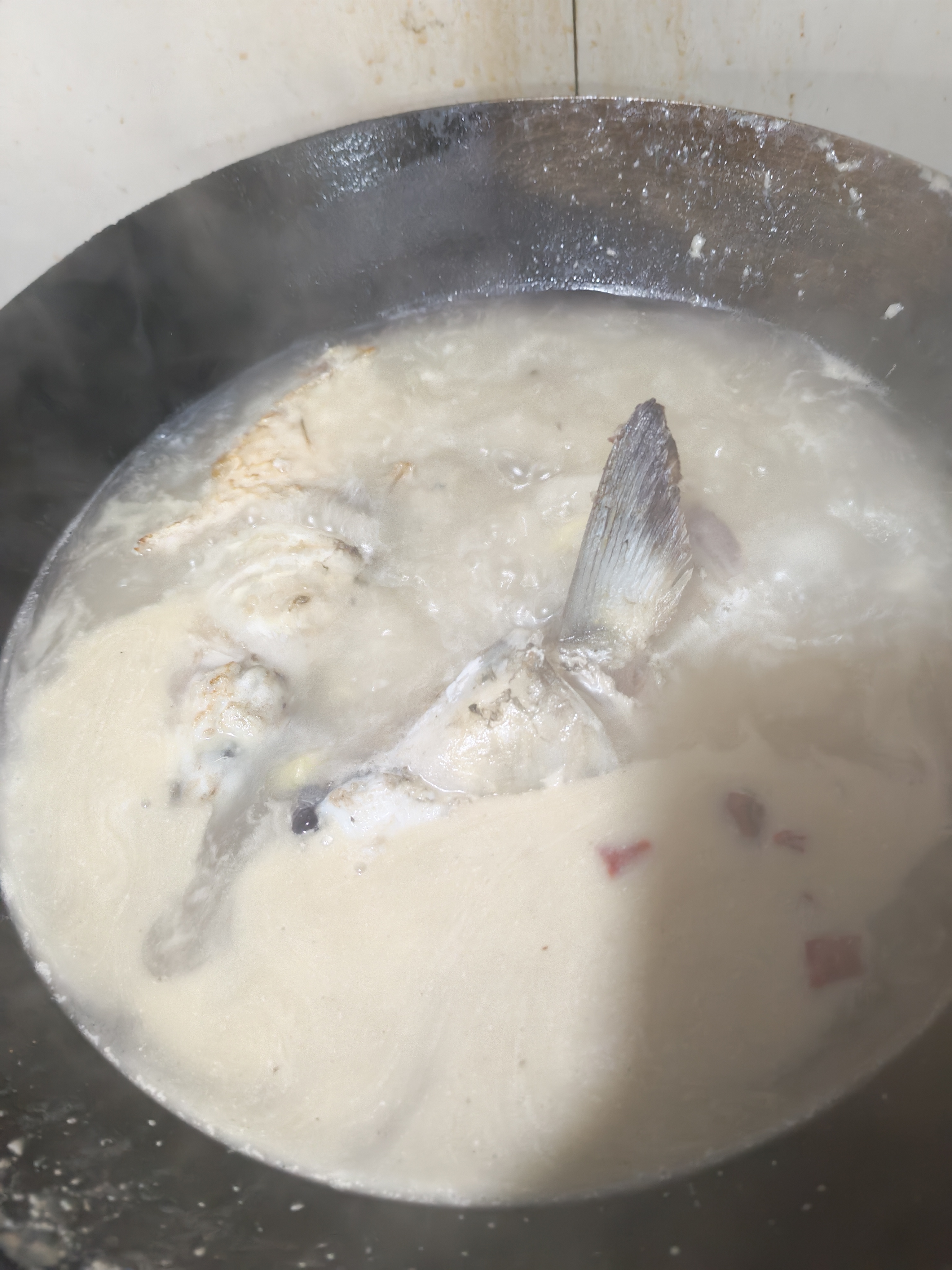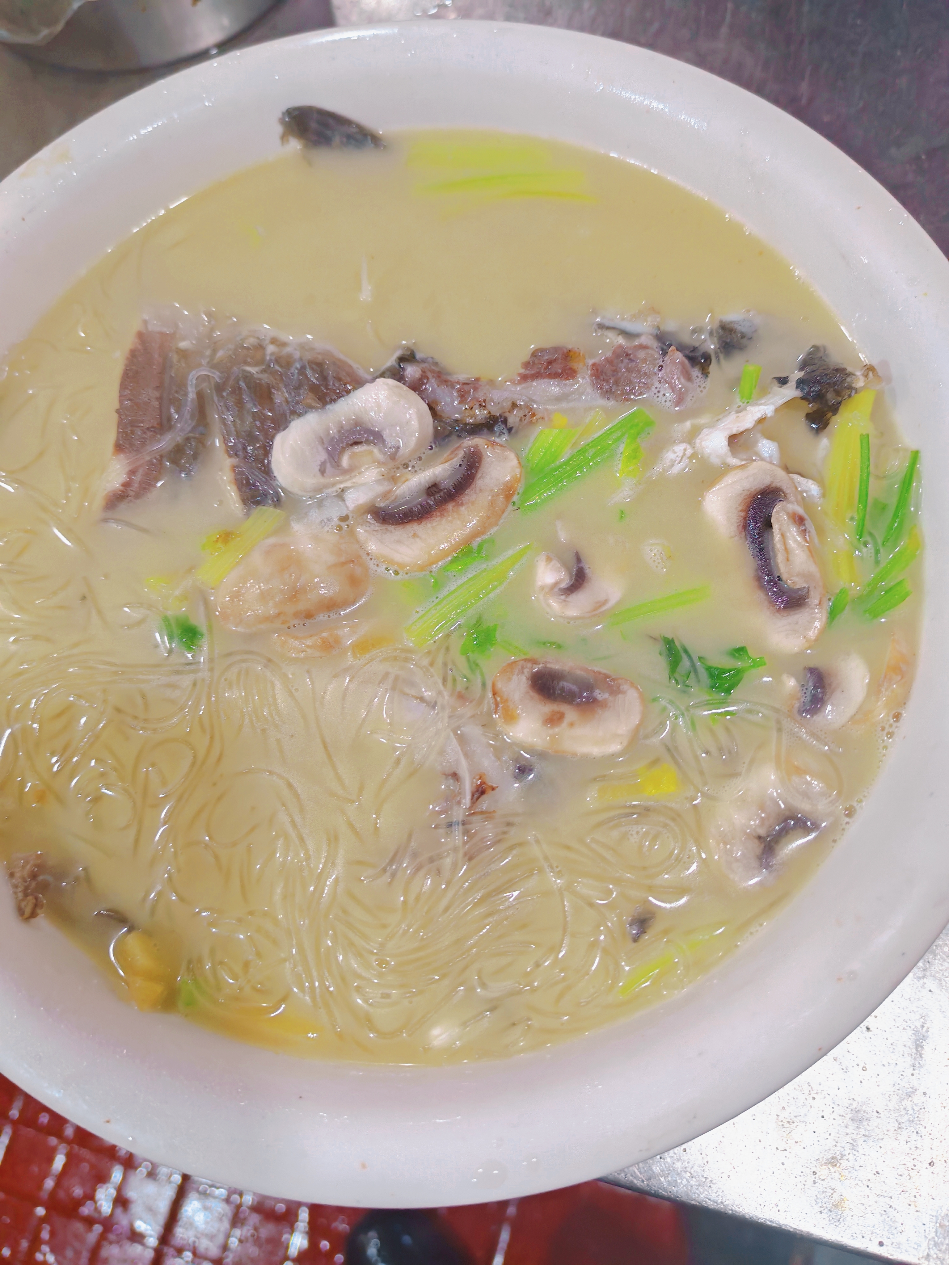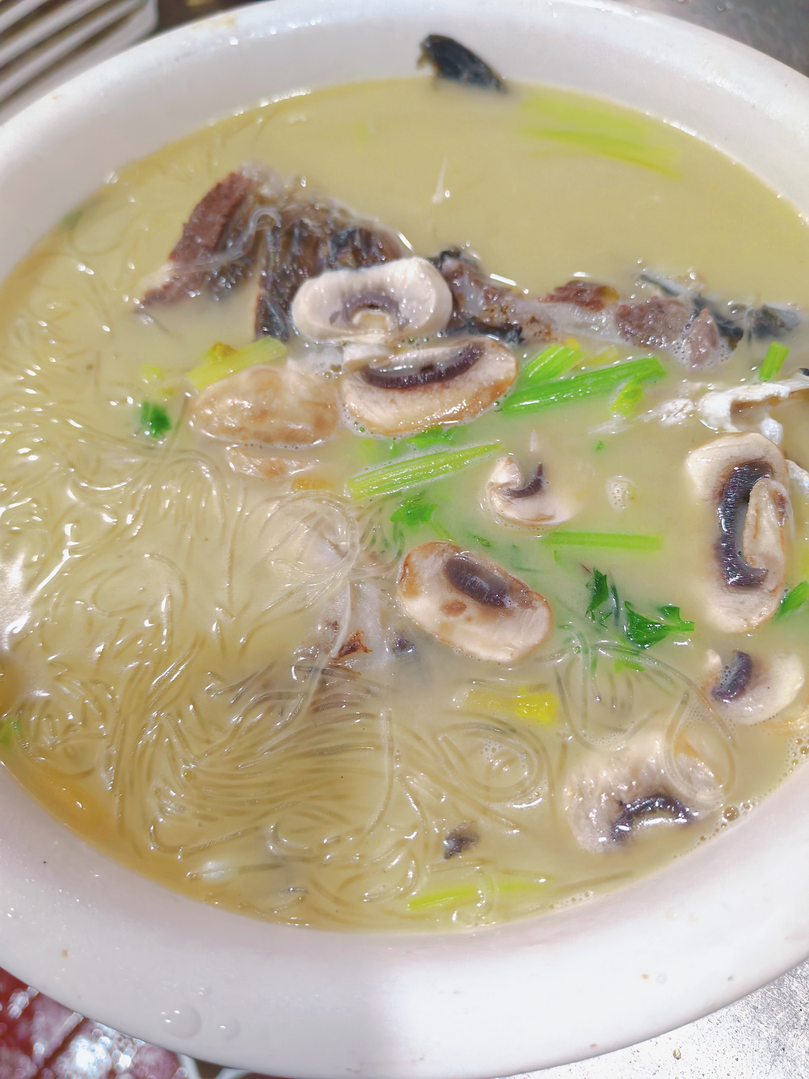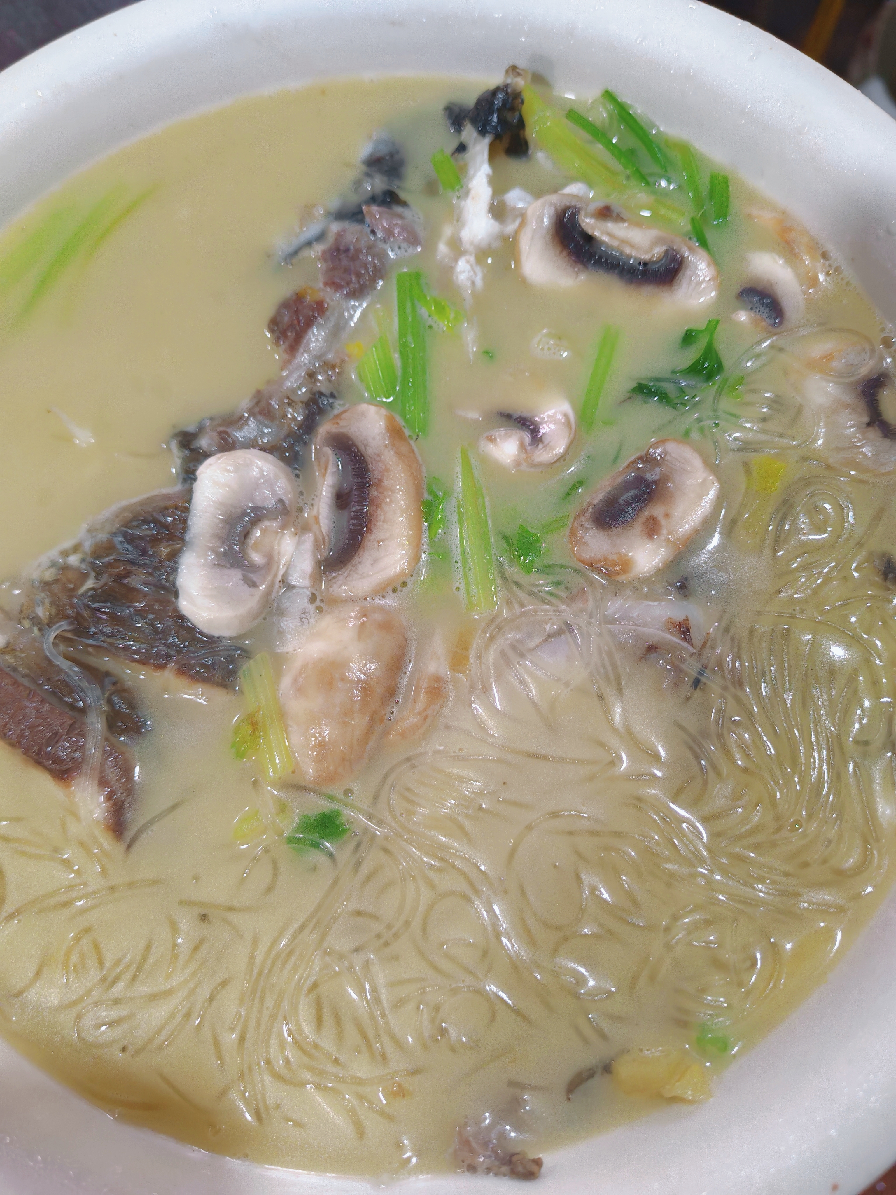 乌鲻粉丝芹菜汤 别再喝寡淡的清汤了!这碗乌鲻粉丝汤才是鲜爽天花板!煎得焦香的乌鲻鱼,大火煮出奶白浓汤,粉丝软糯挂汁,口蘑鲜脆,芹菜提香,无多余调料,全靠鱼本身的鲜气撑场,一口汤一口肉,鲜醇入味,喝完整个人都舒坦,快手零失败,厨房小白也能轻松拿捏! 准备食材 主料:新鲜乌鲻1条、粉丝1把、口蘑5-6朵、芹菜适量、生姜3-4片 调料:料酒1勺、盐适量、食用油少许 制作步骤 1. 处理食材 乌鲻去除内脏、鱼鳃,清洗干净,用厨房纸巾擦干鱼身表面水分(避免煎鱼时溅油);粉丝用温水泡软备用;口蘑洗净切厚片,芹菜洗净切段,生姜切片备用。 2. 煎制乌鲻鱼 锅中倒入少许食用油,油热后放入姜片爆香,接着放入擦干水分的乌鲻鱼,开中小火慢煎,煎至一面金黄定型后再翻面,避免鱼身破碎,将两面都煎至焦香金黄,煎好后沿锅边淋入1勺料酒,去腥增香。 3. 煮出奶白浓汤 立刻往锅中倒入足量开水,水量要没过鱼身,开大火煮沸,持续大火煮5-8分钟,此时鱼汤会快速变得奶白浓稠(关键:一定要加开水,大火煮才能出白汤)。 4. 加入配菜炖煮 放入泡软的粉丝和切好的口蘑片,转中火继续煮3分钟,让粉丝和口蘑充分吸收鱼汤的鲜味,煮至口蘑变软、粉丝透明。 5. 调味出锅 最后放入芹菜段,加适量盐调味,搅拌均匀,再煮1分钟,芹菜断生即可关火,一碗鲜醇奶白的乌鲻粉丝汤就做好了。