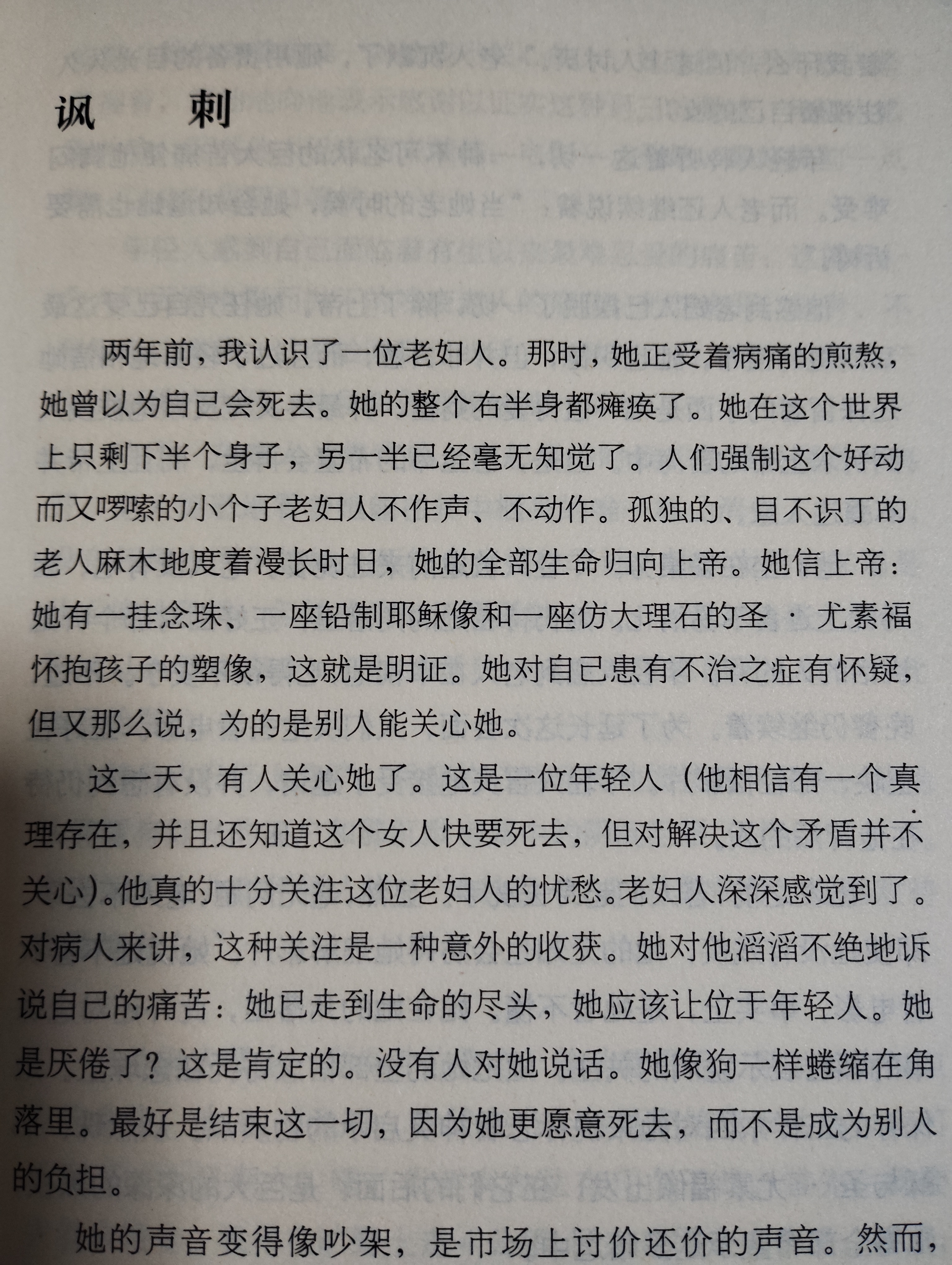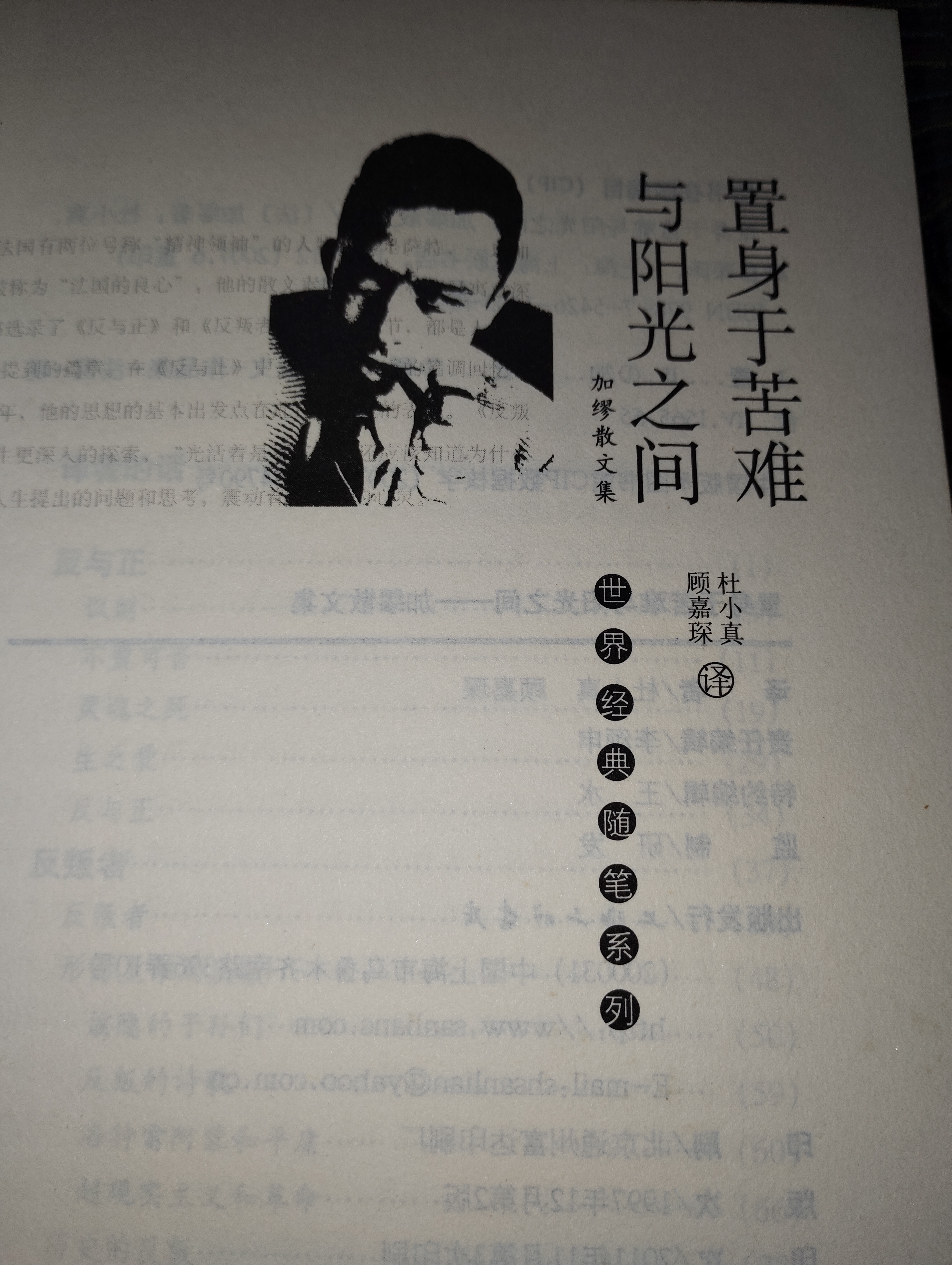 十年前买的纸质书,当时吸引我的是第一段文字,以及加缪叼着烟侧脸微笑着看人的模样。 和那些剧情小说的扣人心弦不一样,也和那些文艺优美想象力充沛的浪漫小说也不一样,他的叙述言语简洁,但整体的调调始终是一致的—— 偶尔的希望成了点缀,生命没有什么值得去期待,连悲伤也没有力气。 我一直以为,生活可能颓废可能毫无意义,但小说总应该表现出积极美好有意义的一面。 直到后来,人到中年,经历了很多挫折,也看了更多的书,才明白——写作是思想的释放。 相对于那些心灵鸡汤或励志的口号金句来说,写出沮丧和荒谬的世界,是作家的慷慨和奉献。