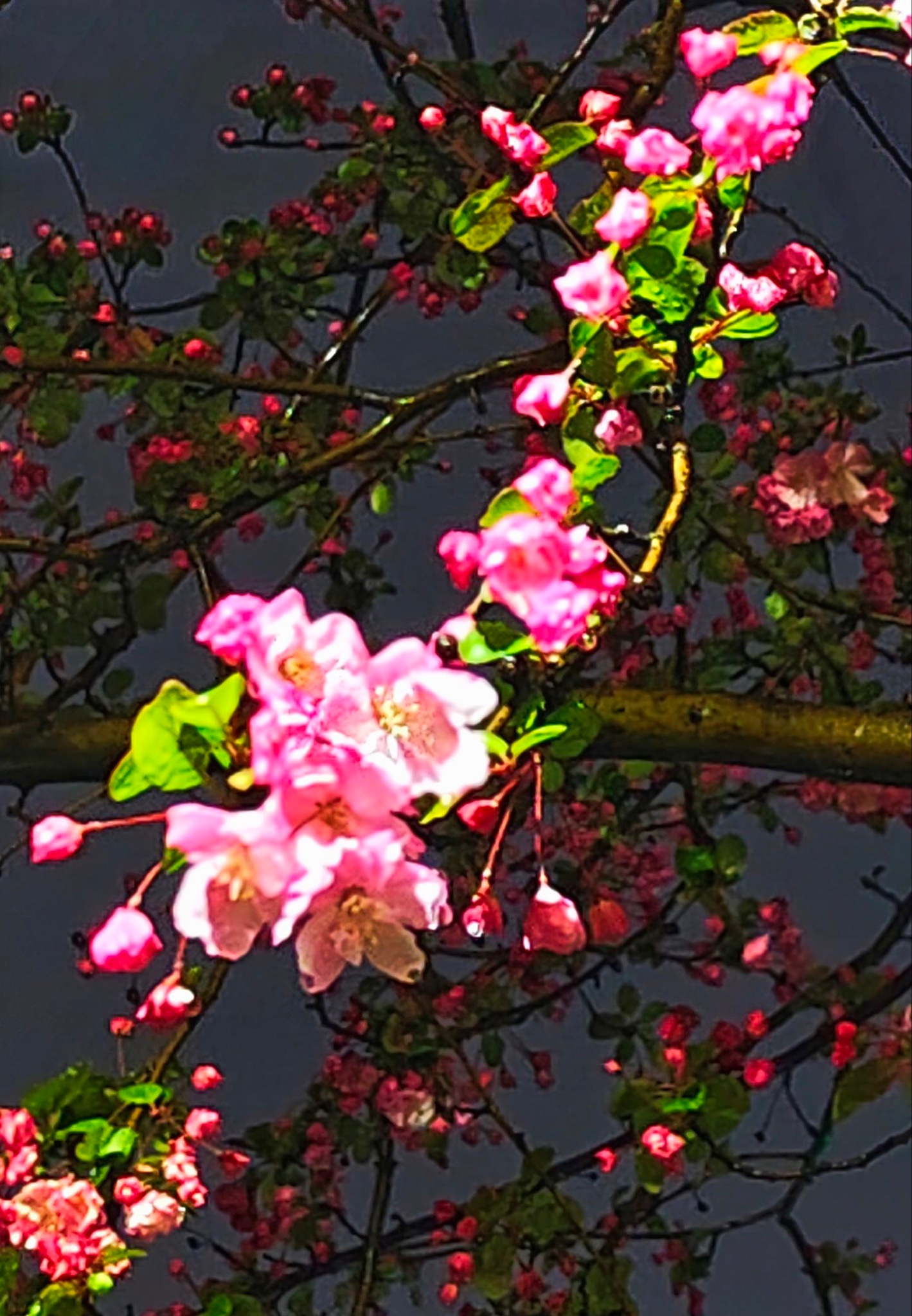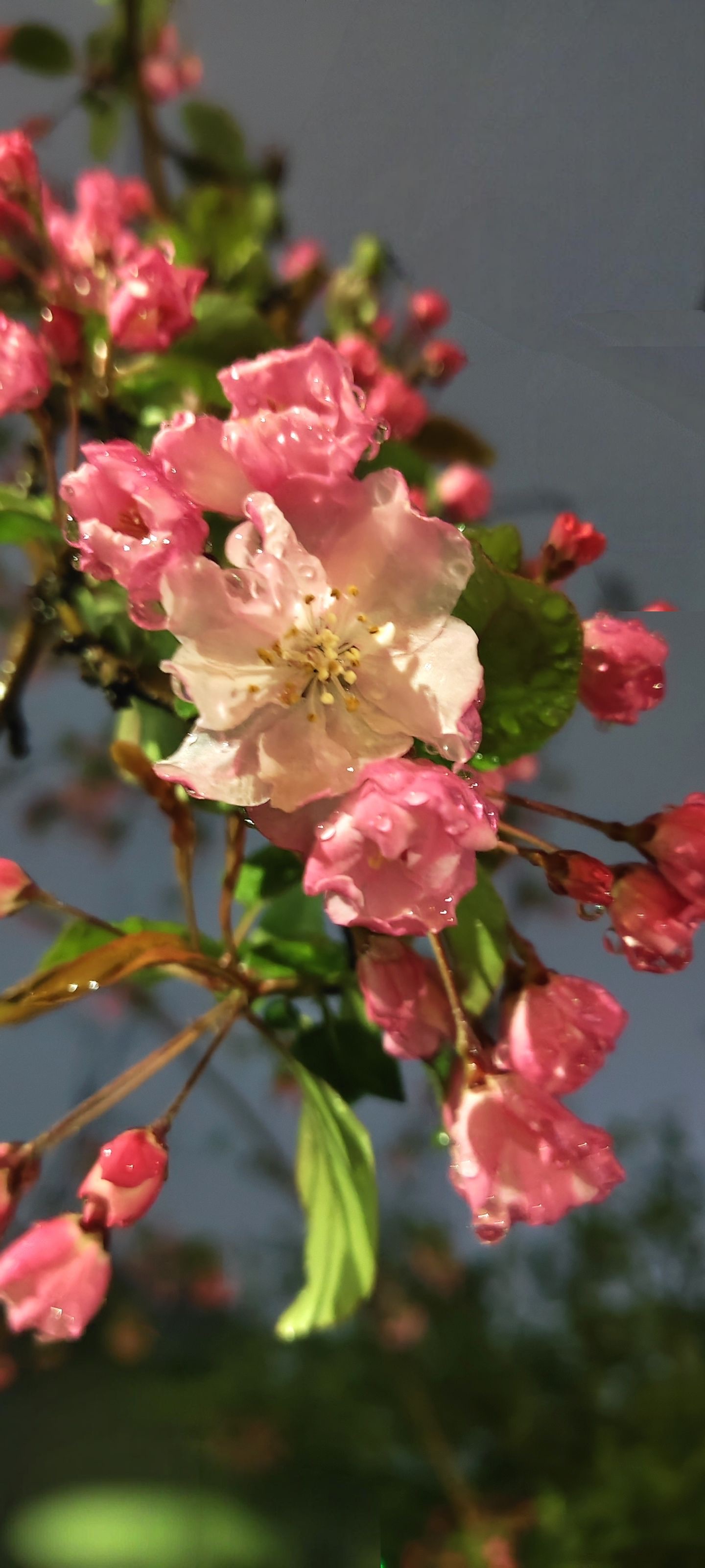 雨霁初晴,粉瓣噙珠,剔透如泪。 光斜斜穿过新叶,在湿润花瓣上淌出柔金脉络。 俯身轻触——那颤巍巍的蕊,那怯生生的嫩芽, 都在说:春天不是路过,是驻足、凝望、屏息。 快门未按,心已定格。
