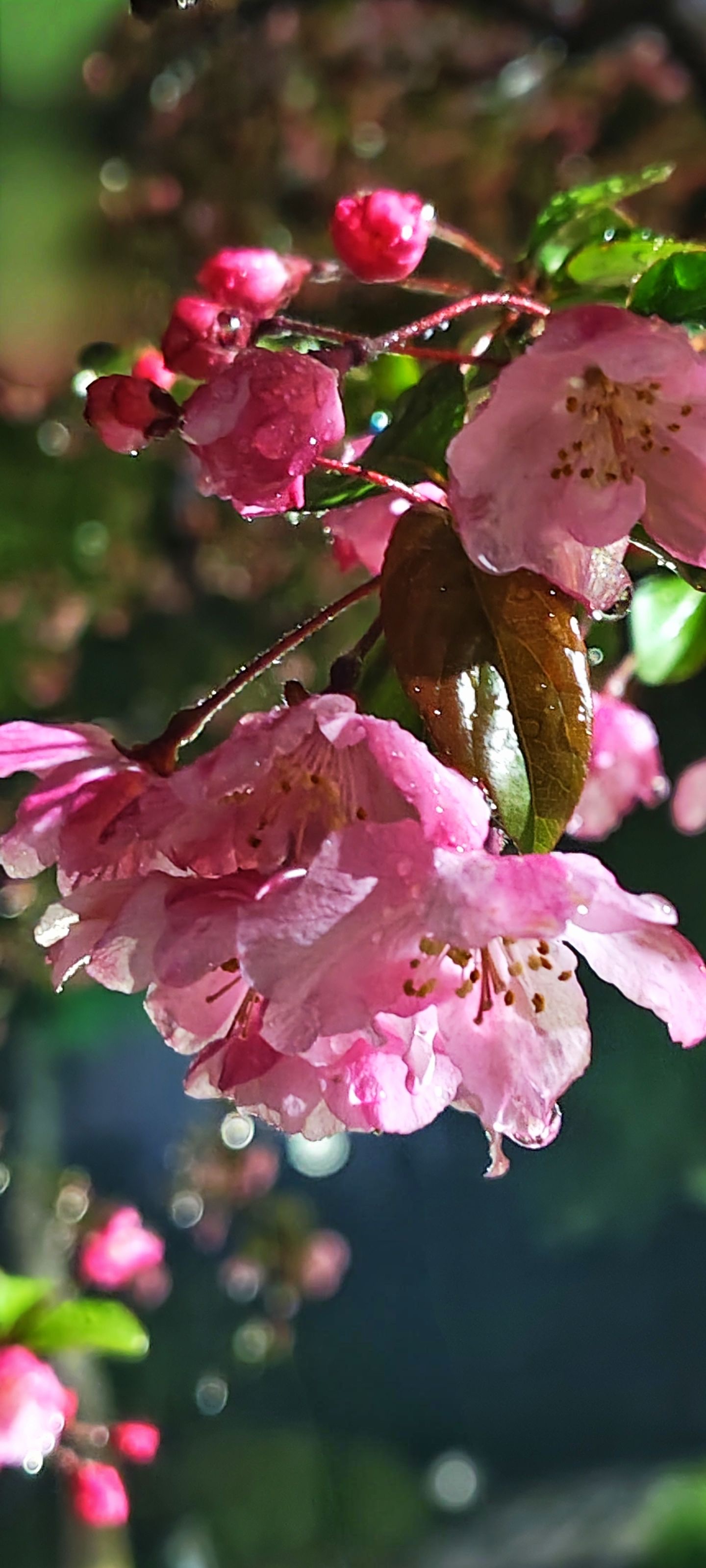 雨霁春浓,粉瓣承光,晶莹剔透;新叶滴翠,生机盎然。水珠轻悬于湿润花瓣边缘,映照天光云影,勾勒出自然最精微的纹理。枝头盛放,不争不抢,却将春日气息悄然铺展于园林一隅。此际光影流转,虚实相生,是生态摄影不可多得的静谧诗篇。