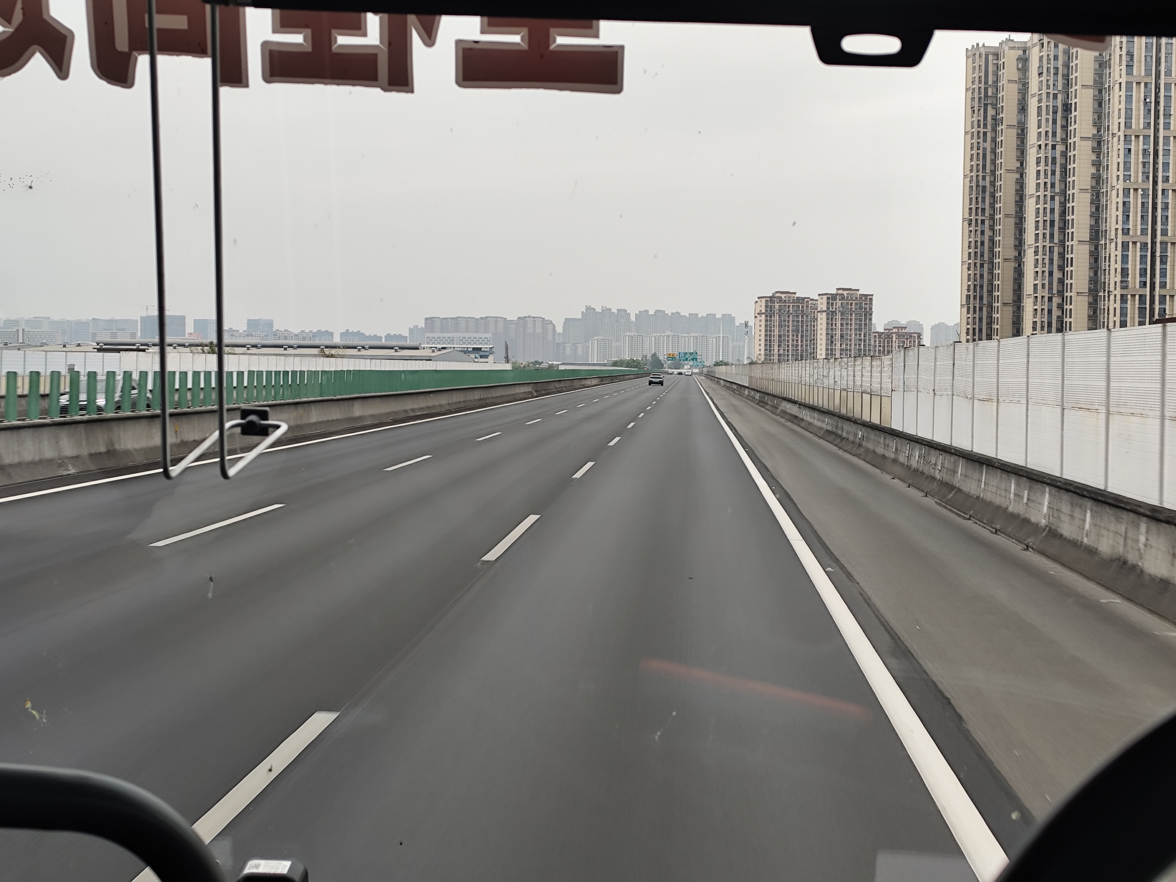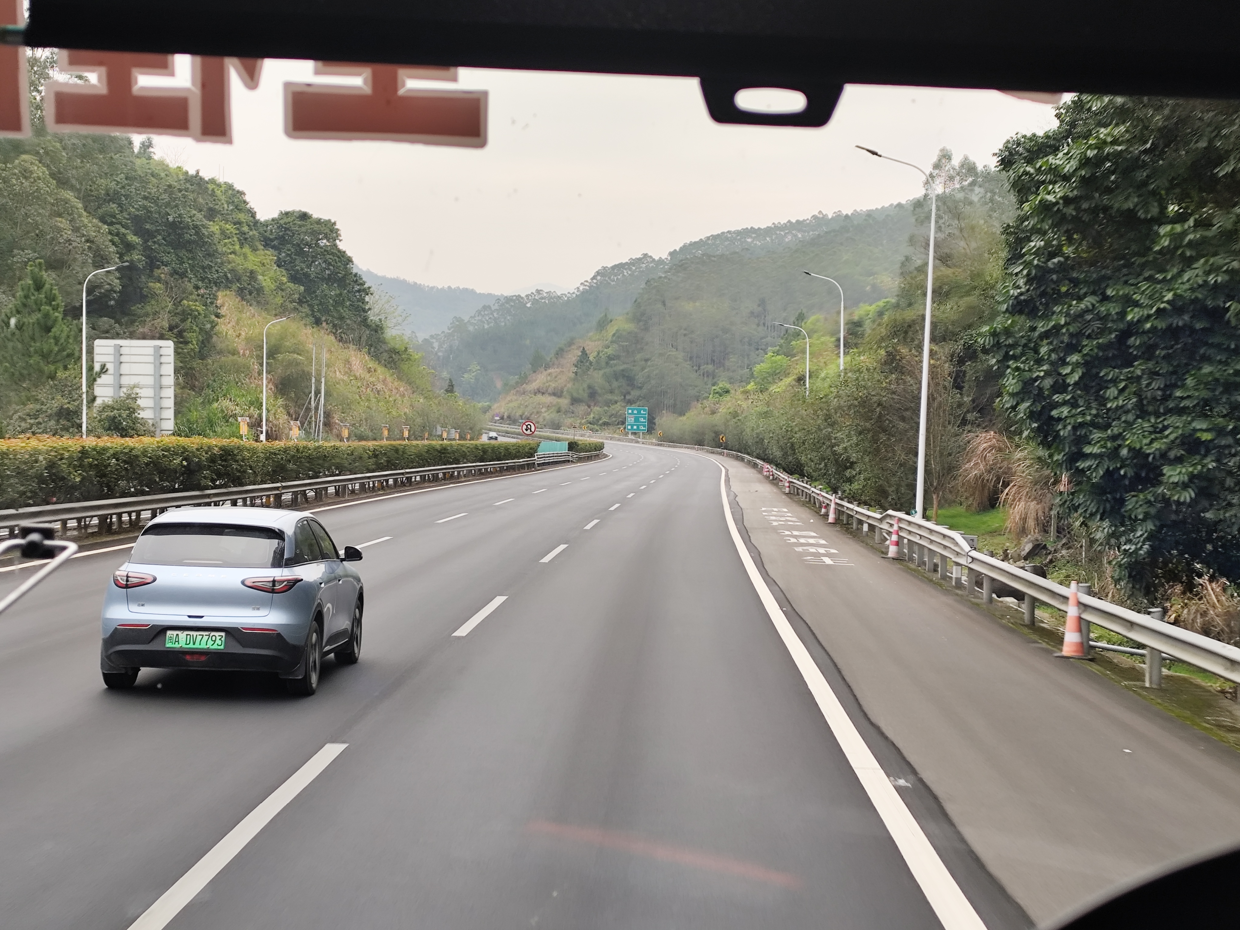 阴天的高速上,车流与绿意交织,后视镜里是山、城、桥的日常切片~