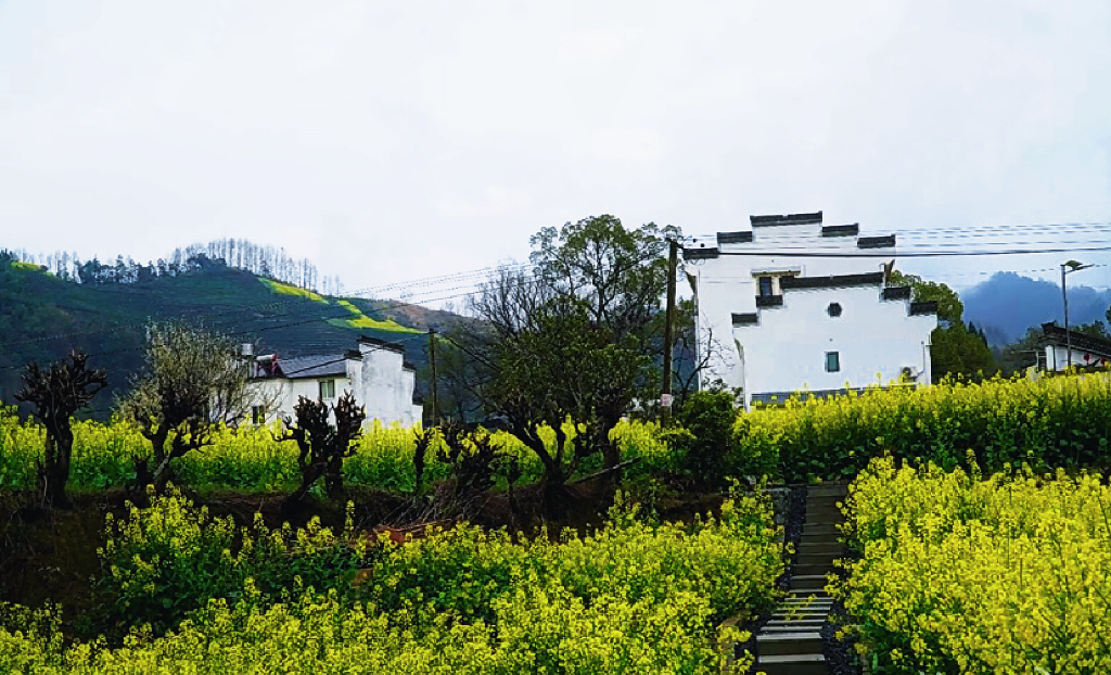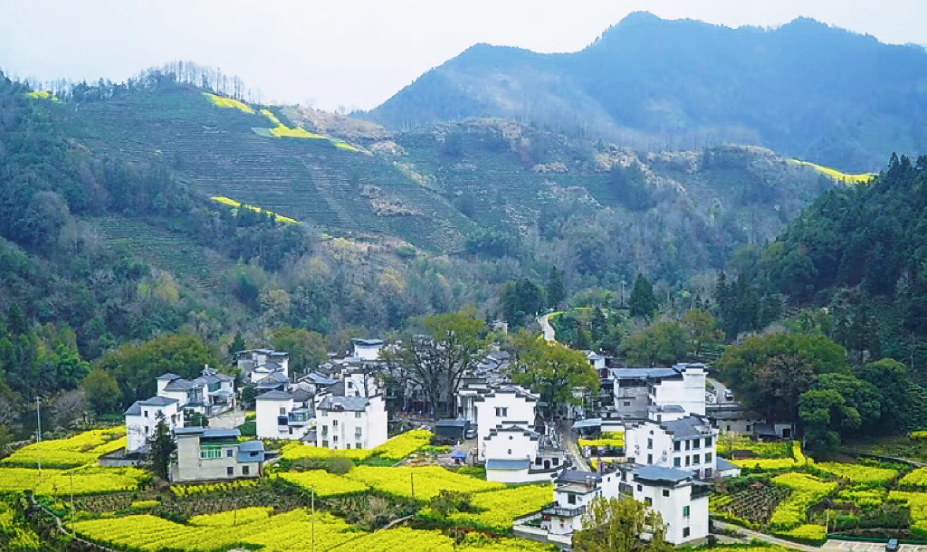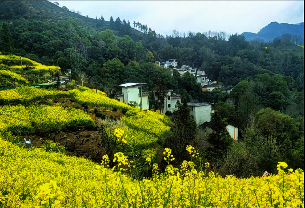 春日徽州,白墙黛瓦的村落枕着梯田花海,菜花黄、桃枝粉,山径蜿蜒,烟火与春景相融,岁月清宁😊