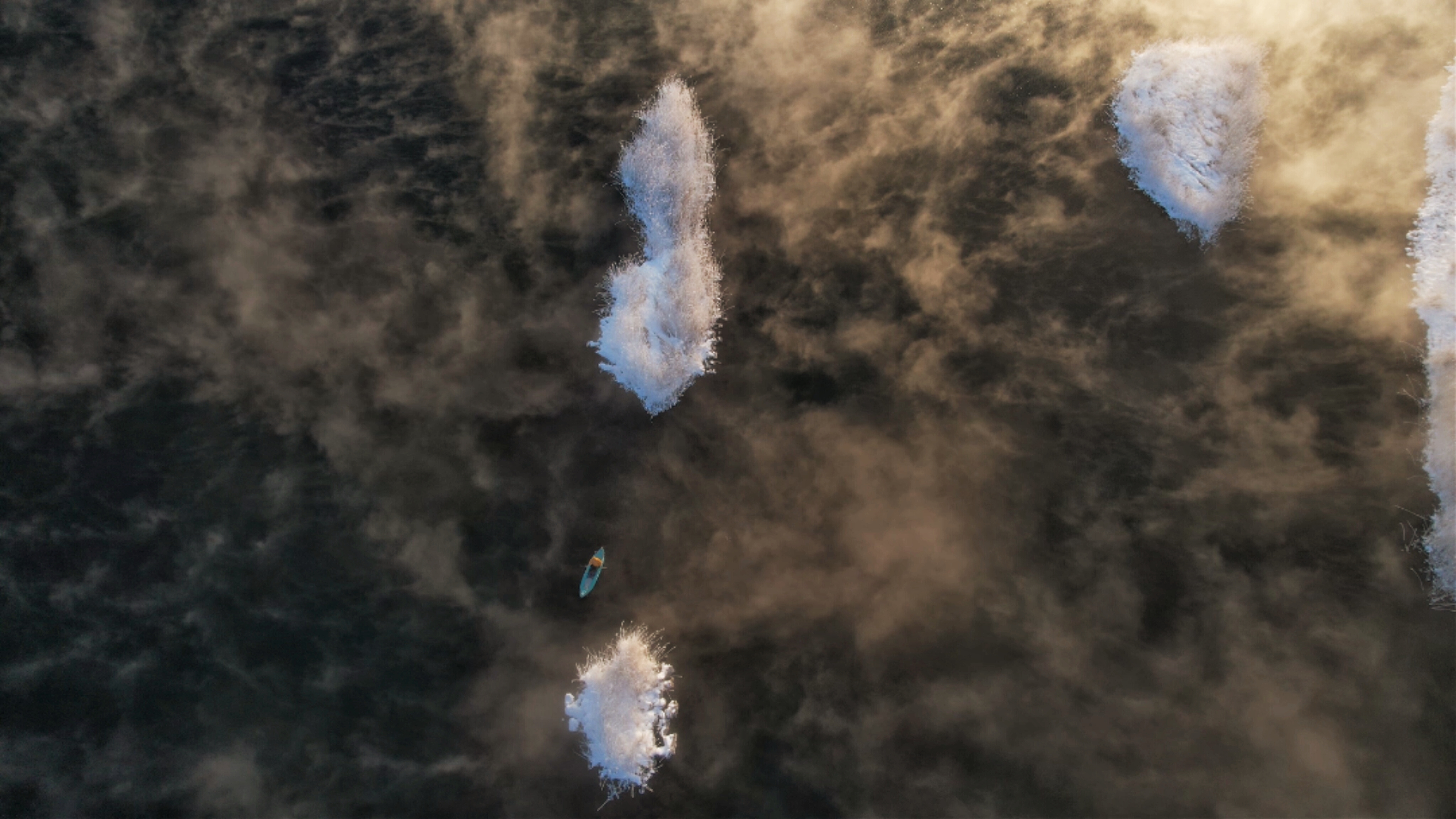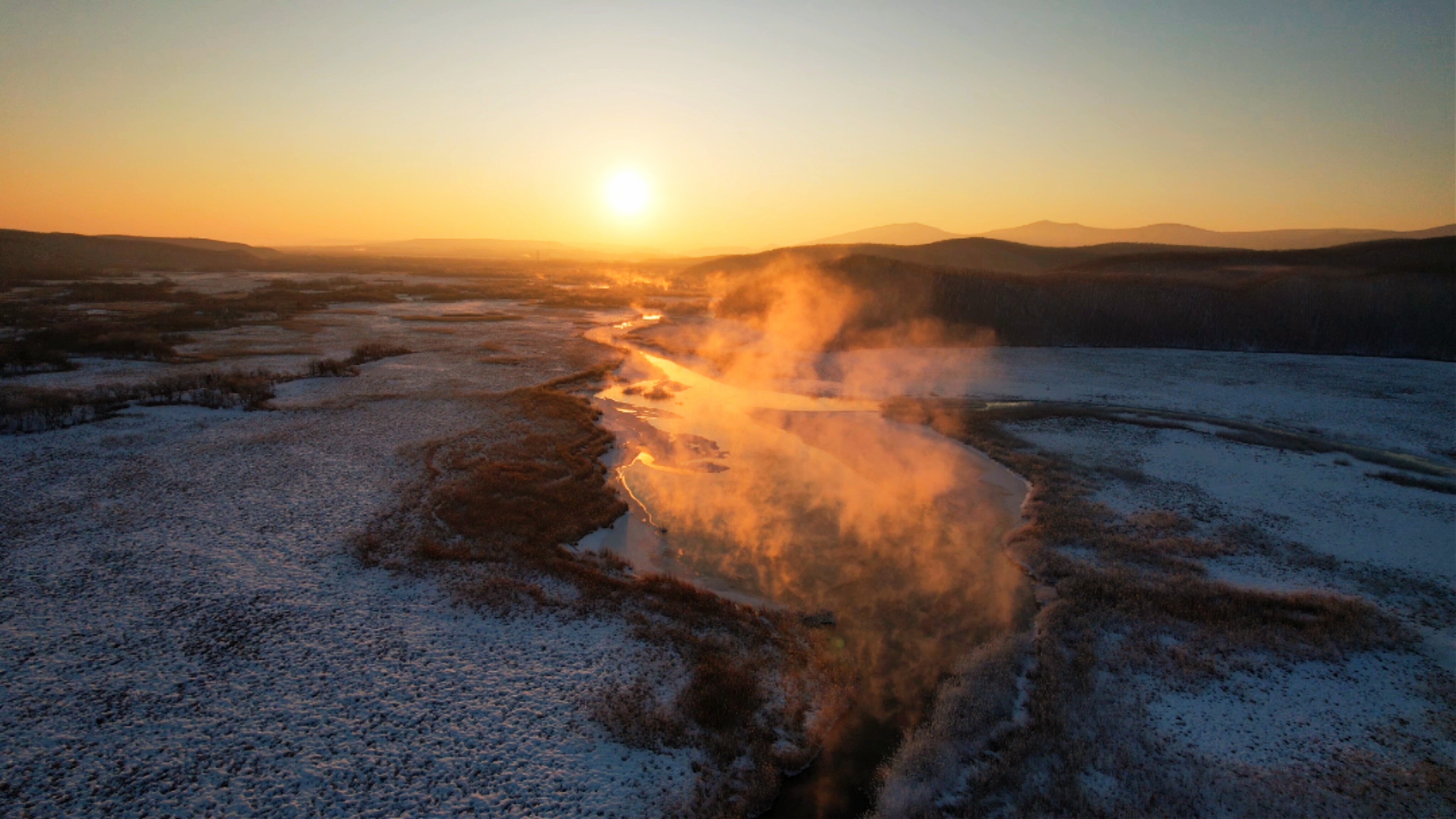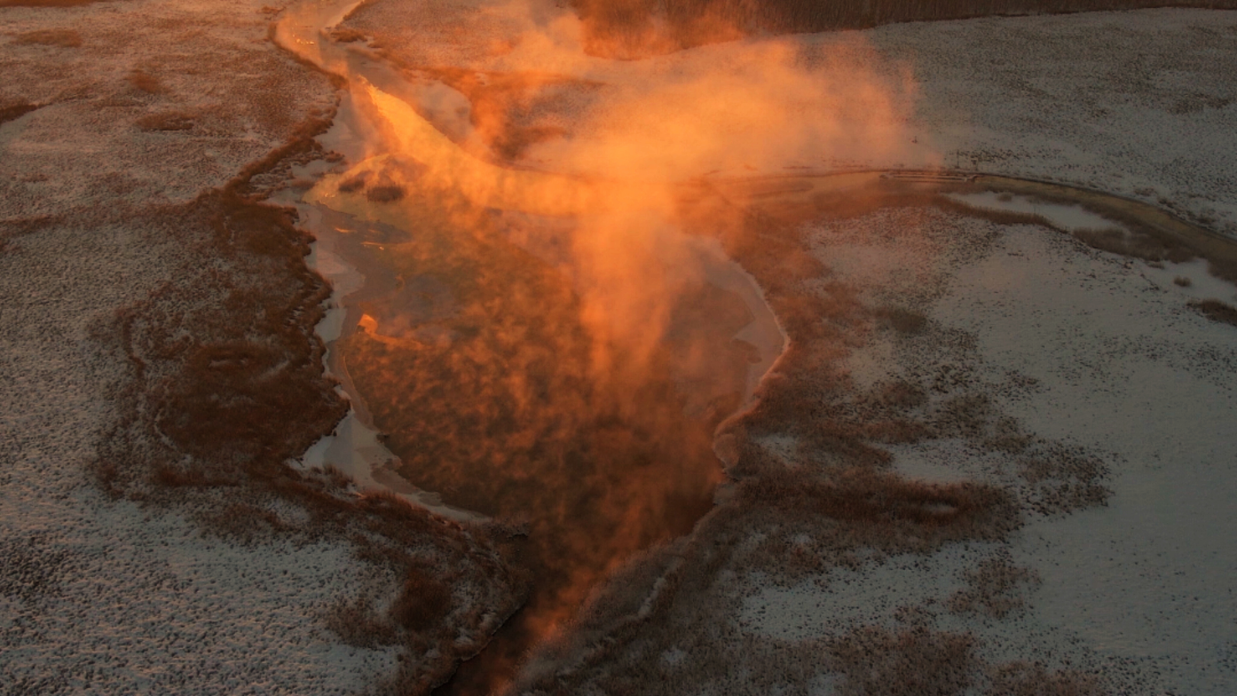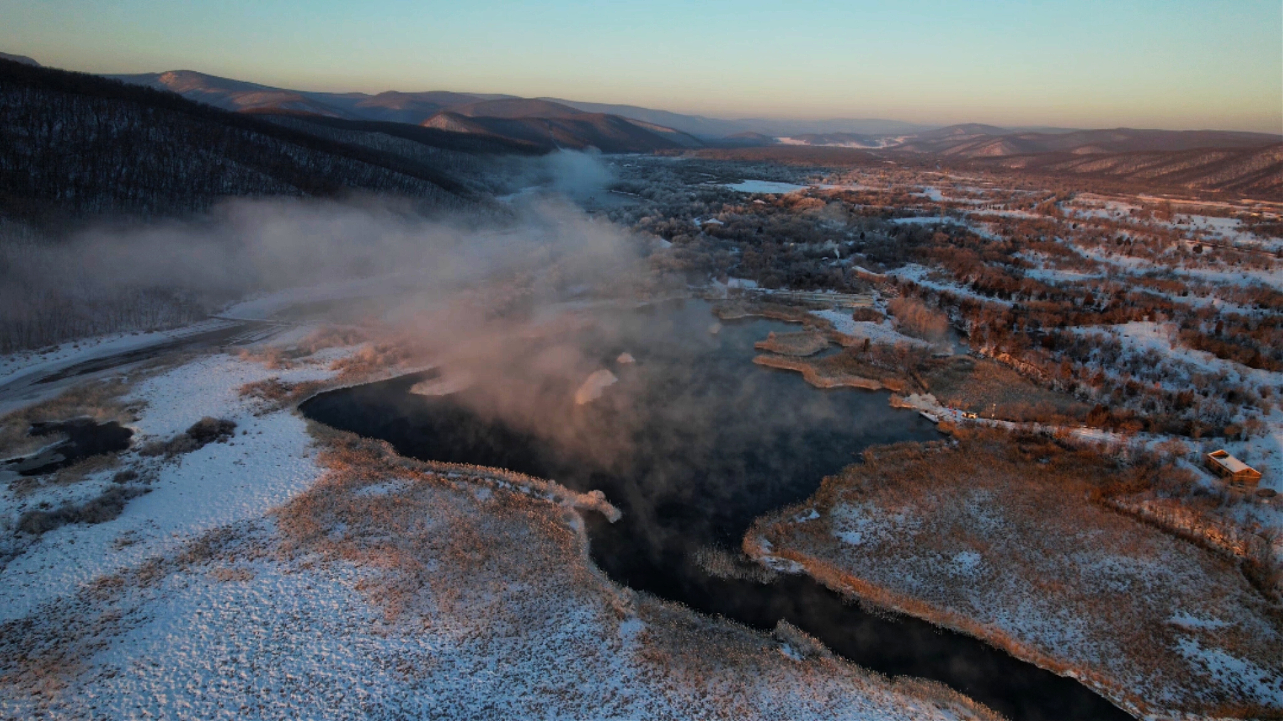 晨光漫过牡丹江的晨,雾凇凝作玉树琼枝,孤舟轻泊在不冻的钻心湖,一湖金红与雪白,静成人间绝色。