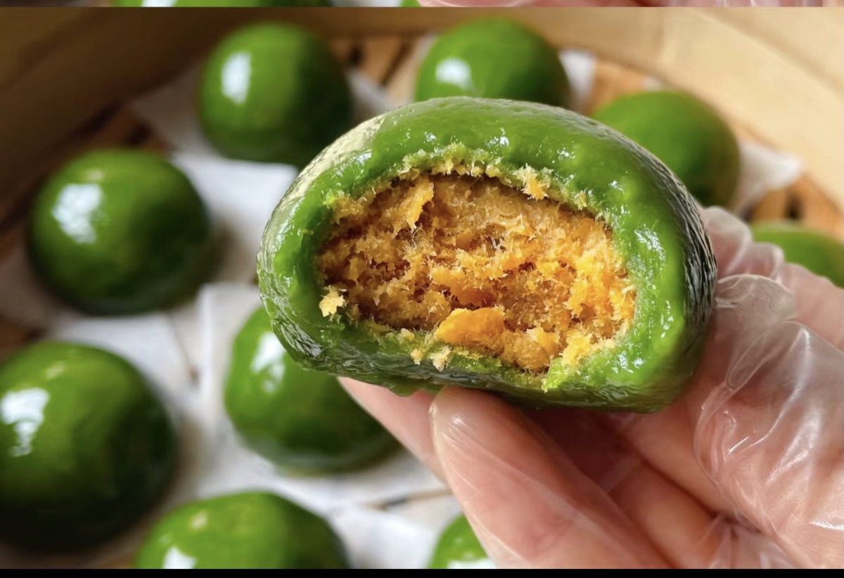 蛋黄肉松青团,咸中带一丝甜