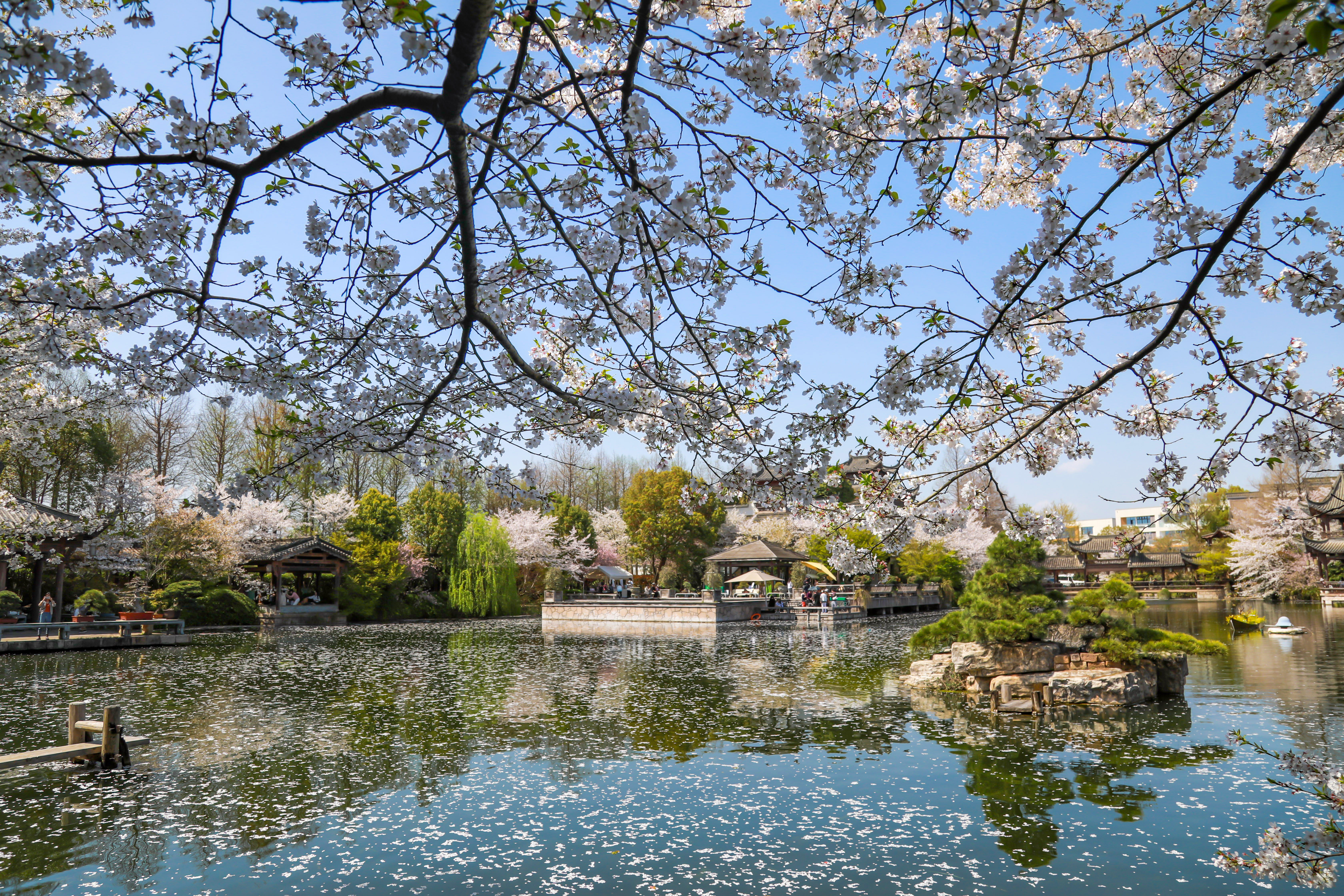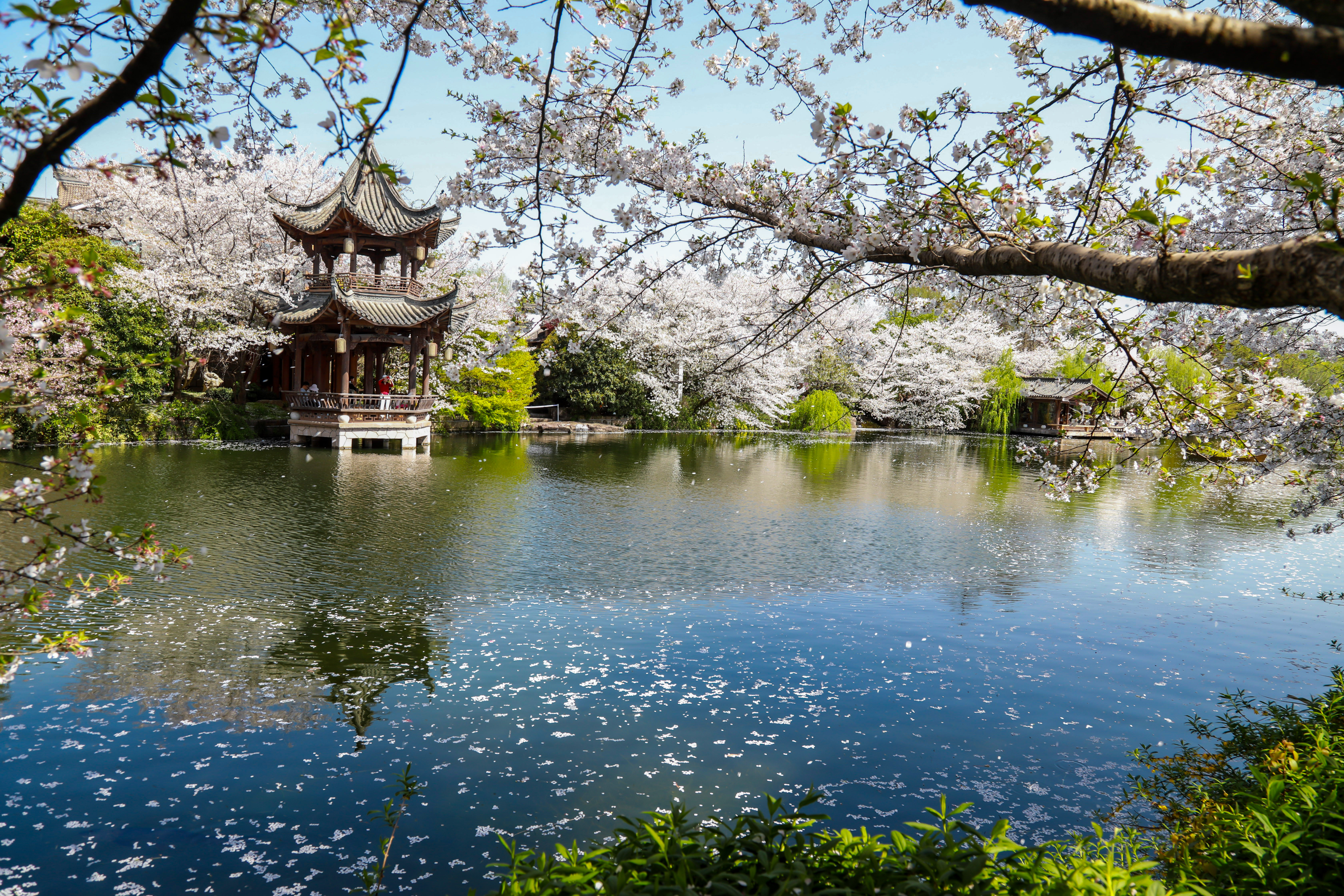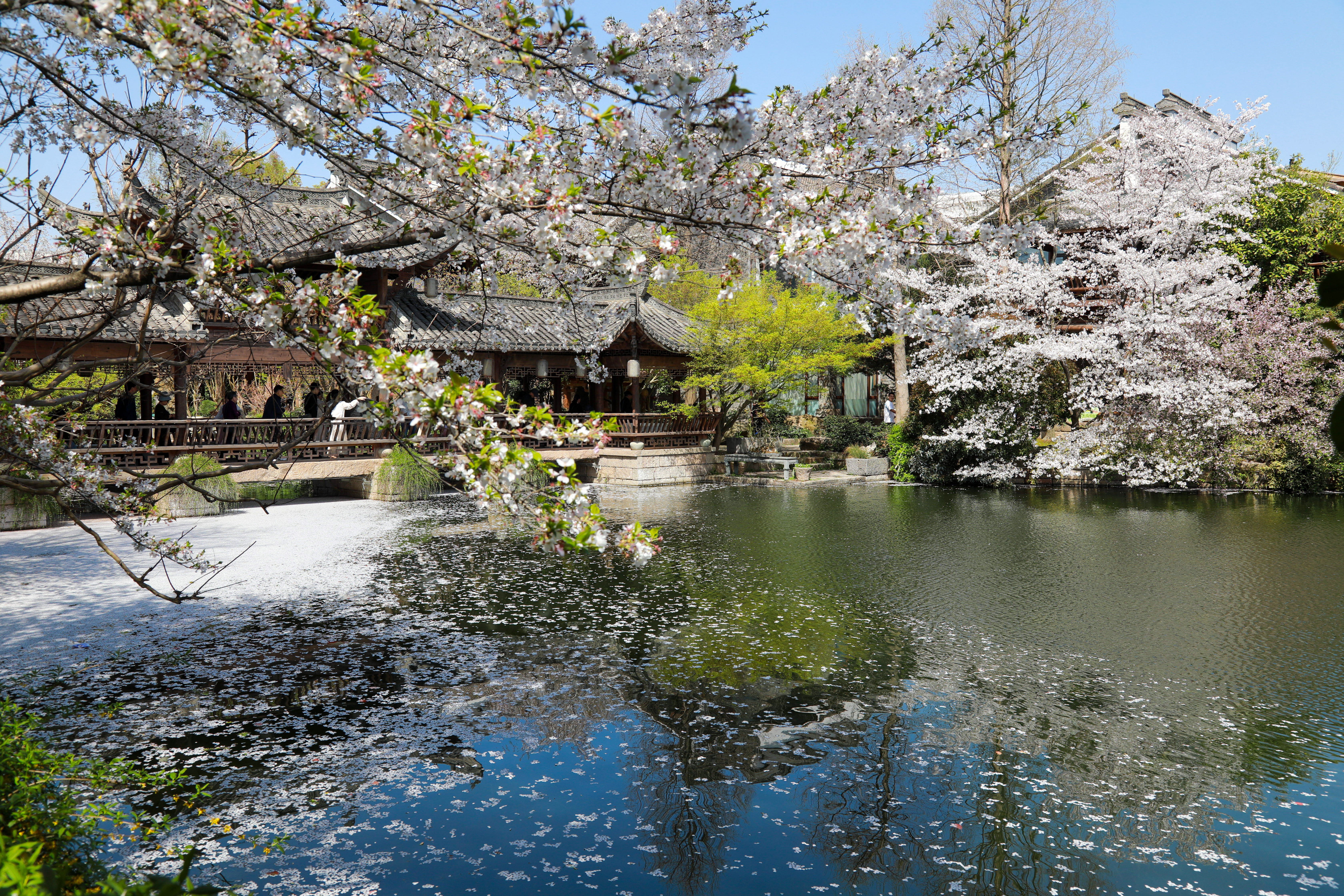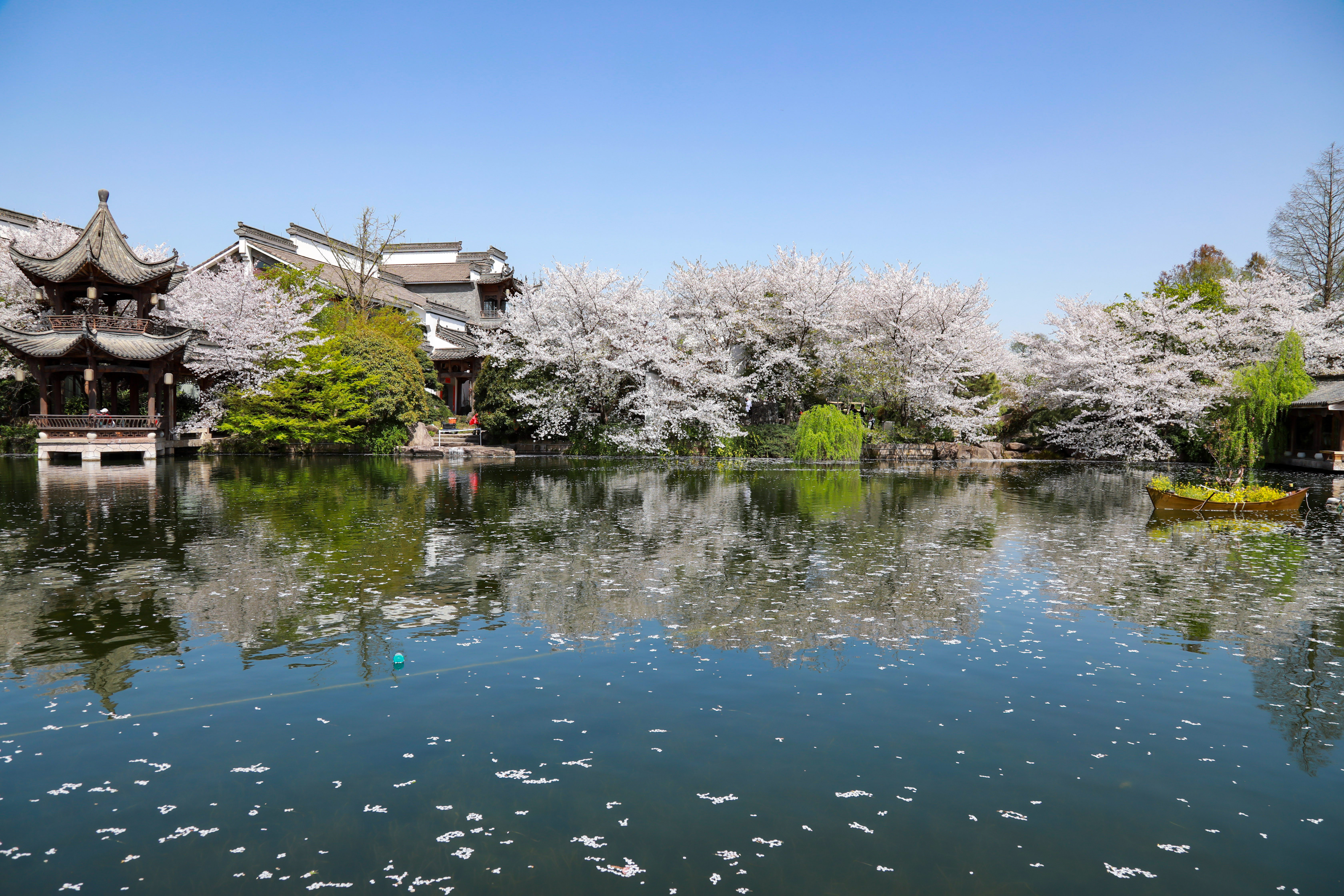梦溪院的樱花雨,亭台倒影里飘着粉白小诗~