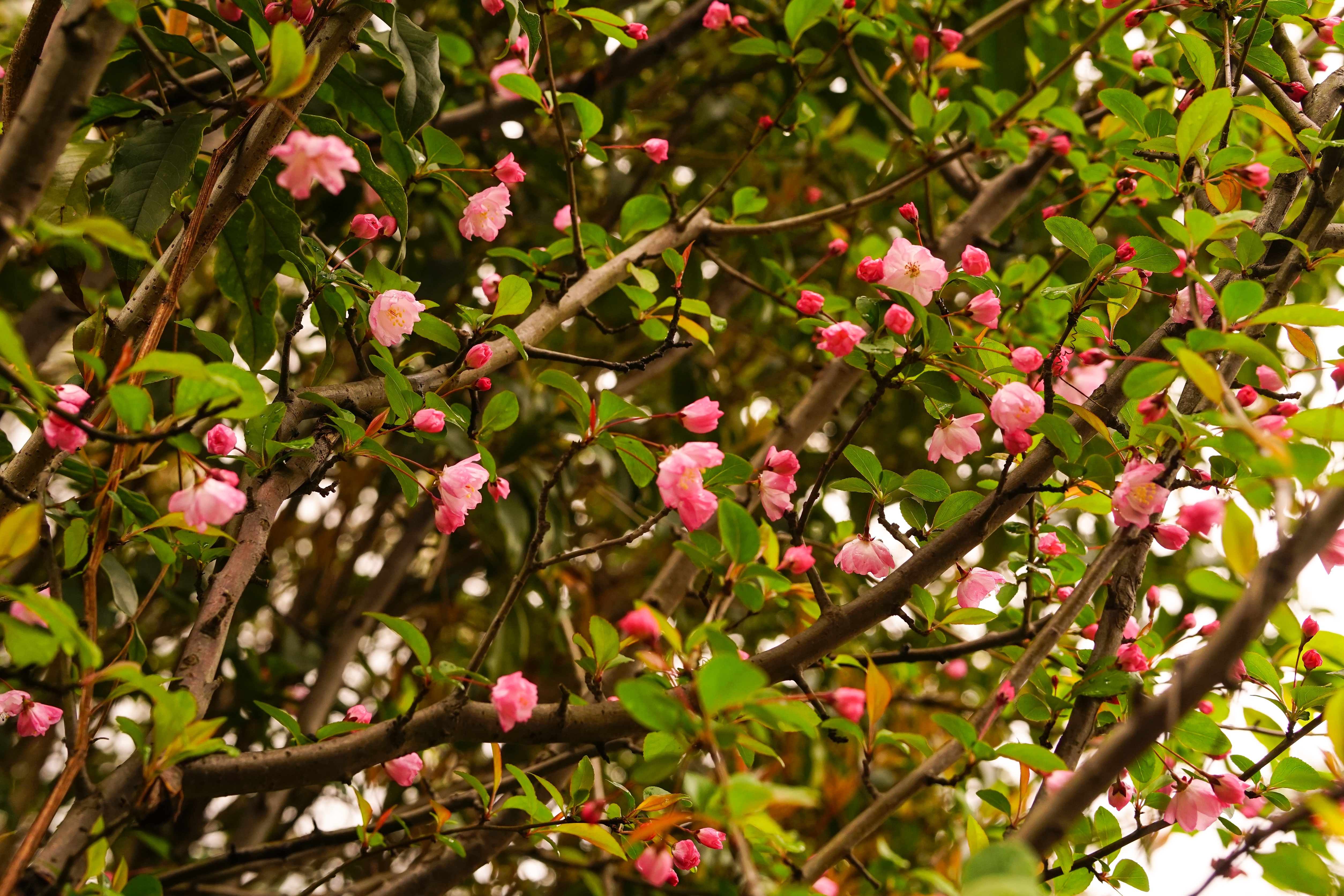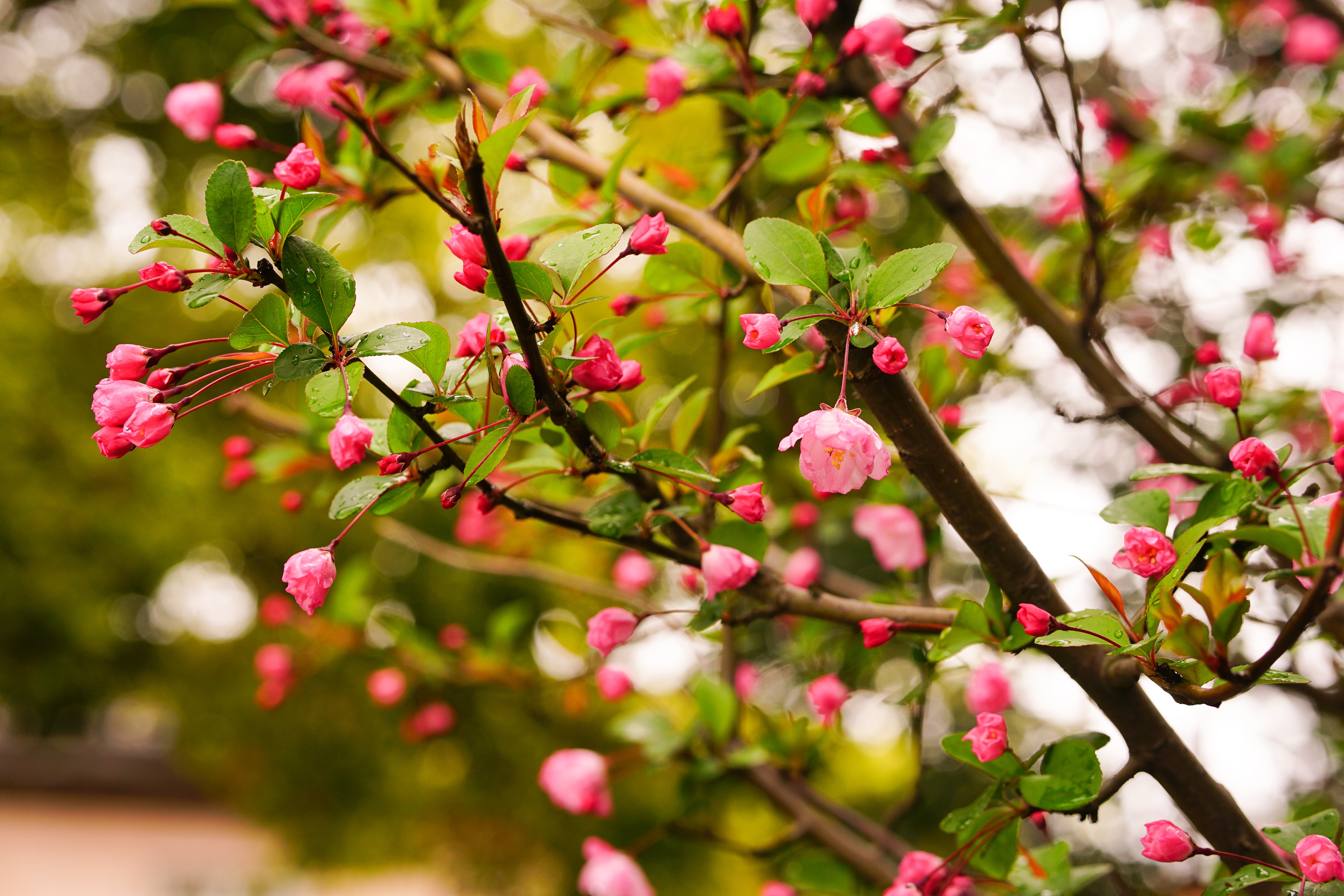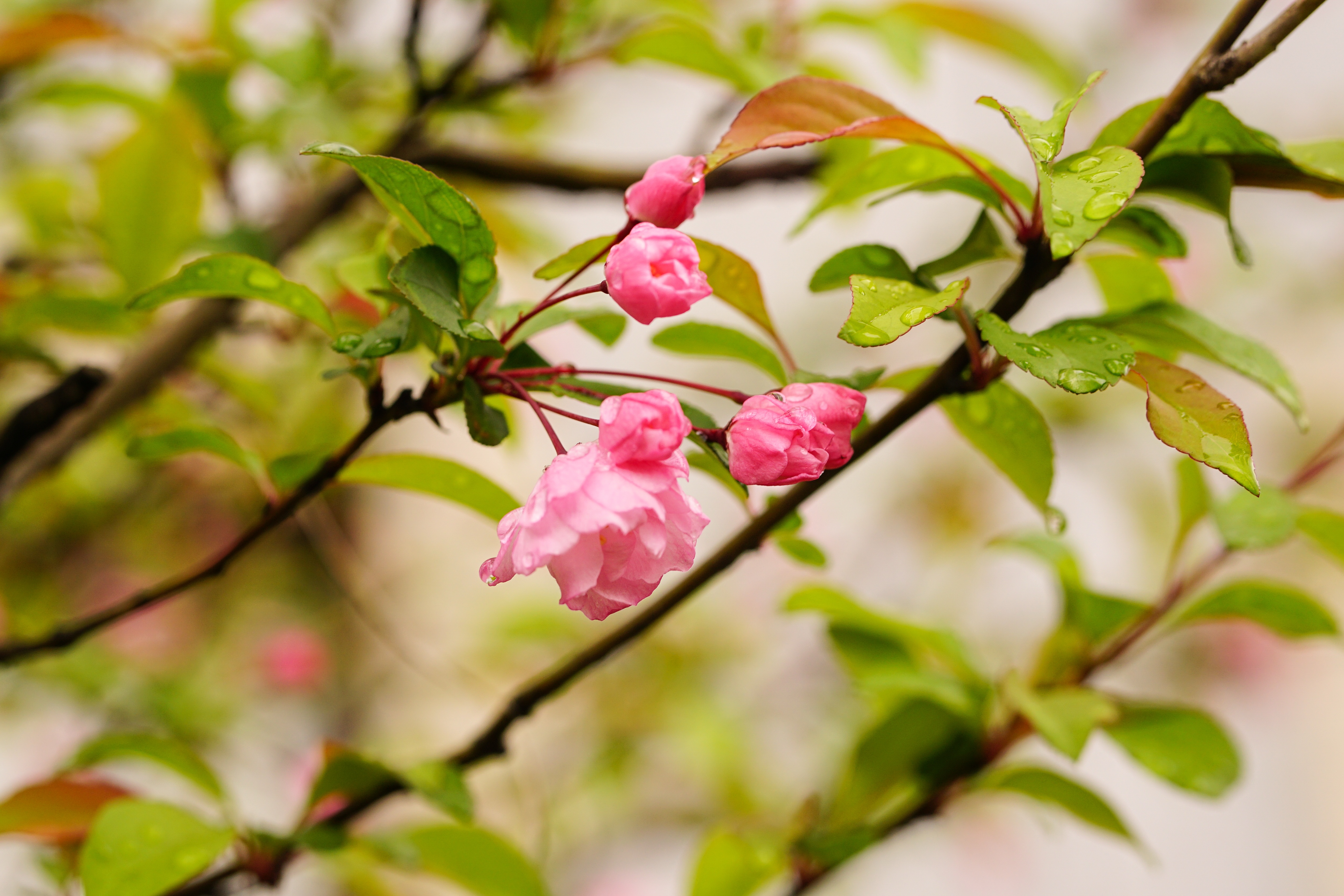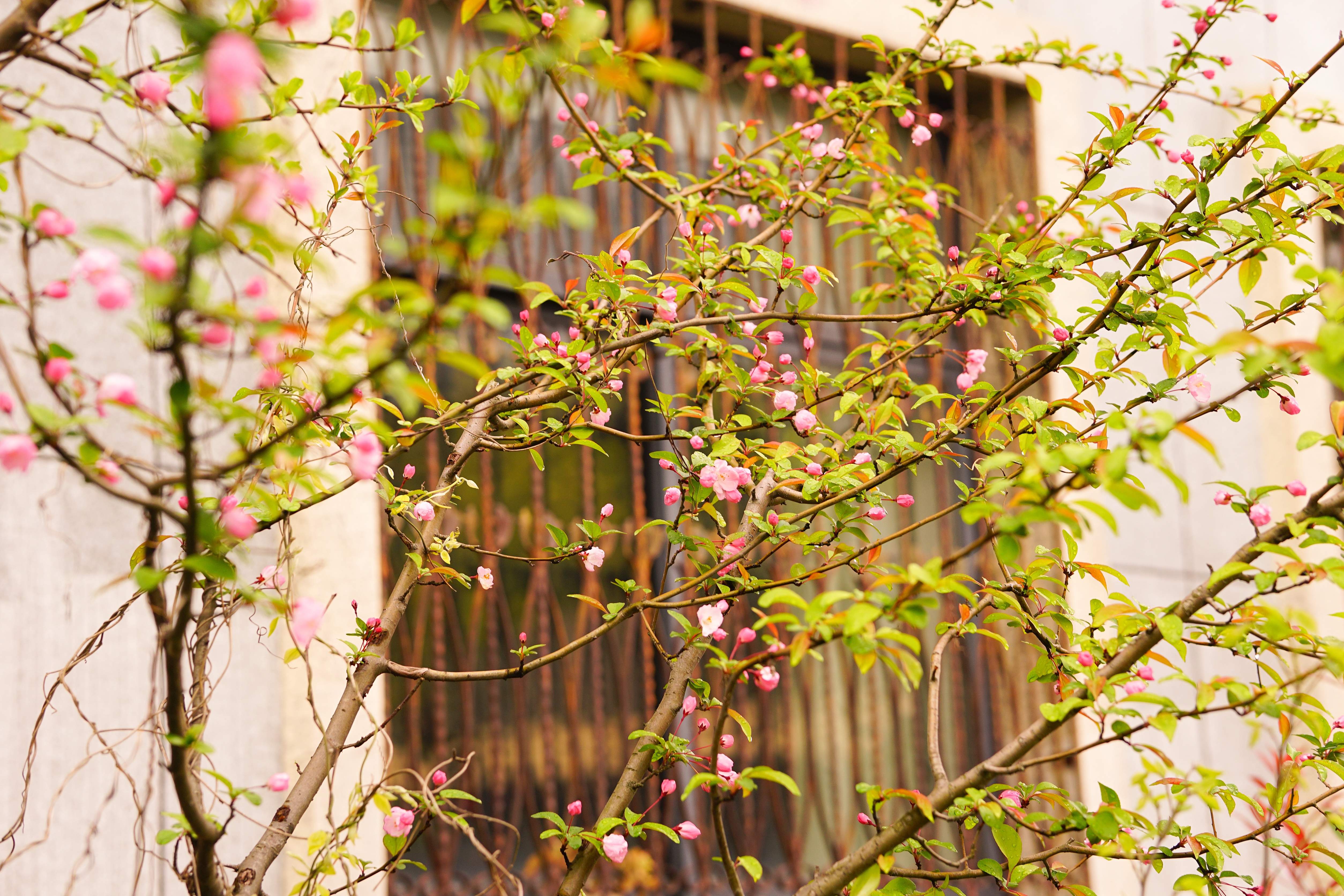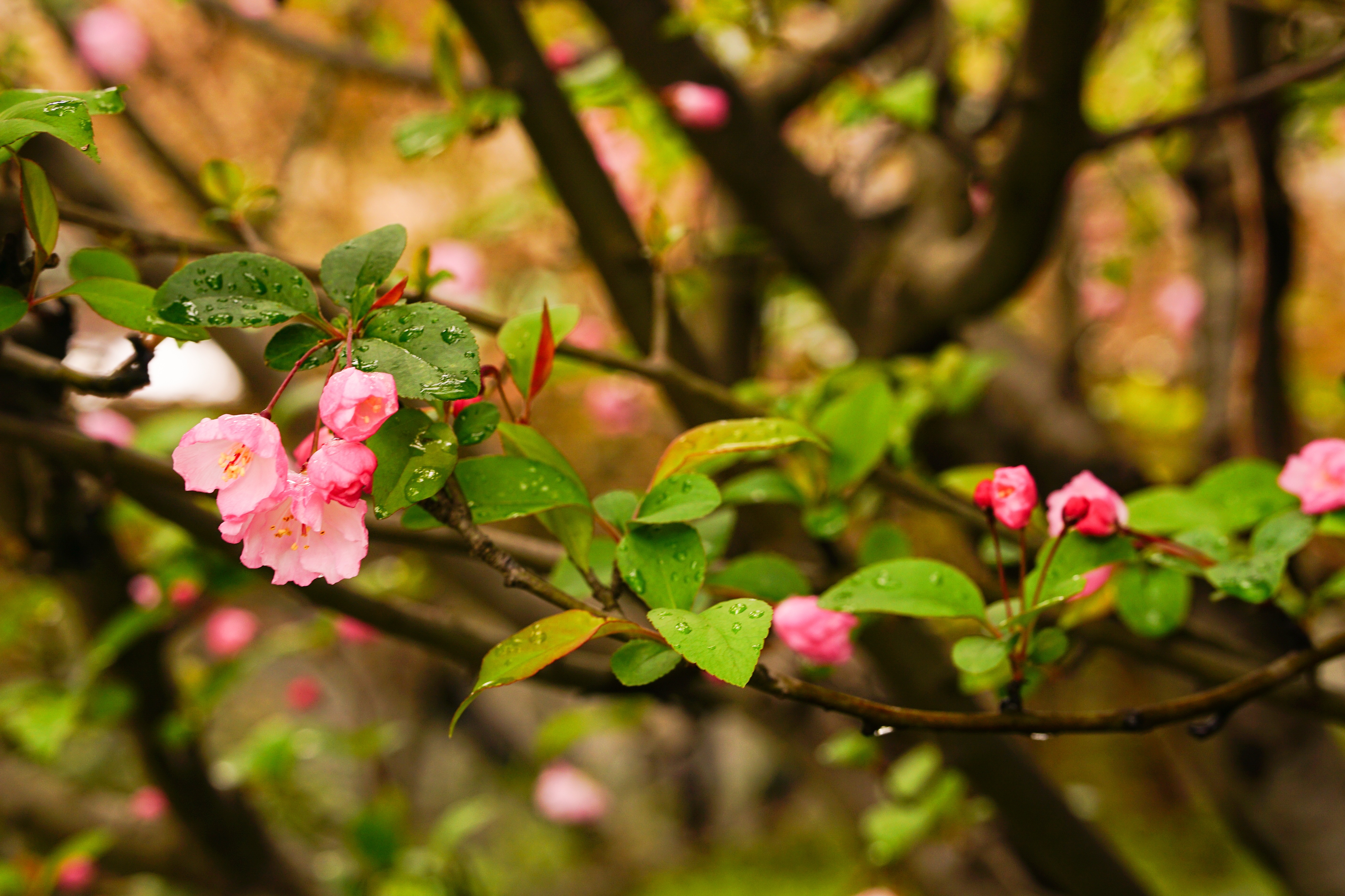 半卷东风,一帘海棠瘦。小港街道红联社区红花园里的海棠花"醒"了,春天便有了粉色的腮红。