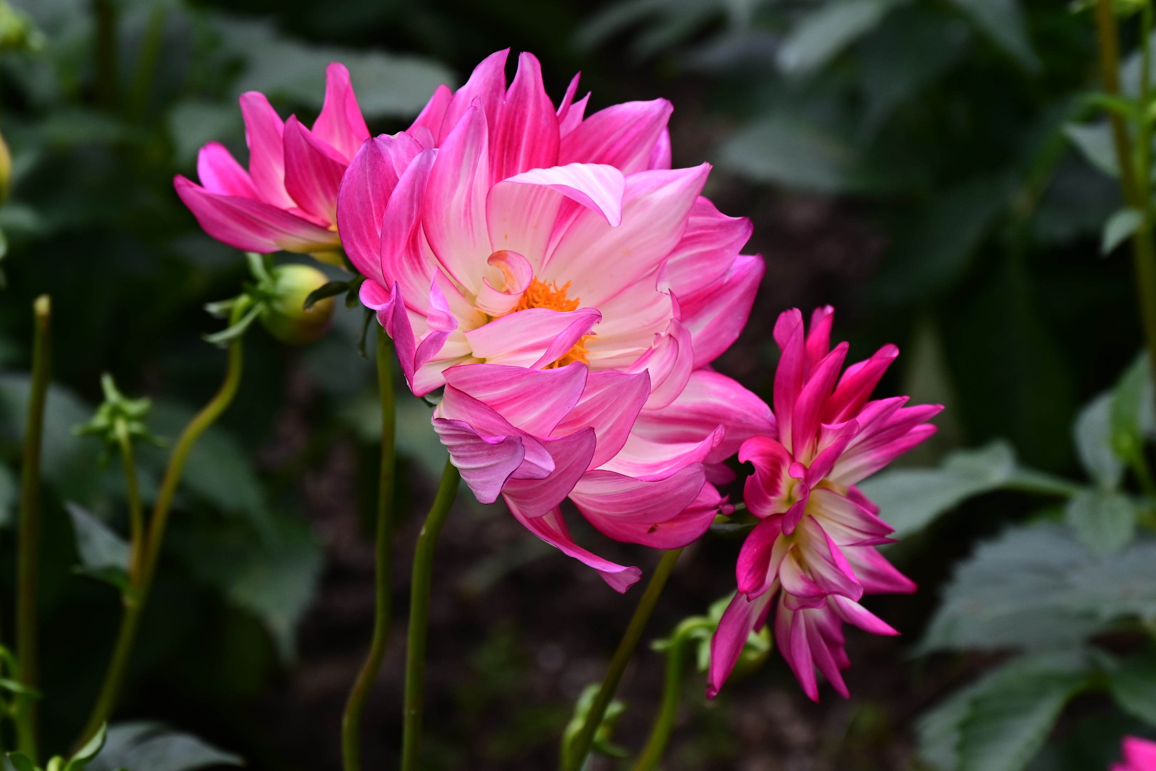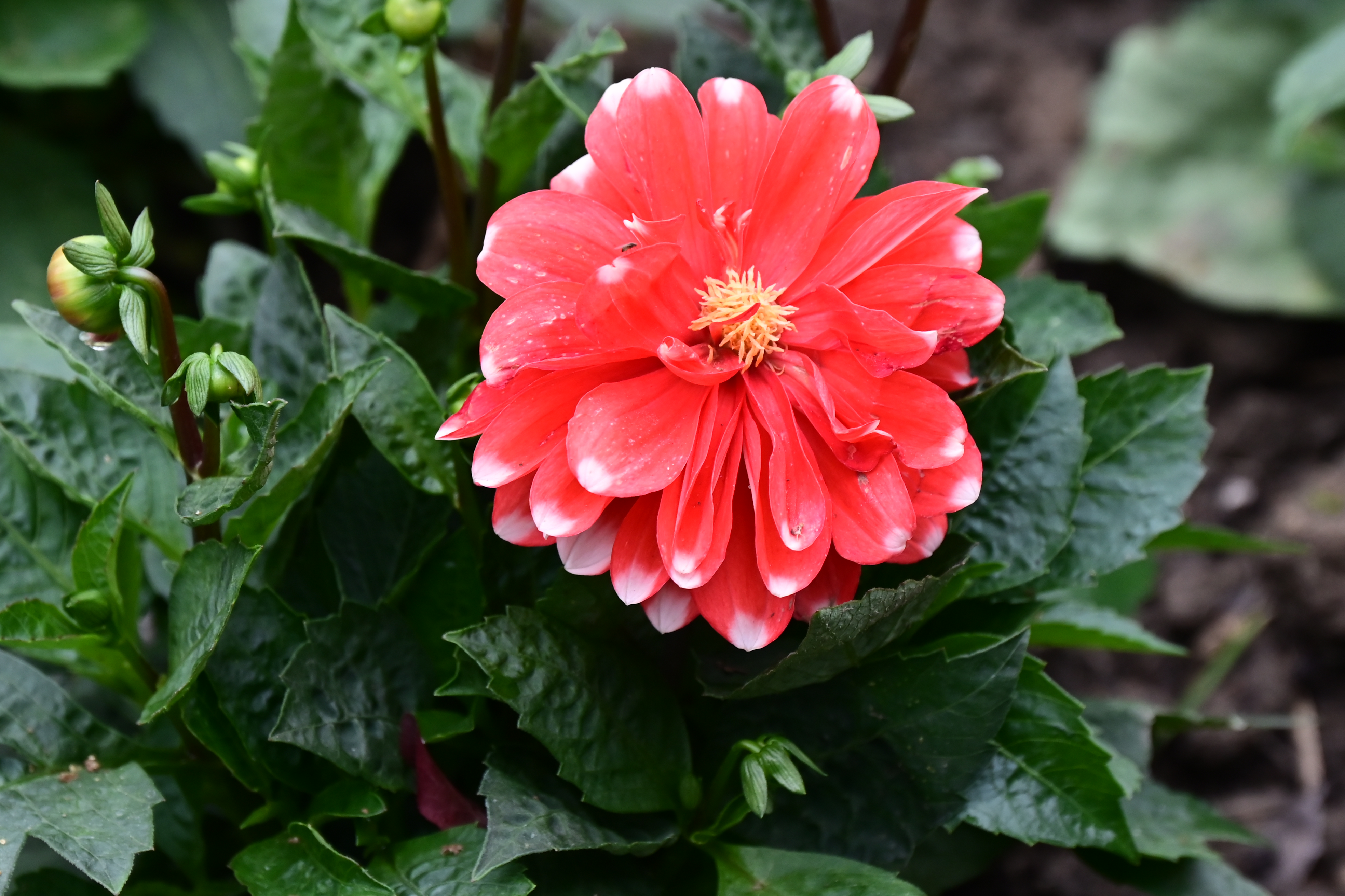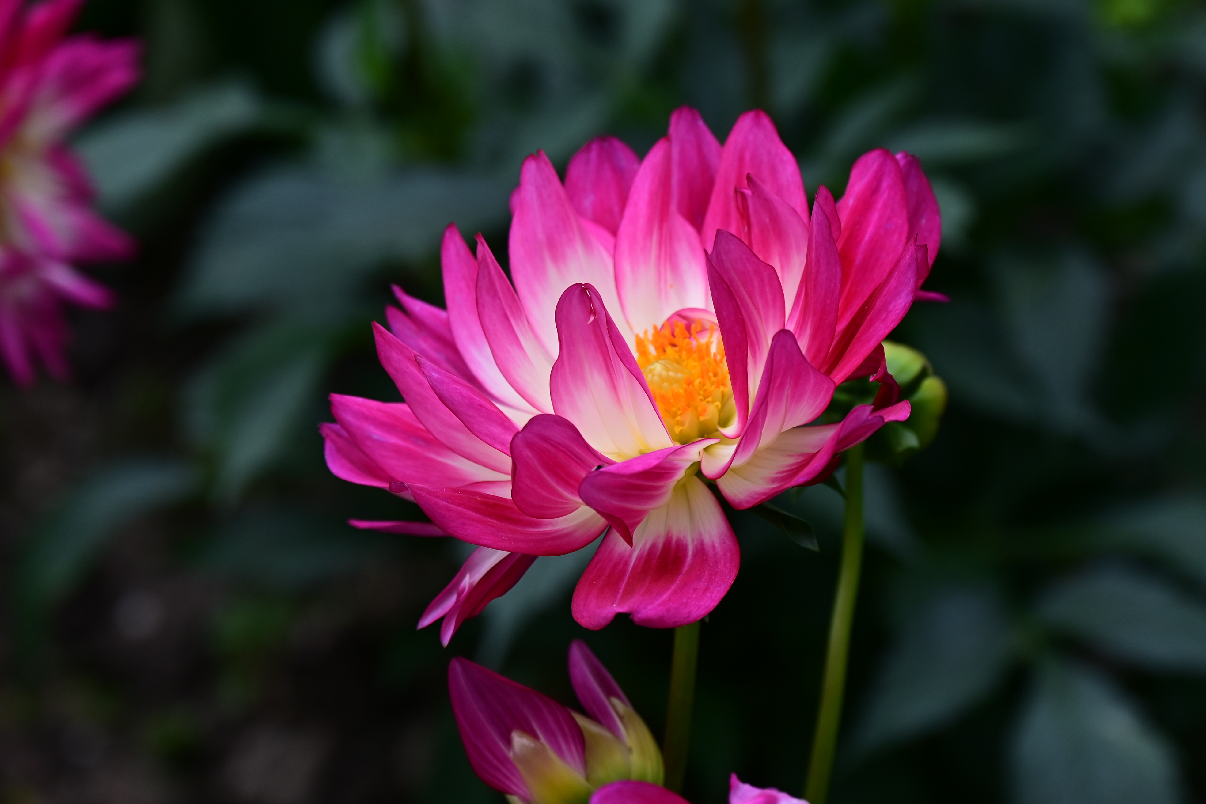 美的港湾!大丽花,也叫地瓜花,是菊科大丽花属的多年生草本植物。它原产于墨西哥,是墨西哥的国花,也是世界名花之一。大丽花的花型多样,有菊形、莲形、芍药形、蟹爪形等,花朵直径小的似酒盅口大小,大的可达30-40厘米。花色丰富,包括白、红、紫、黄、橙等单色及复色。 大丽花喜欢凉爽的气候,不耐霜,霜后茎叶立刻枯萎。它不耐干旱,也不耐涝,生长期内对温度要求不严。适于花坛、花径丛栽,矮生品种适于盆栽。花期6-12月,果期9-10月。大丽花象征大吉大利、华丽、高贵、纯洁、优雅、富贵、壮丽和繁荣,寓意着对未来的美好期许和憧憬。