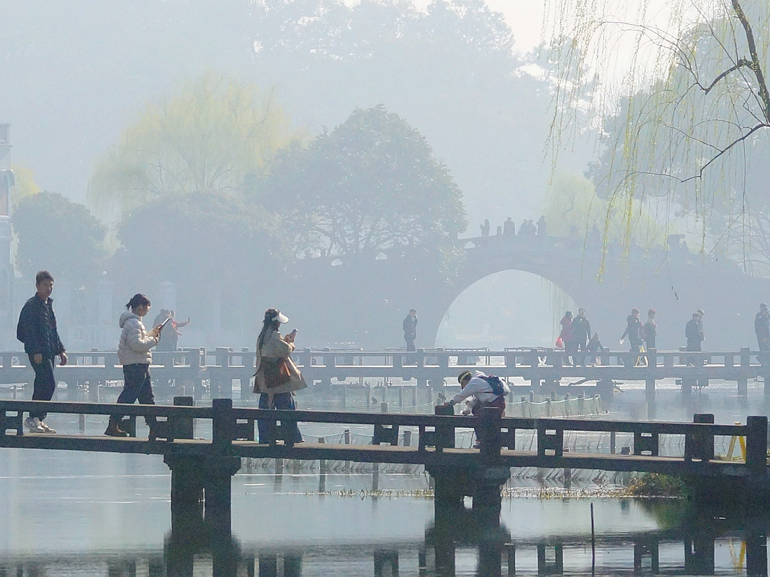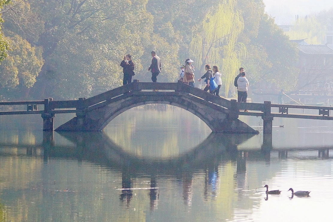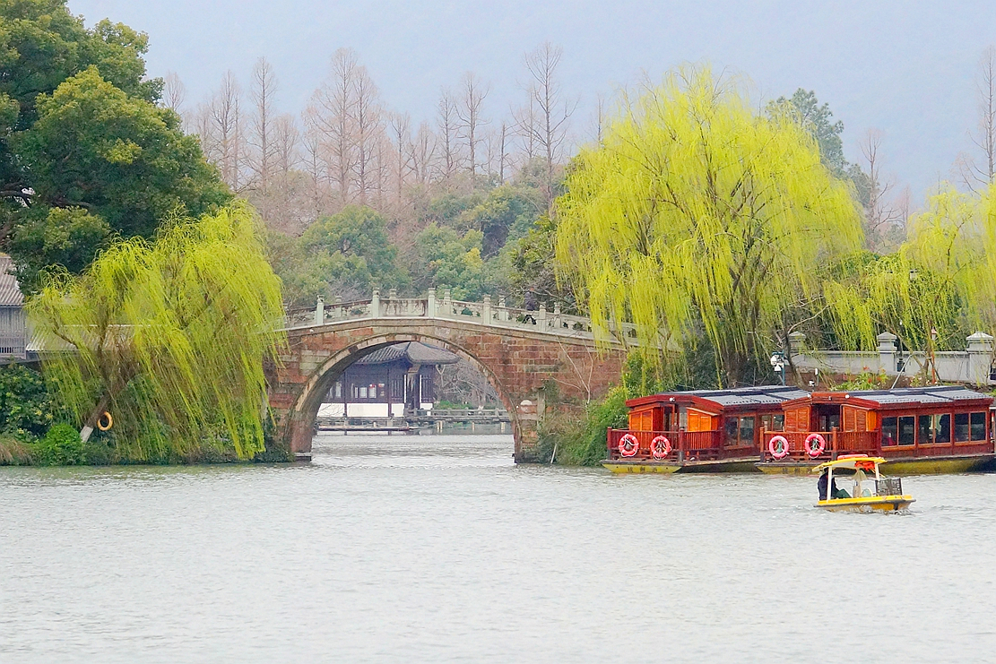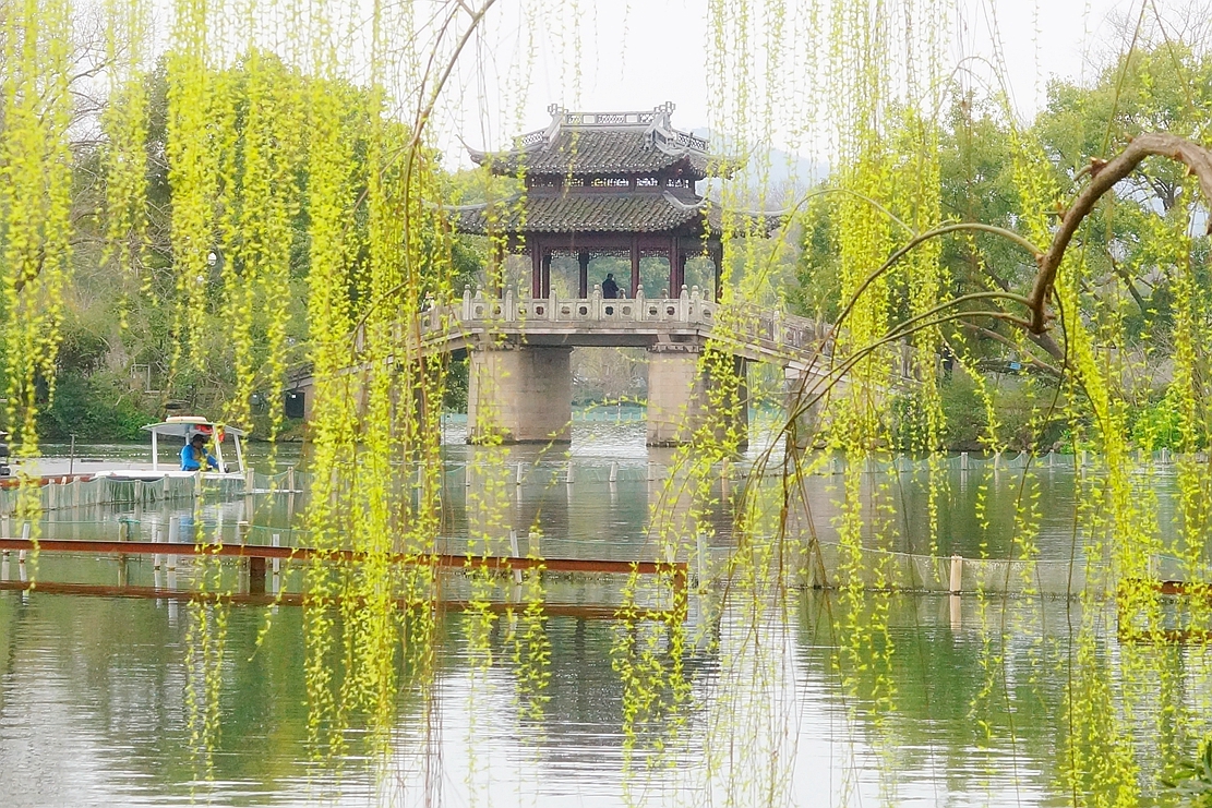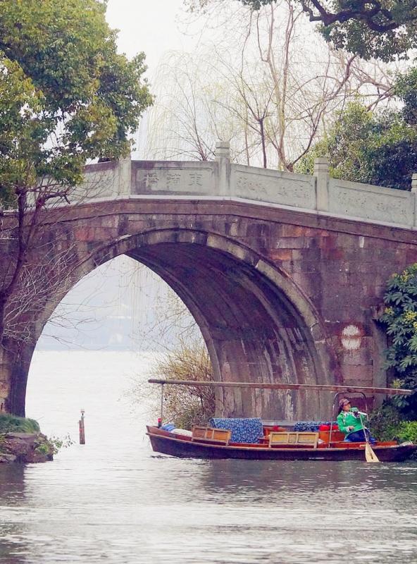 古桥古塔披春装——春游白堤、曲院风荷公园、苏堤等景区,处处春意盎然,老树长出了绿叶,新柳在春风中轻扬,古桥、古塔披上了漂亮的春装,有玉带桥、保俶塔、断桥、苏堤古桥、雷锋塔等,沧桑的古桥、古塔披新装,焕发出了青春。