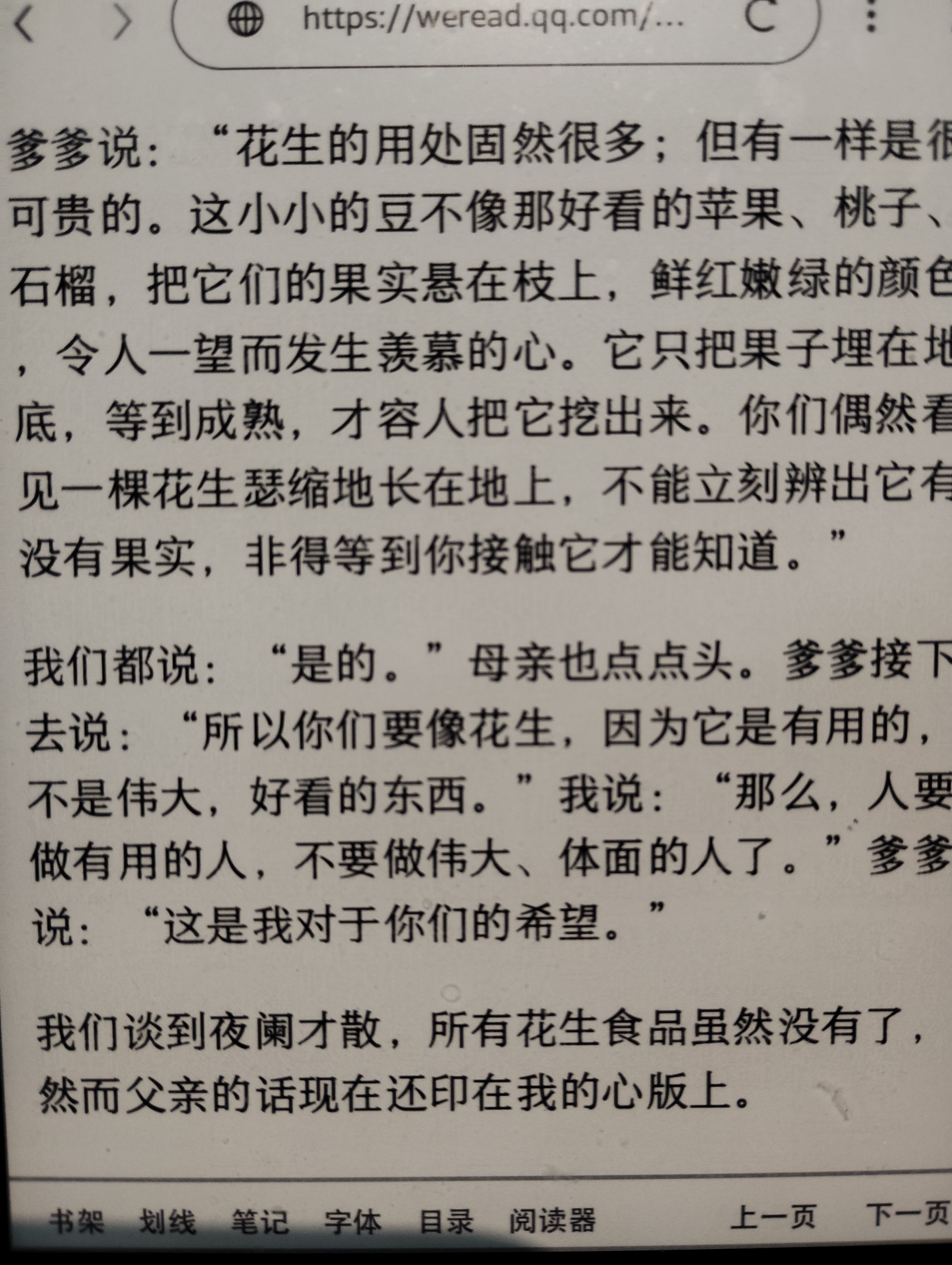 参加完潮新闻的落花生番薯的品鉴及学习活动,恰好看见许地山的散文《落花生》。 文中,父亲以花生为喻,向孩子们阐释了一种质朴而深刻的价值观:花生的果实深藏土中,不似苹果、石榴般以鲜丽之姿邀人艳羡,却以实际的用途彰显其可贵。原文是“人要做有用的人,不要做伟大、体面的人”。 但我看不出花生的外表有何失体面。 用花生的扎根土地,教育我们一步一个脚印,踏踏实实地走人生之路倒是挺好的。 他应该是想借此告诫子女,人应当追求内在的实用与价值,而非徒有其表的体面与浮华,并明确表达了希望他们成长为“有用之人”的期许。 我倒是更希望,在我们面对人生的时候,能保持我的体面,如花生出土时,虽满身尘埃,但依然不失它的丰满与可爱。番薯也一样,土豆也是。