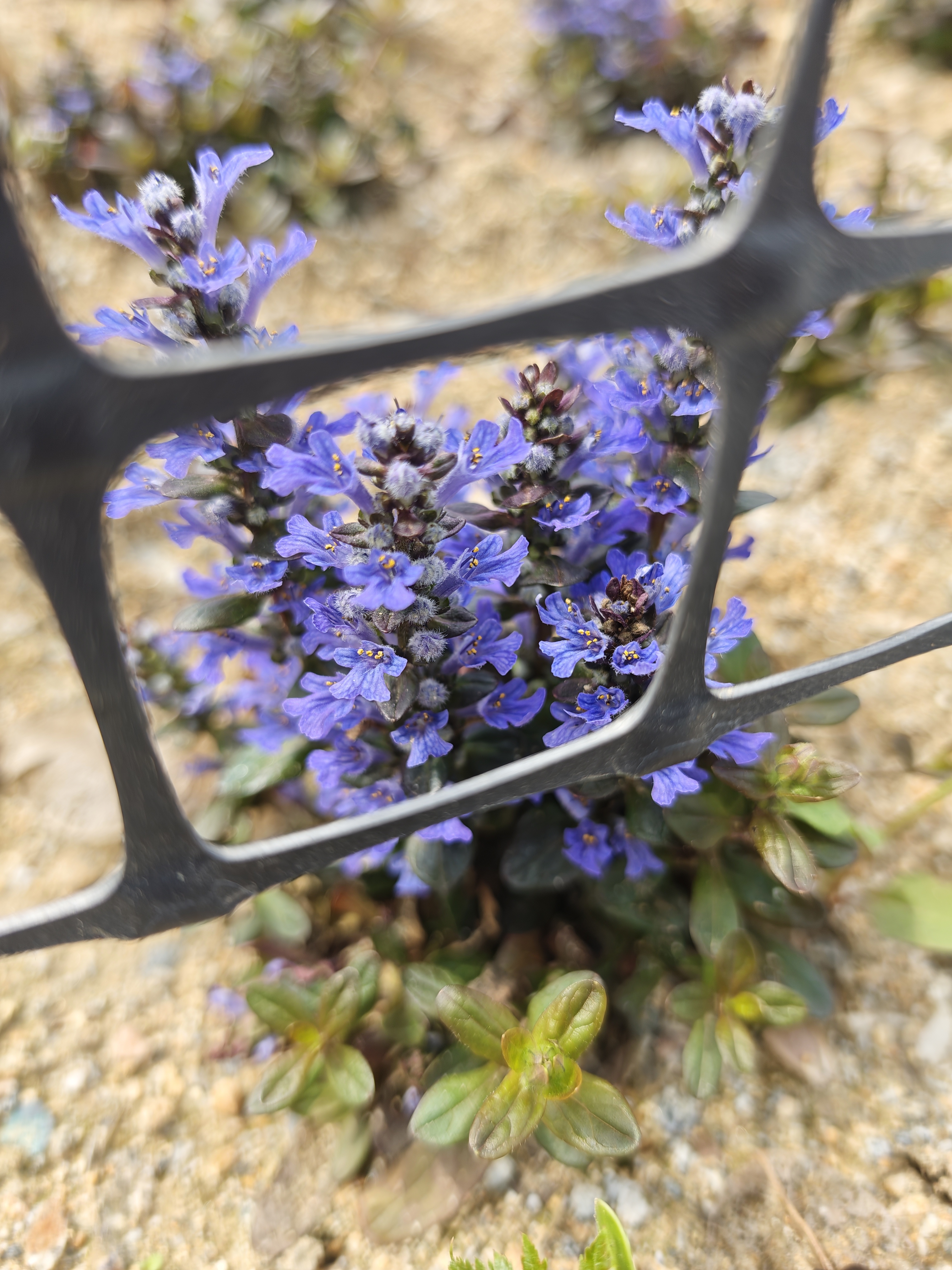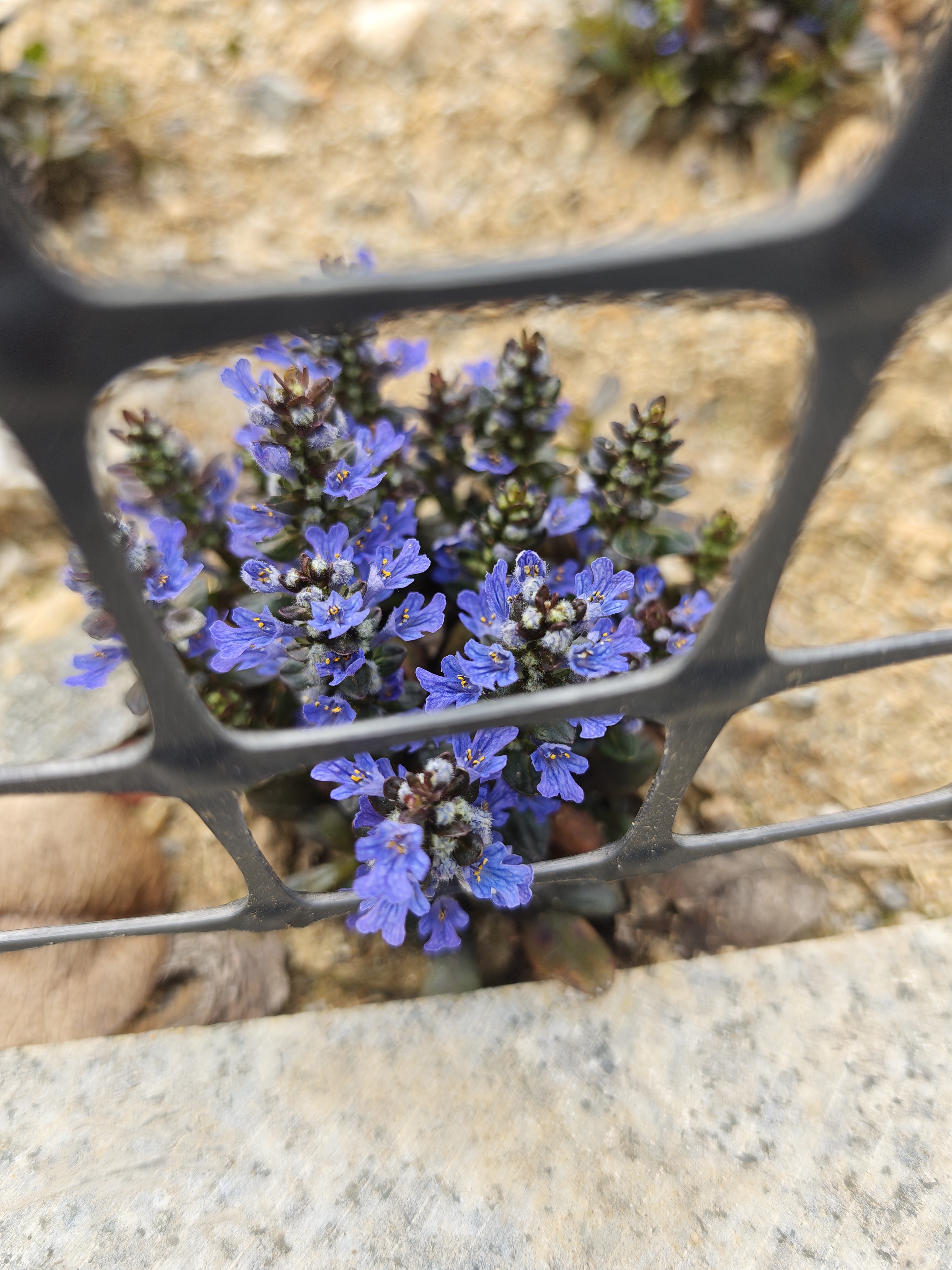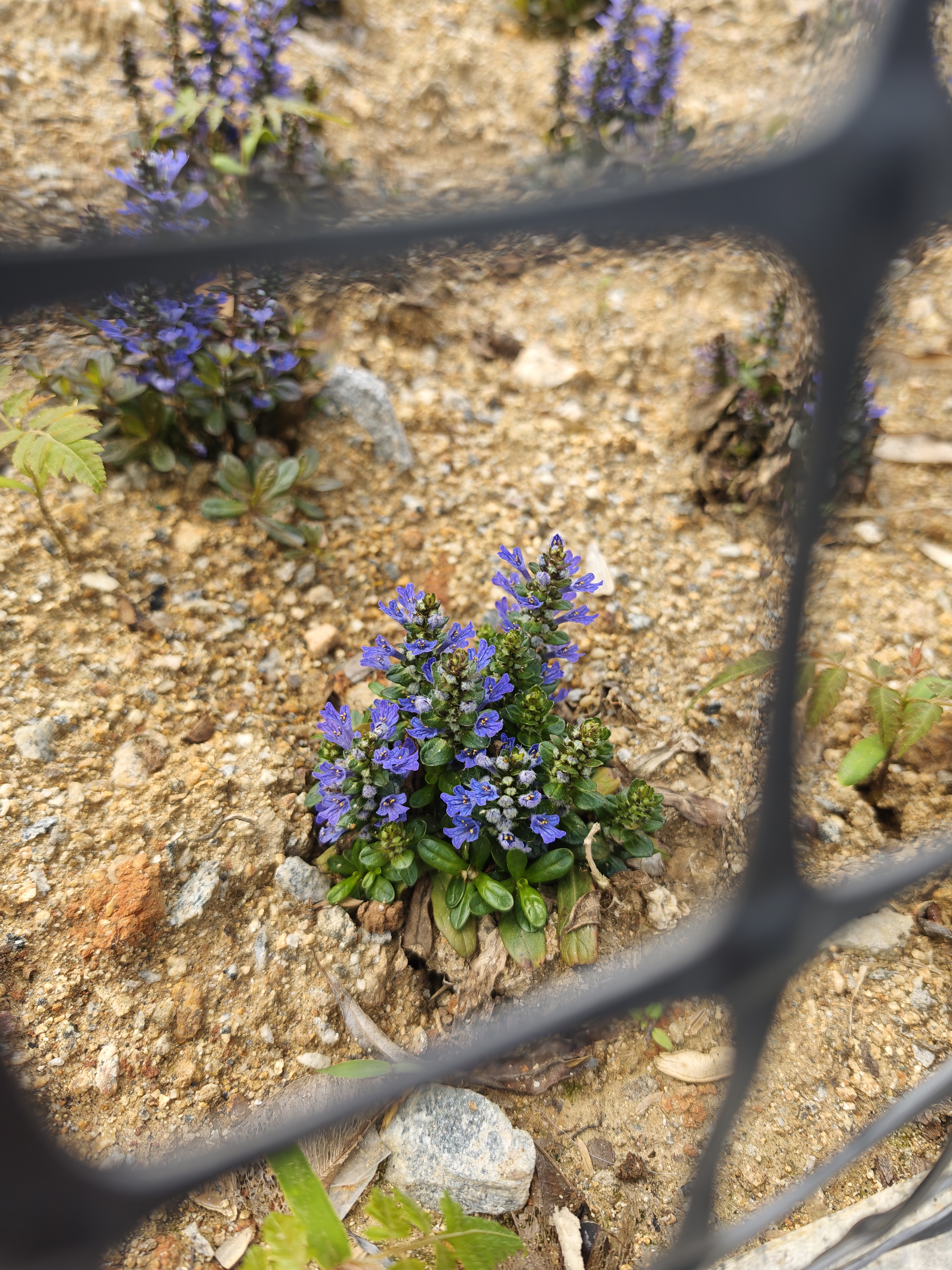 就算是阴天 花自然美貌 看起来像是野菜的小苗 开出了蓝紫色的花花 春天的惊喜还在路上