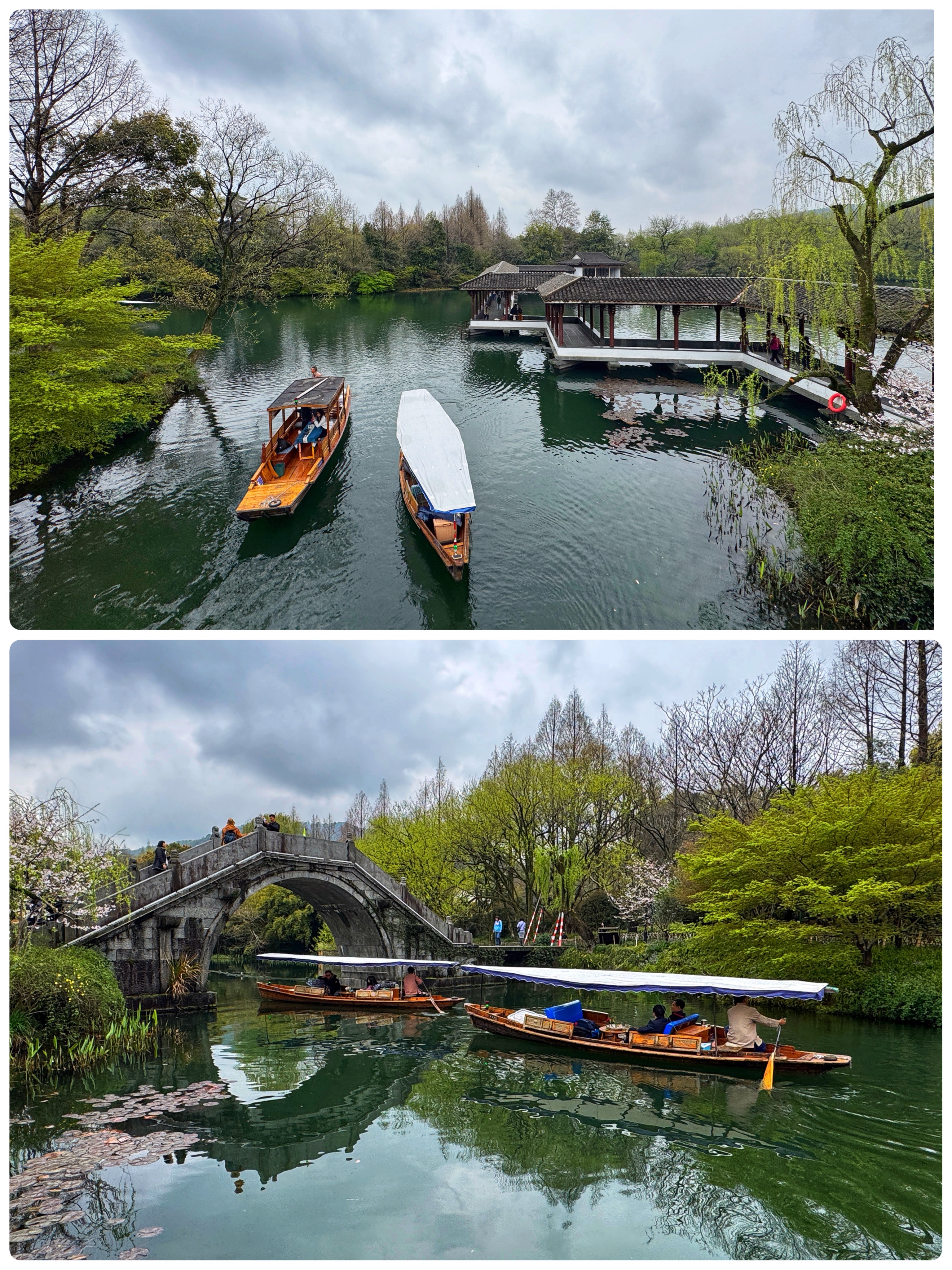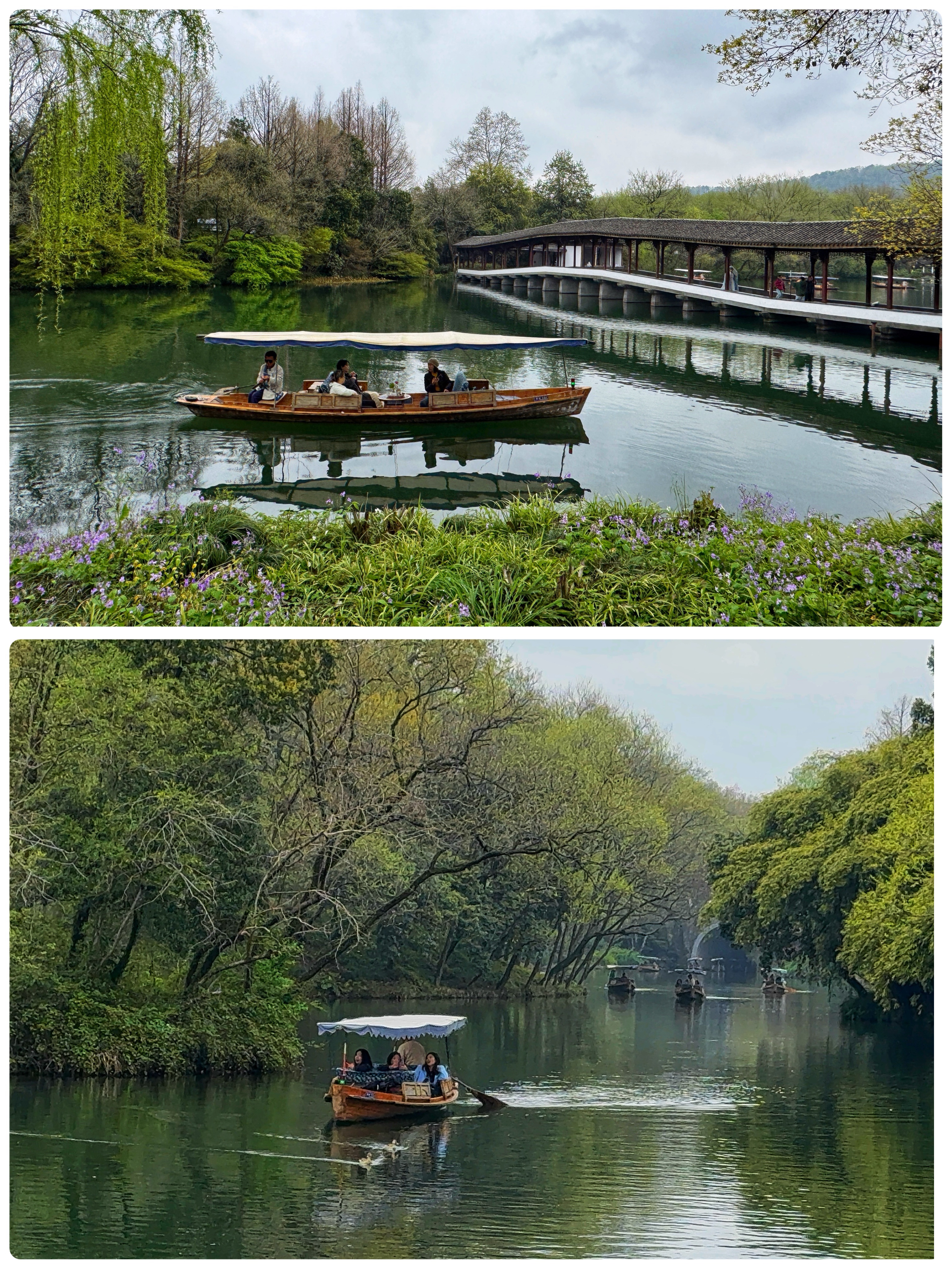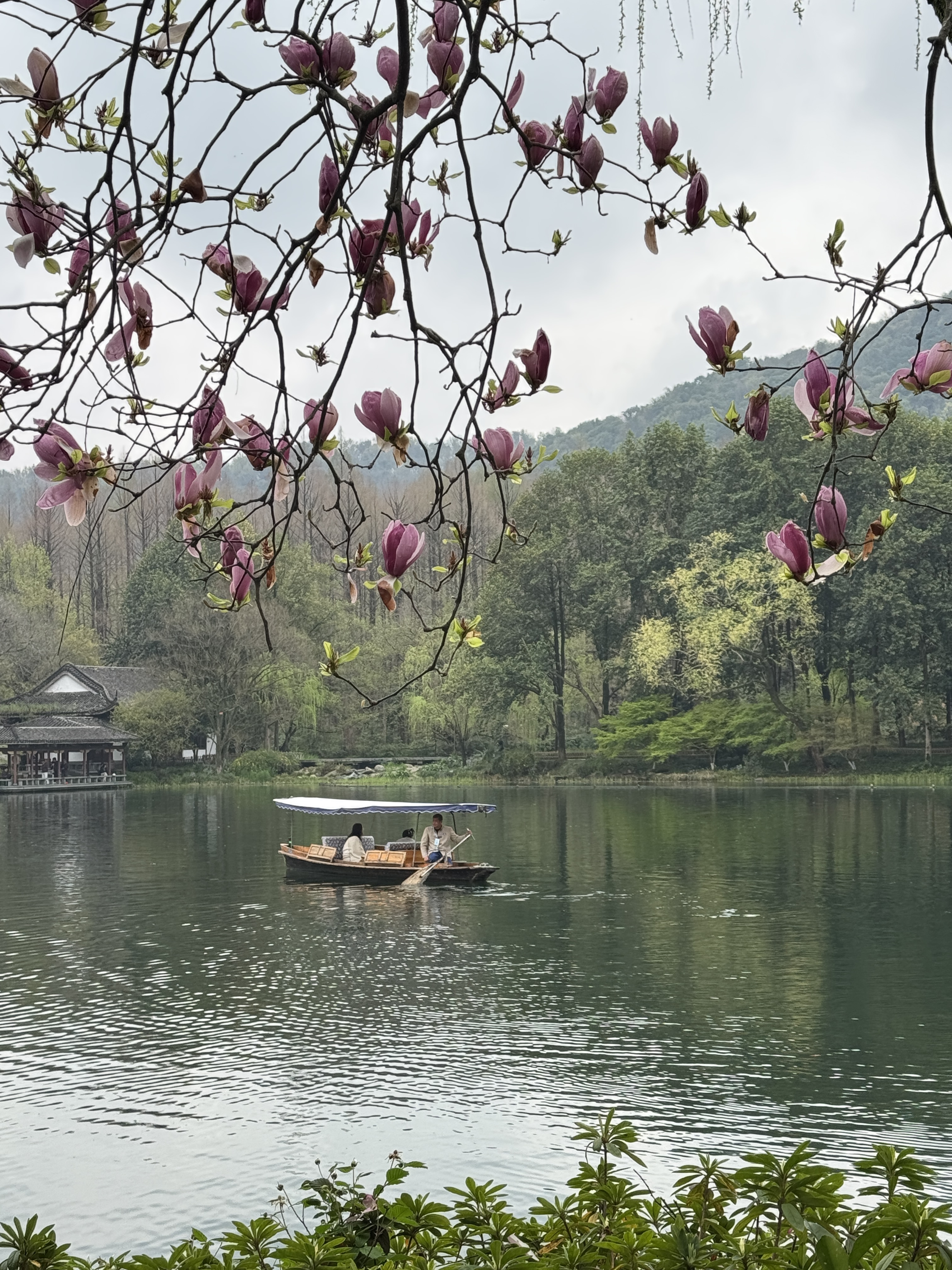 浴鹄湾,醉在江南春色里 雨后的浴鹄湾, 空气清润沁人。 摇橹船次第划过湖面, 穿桥过影, 荡开一湖春光。 蜿蜒小径旁,繁花似锦, 海棠带露嫣然, 二月兰漫坡铺紫, 樱花随风轻舞, 紫玉兰静静绽放。 群芳争艳,春意盎然, 心早已沉醉其中, 忘了身在何处, 这就是杭州, 最温柔浪漫的春天。