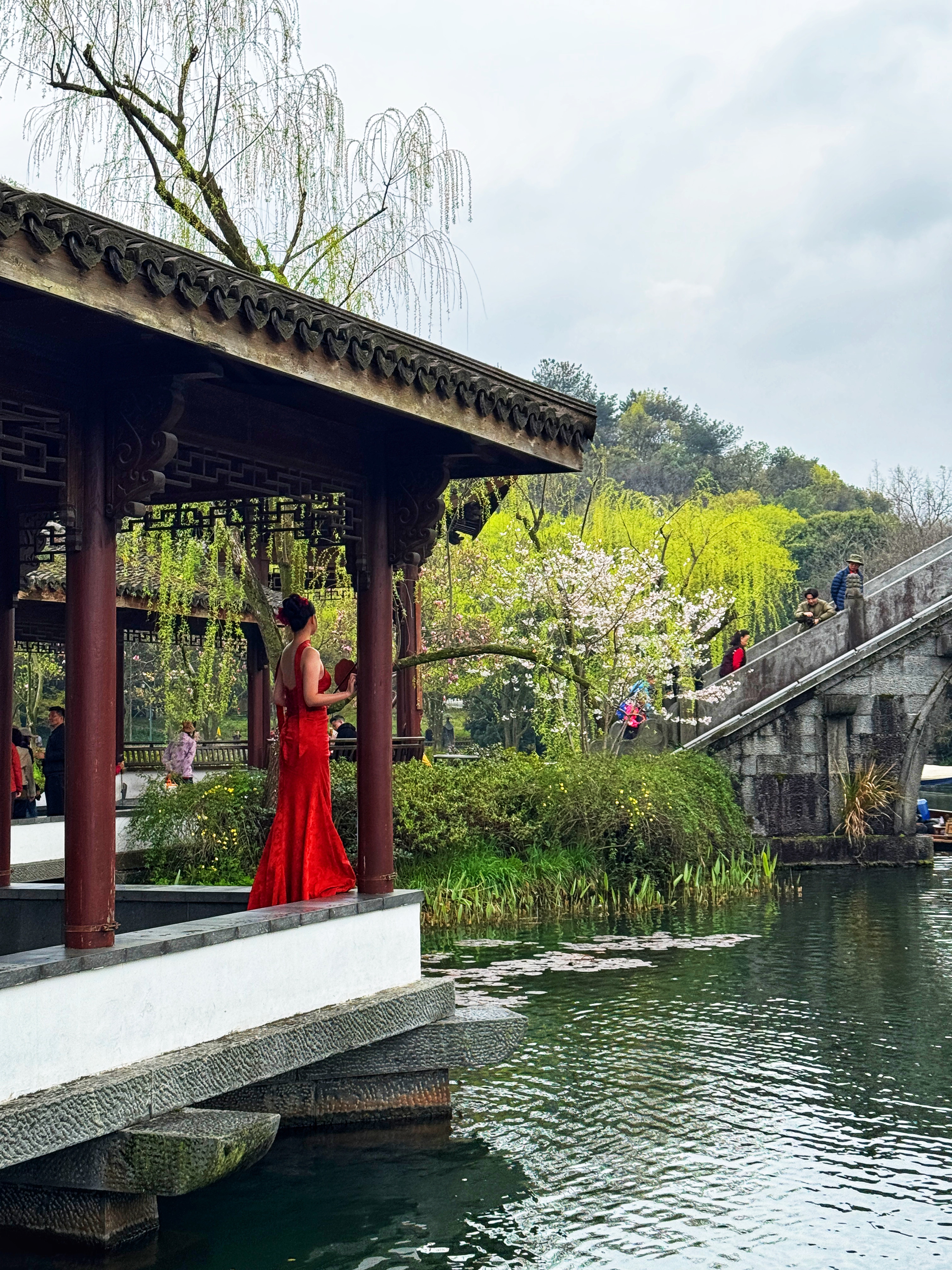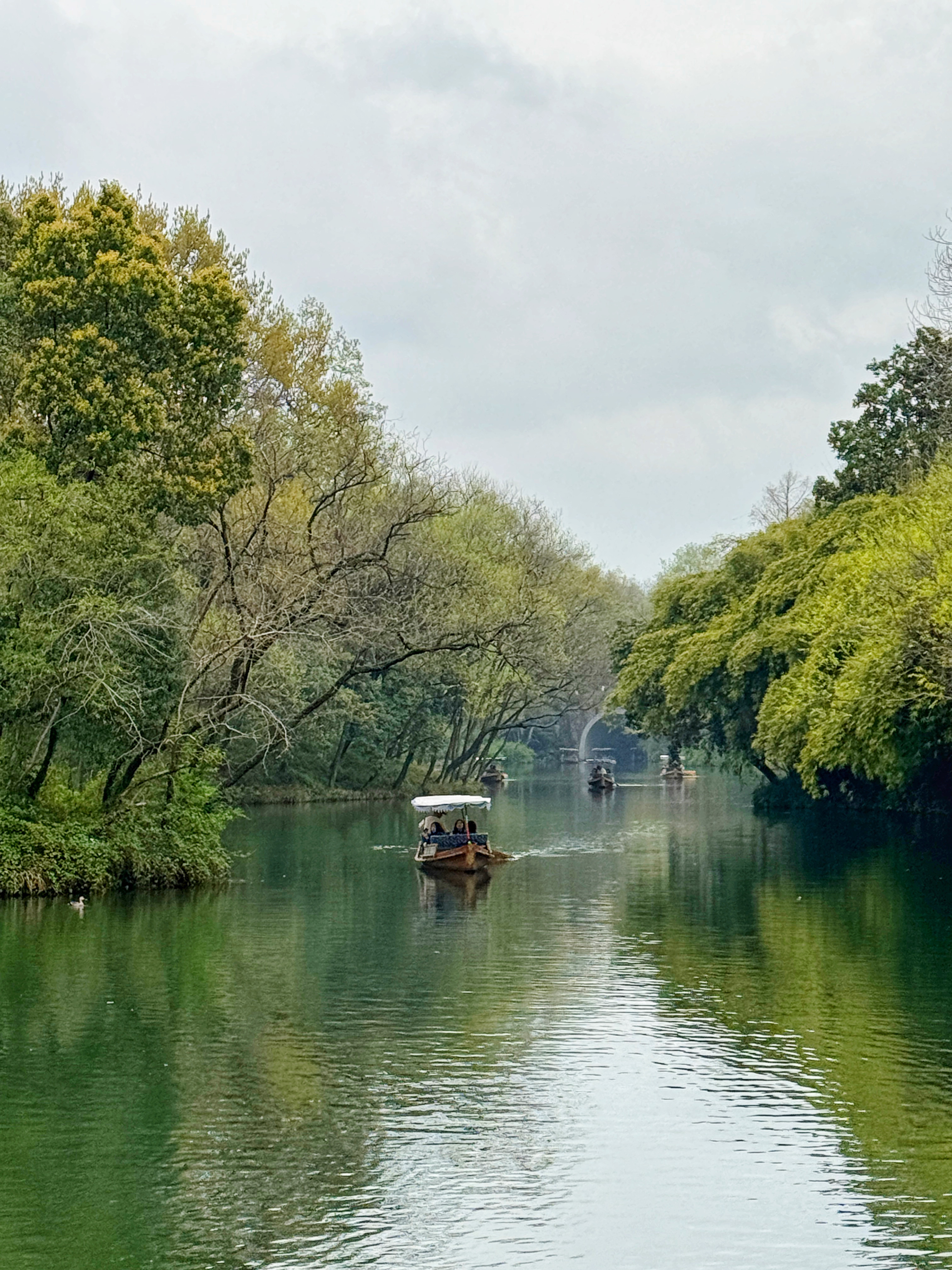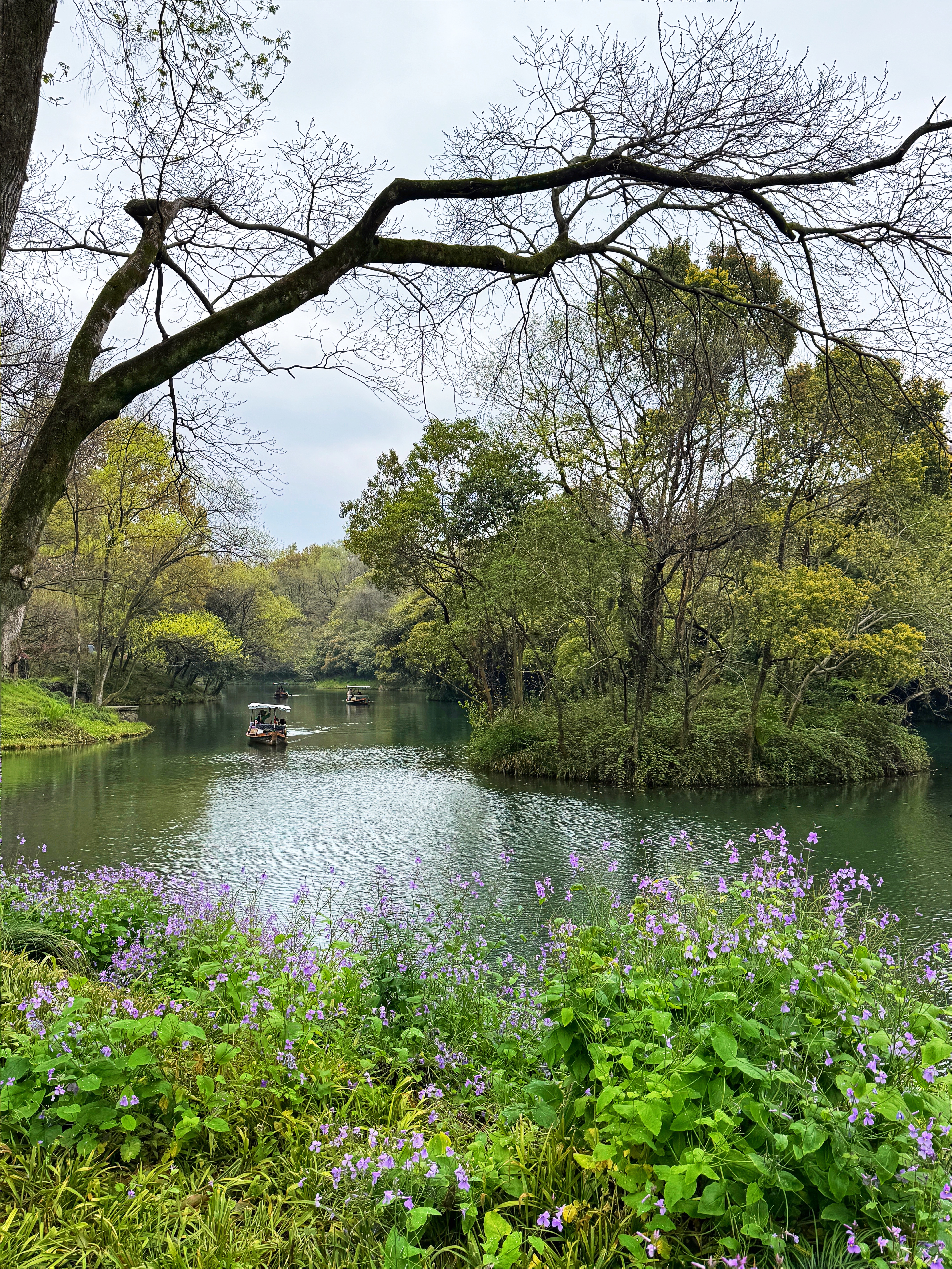 浴鹄湾,醉在江南春色里 雨后的浴鹄湾, 空气清润沁人。 摇橹船次第划过湖面, 穿桥过影, 荡开一湖春光。 蜿蜒小径旁,繁花似锦, 海棠带露嫣然, 二月兰漫坡铺紫, 樱花随风轻舞, 紫玉兰静静绽放。 群芳争艳,春意盎然, 心早已沉醉其中, 忘了身在何处, 这就是杭州, 最温柔浪漫的春天。