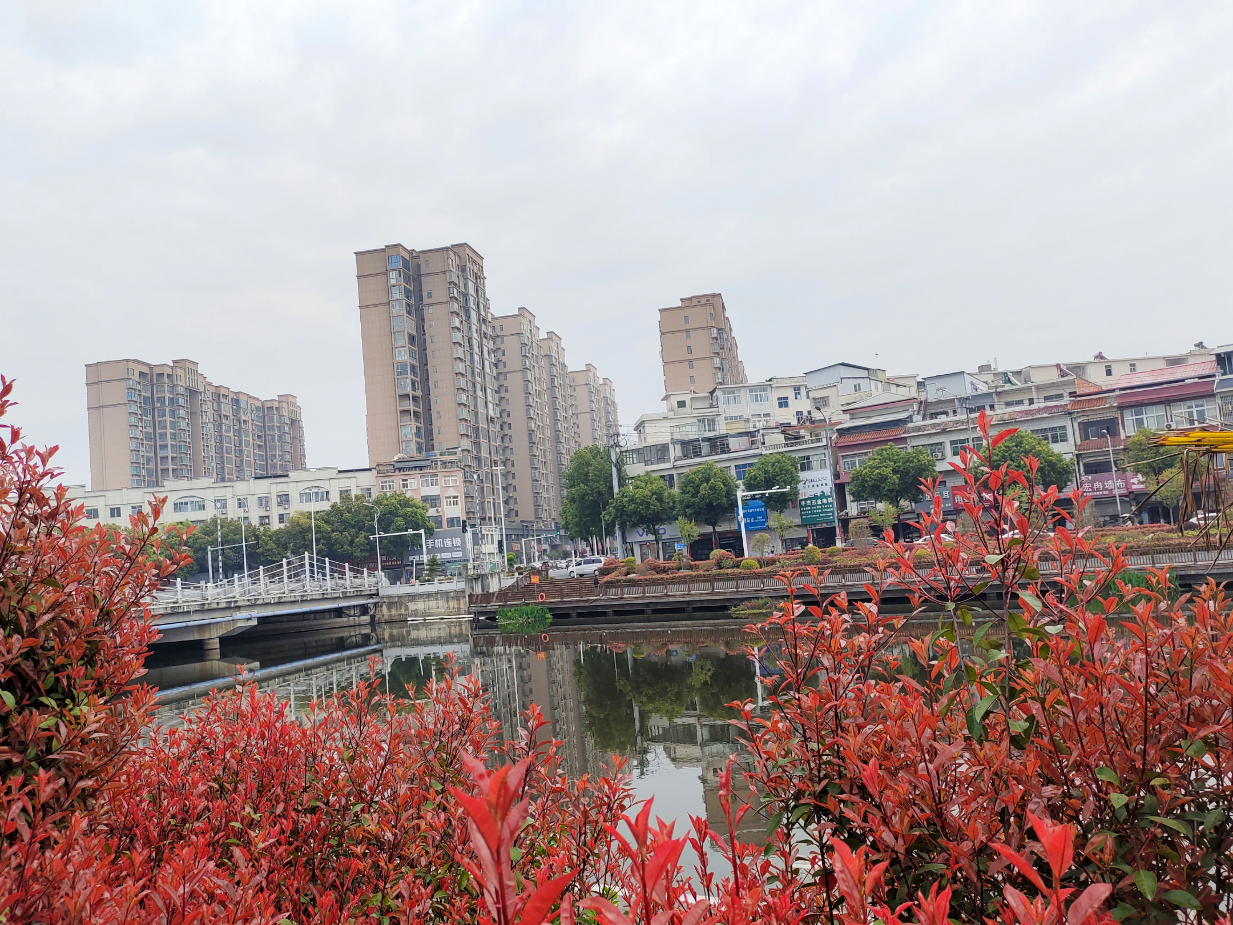 阴天的河畔,红叶悄悄染亮了桥影和楼群,沿步道慢走,随手一拍都是城市温柔日常。