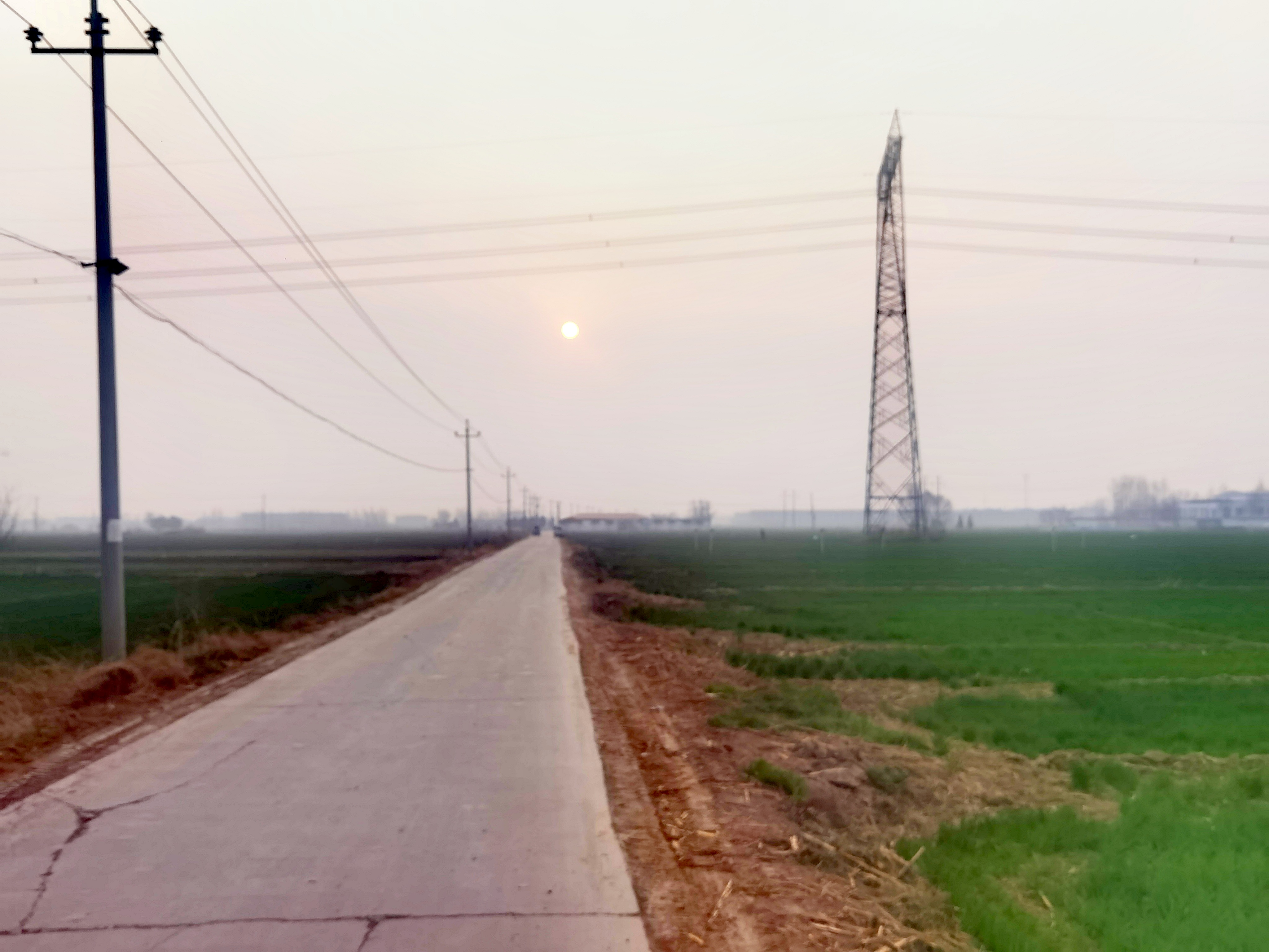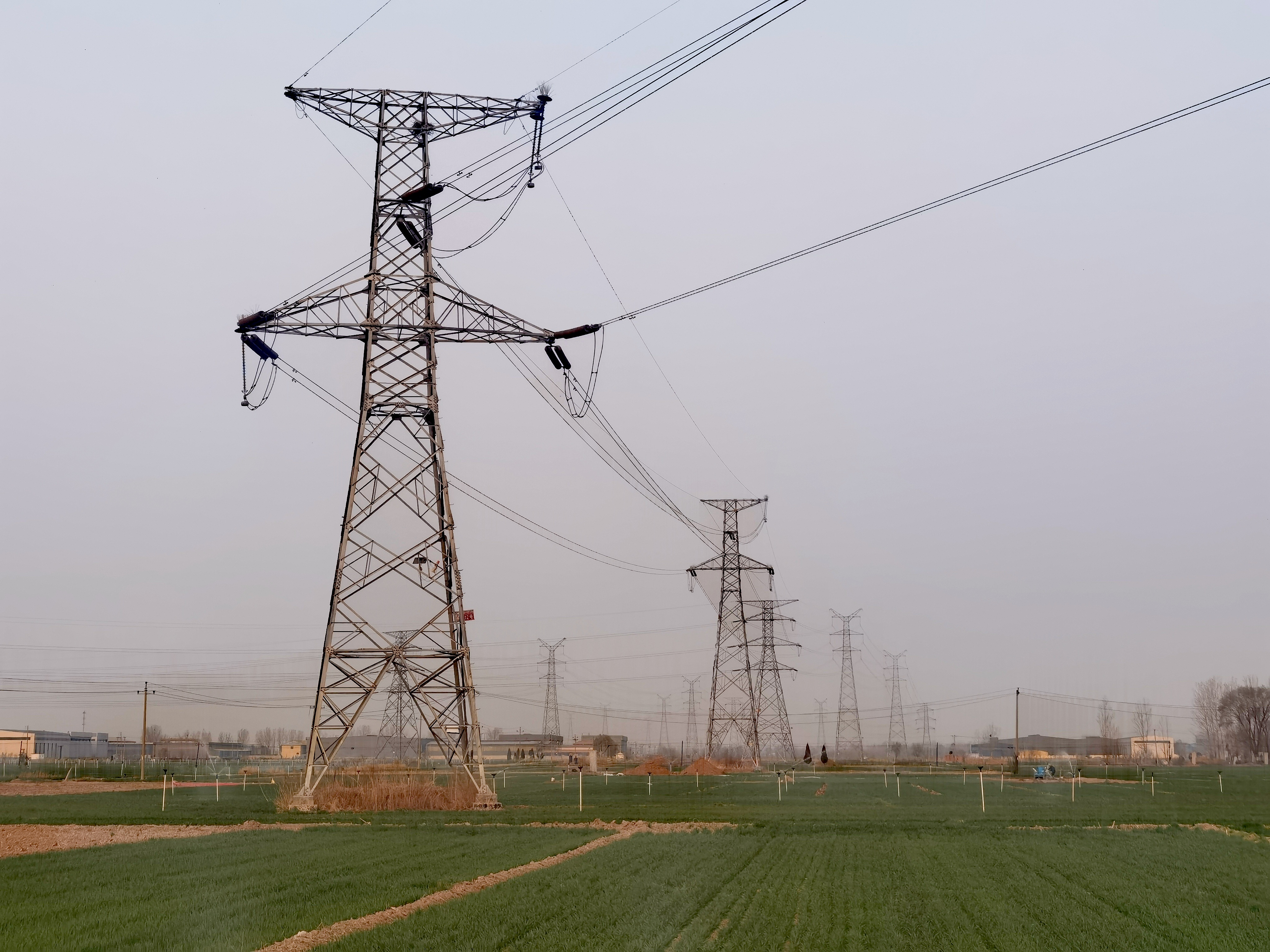 早上起来,空气格外清新,铁塔守护着 田野,与电网共绘乡村新图景~乡村的 日常,自带滤镜~
