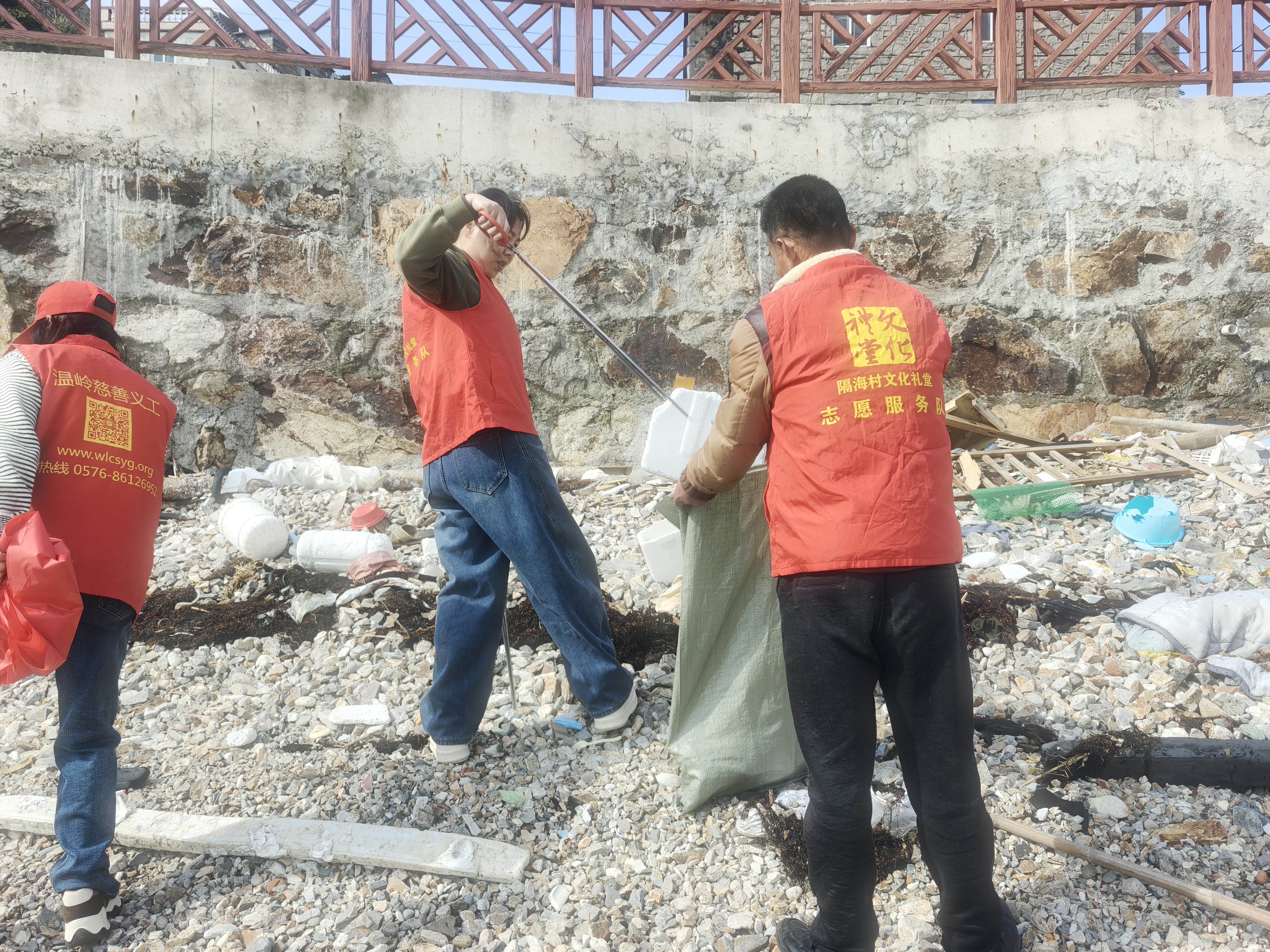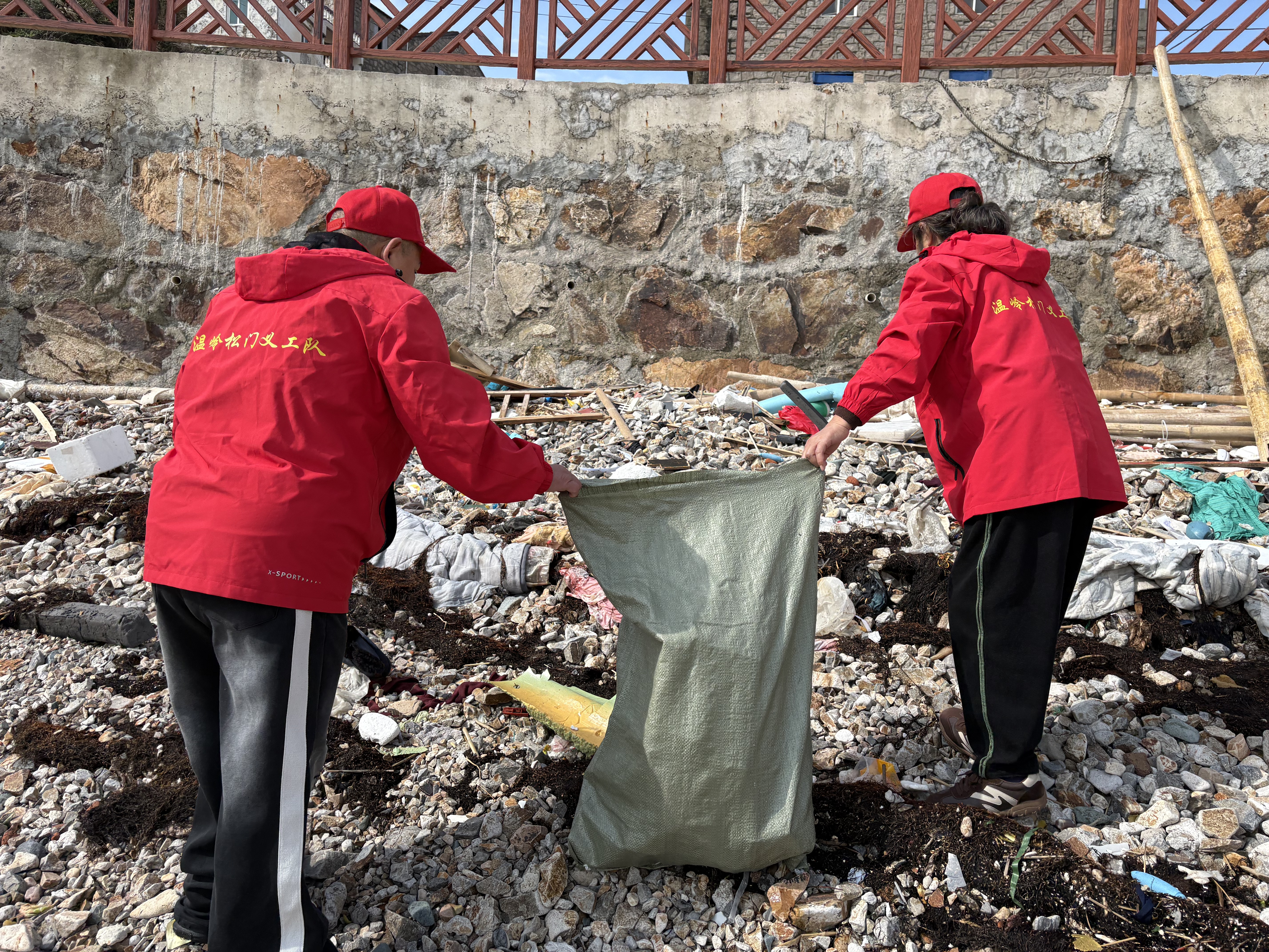 温岭‖为守护海洋生态环境,美化滨海家园,松门义工队、石塘义工队及石塘镇隔海村文化礼堂志愿者联合开展海洋环境保护行动,走进石塘镇隔海渔村石头滩。义工们身着志愿服装,认真清理海滩垃圾、规整杂物,用实际行动守护碧海银滩。同时向周边村民、游客普及海洋环保知识,倡导文明出游、拒绝污染。以责任与担当,带动更多人关爱海洋、保护环境,用爱心与汗水筑牢蓝色生态屏障,展现新时代志愿者风采。