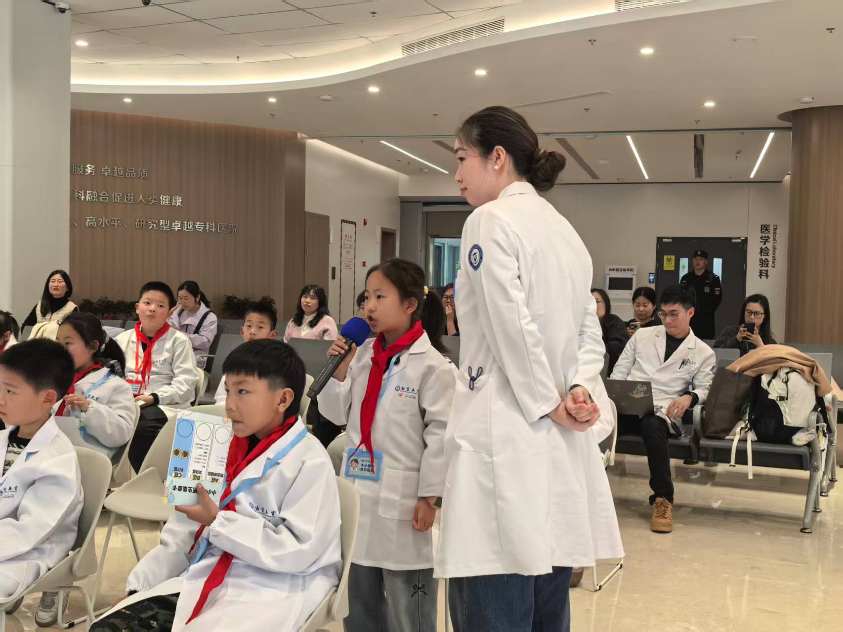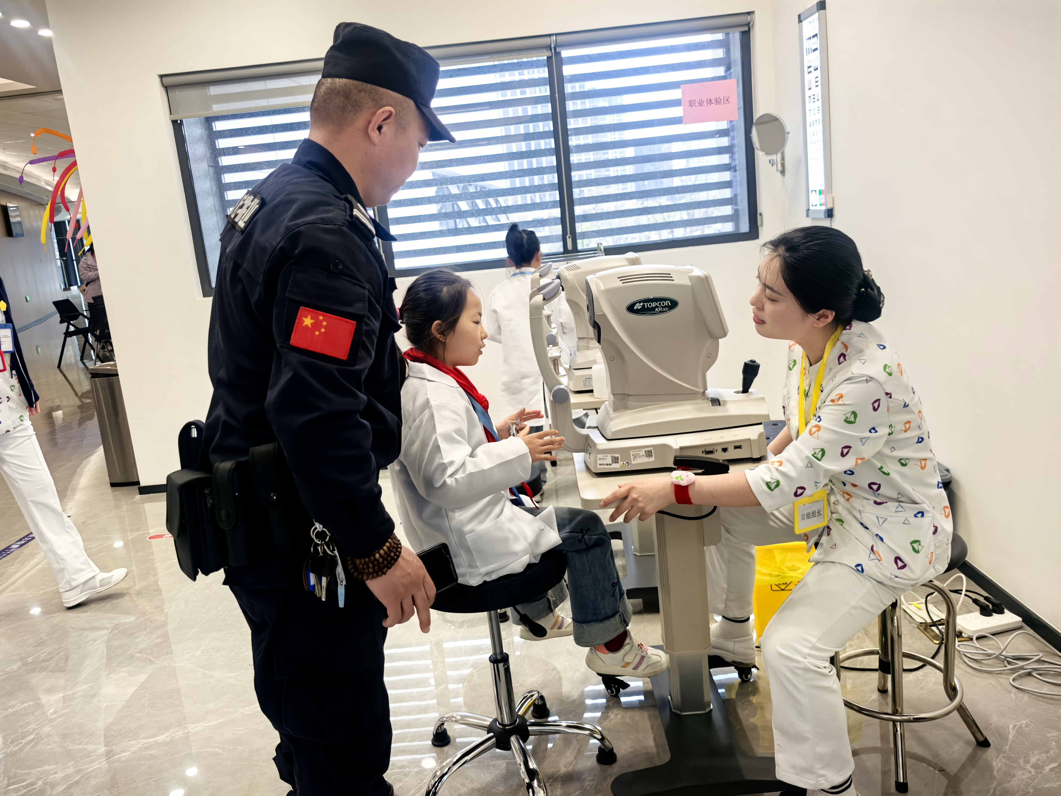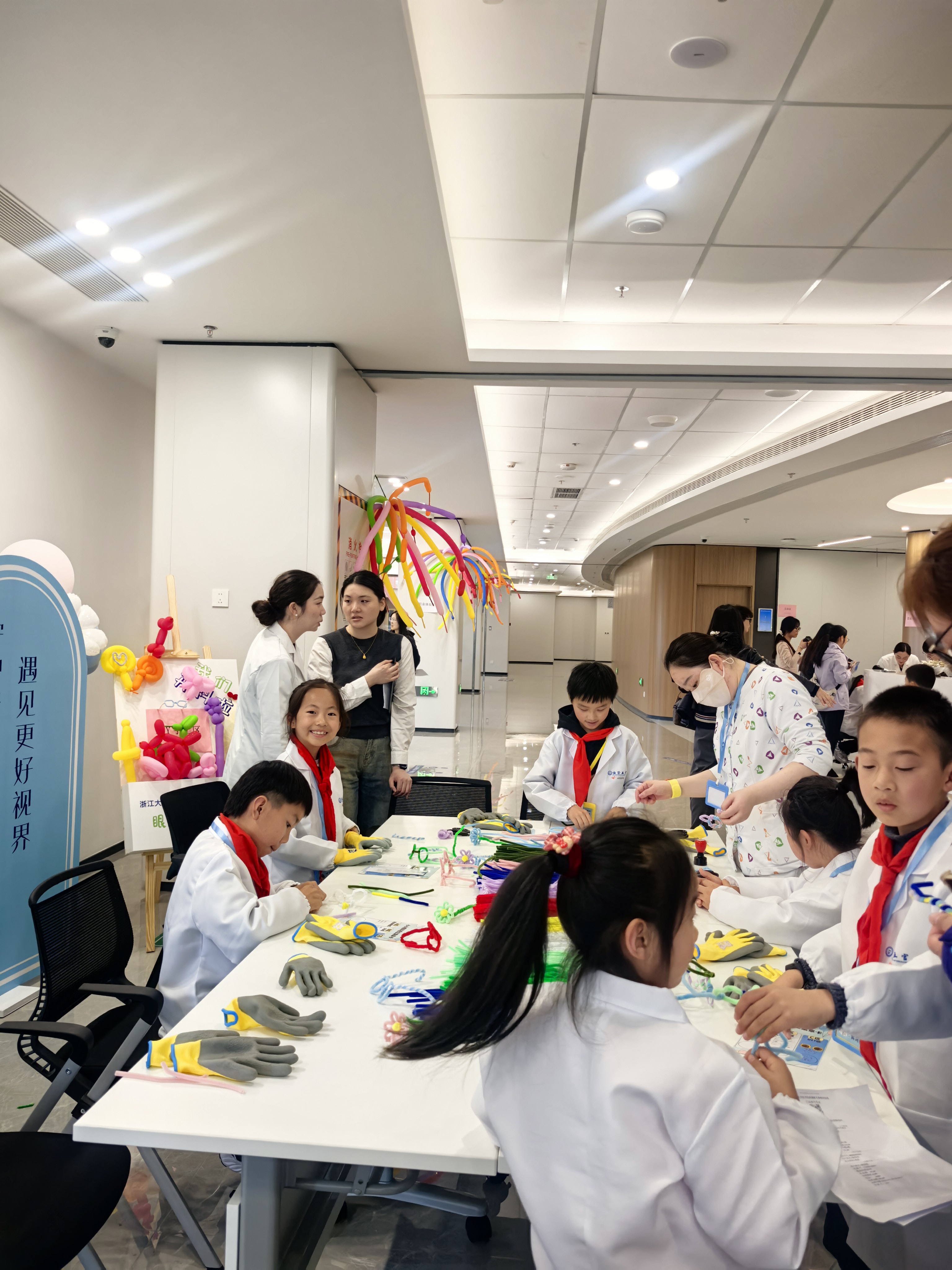 今天我穿上白大褂,变成了一名超酷的“小小眼科医生”! 在浙江大学医学院附属眼耳鼻喉科医院里,医生老师用有趣的动画给我们讲眼睛的秘密,我知道了角膜、视网膜这些“小零件”是怎么帮我们看世界的,还学到了干眼症会让眼睛又干又痒,原来长时间玩手机真的会伤害眼睛! 我还亲手给小伙伴测了视力,指着视力表上的“E”字,像模像样地当起了“小医生”。手工课上,我用彩色扭扭棒做了一副独一无二的眼镜,戴在脸上特别神气! 最后,我拿到了“小小眼科医生”的荣誉证书,心里美滋滋的。这次体验让我明白,眼睛是我们的“小窗户”,以后我要好好爱护它,还要提醒爸爸妈妈和同学一起科学护眼! 杭州公益小天使:查思妍