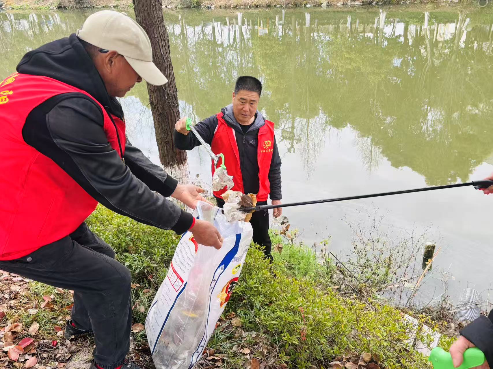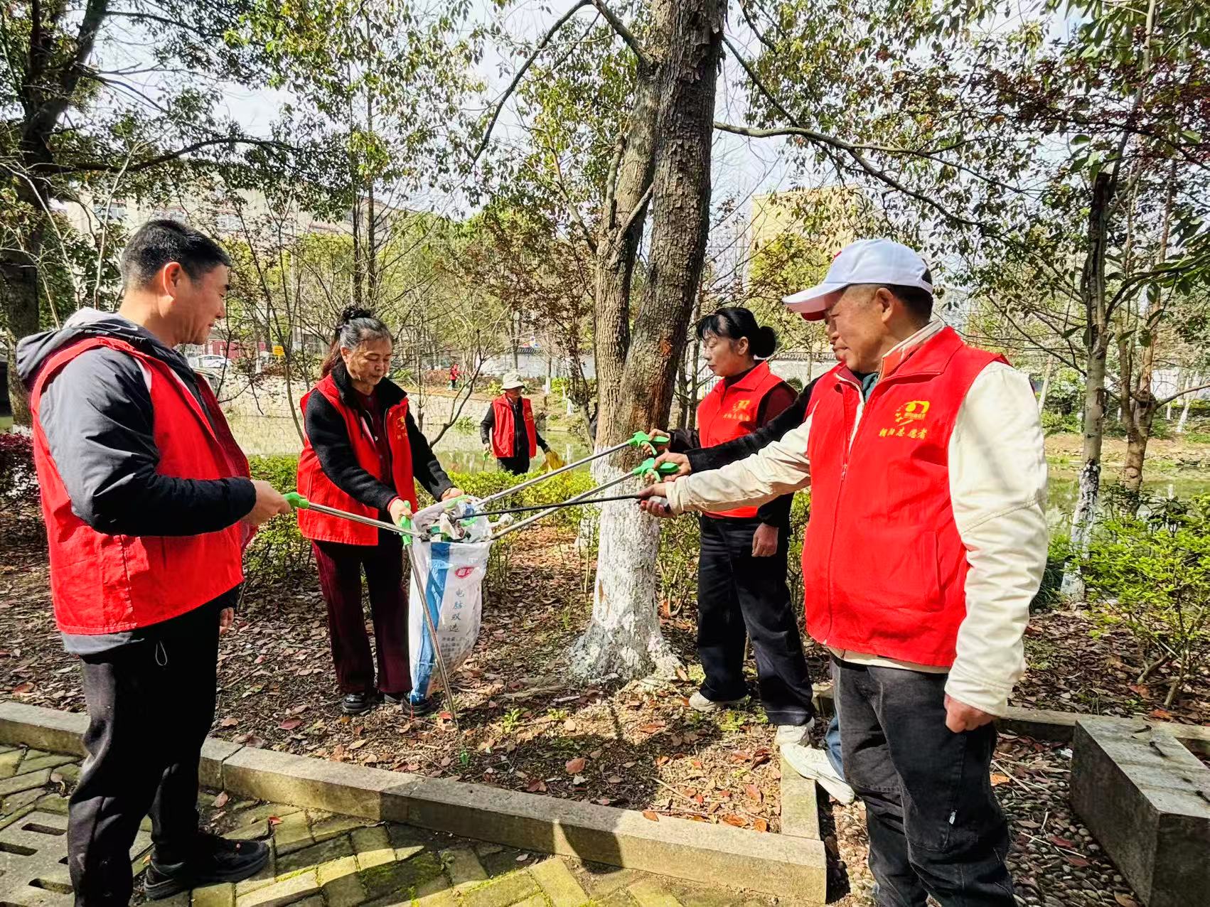 3月28日上午,20多位温岭市朝阳志愿者来到箬横镇灌溉千亩良田、南北通行的主河道---木城河河道两边捡拾各种垃圾、巡查水质,以实际行动守护碧水清波。 20多把夹键伸向绿化带、绿道路上、木城河岸边,把那些无家可归的破碎薄膜、各种饮料瓶、食品包装纸,还有那些随手丢弃卡在石缝里的烟头,我们把它们一一捡起装进袋子里,送到它们该去的地方,让它们变废为宝,造福人类。